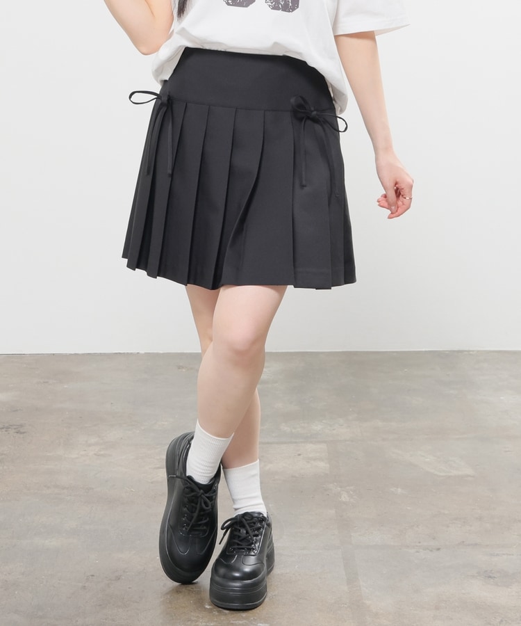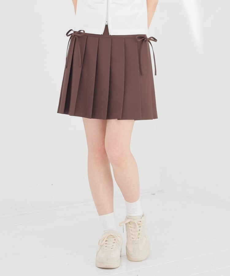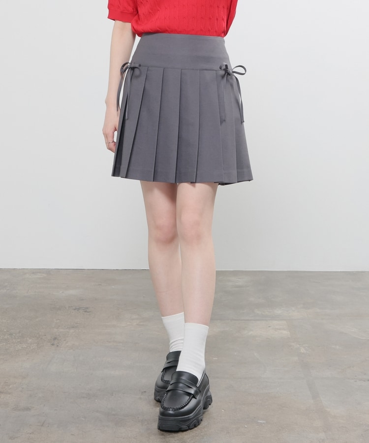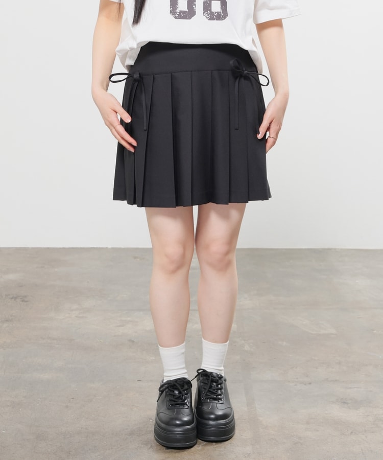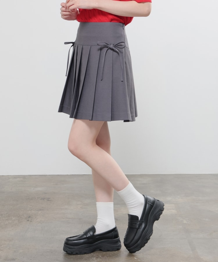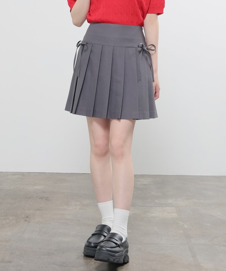 定番ミニプリーツのフロント両サイドにリボンを付けたフェミニンなデザイン。