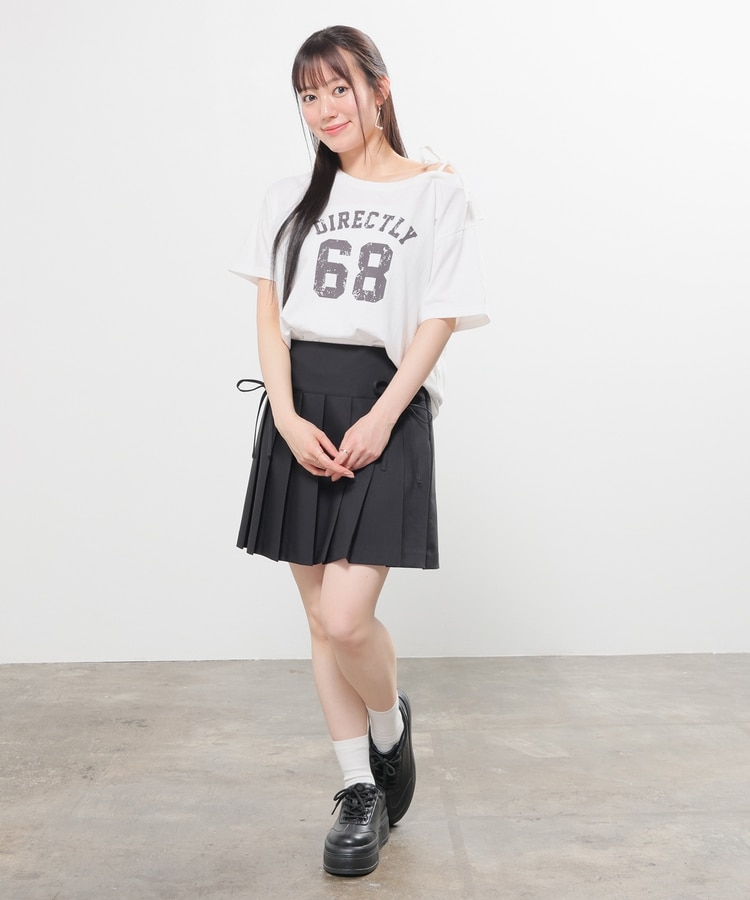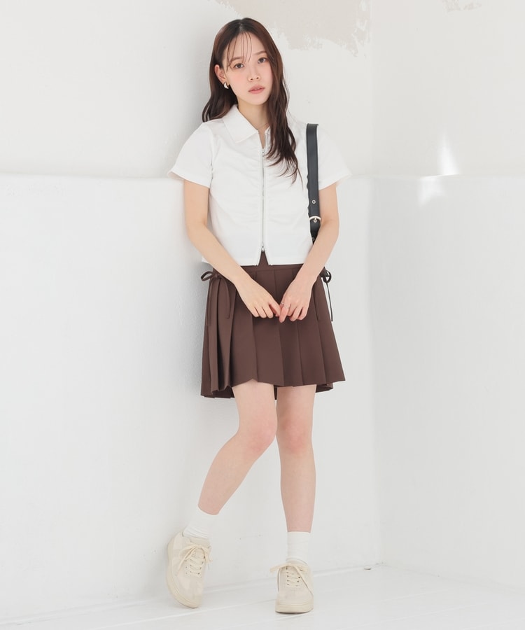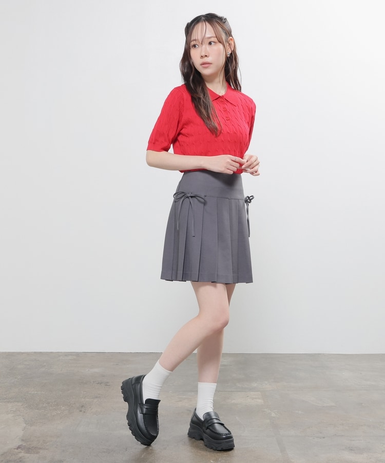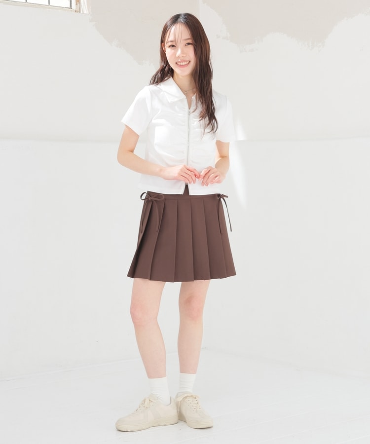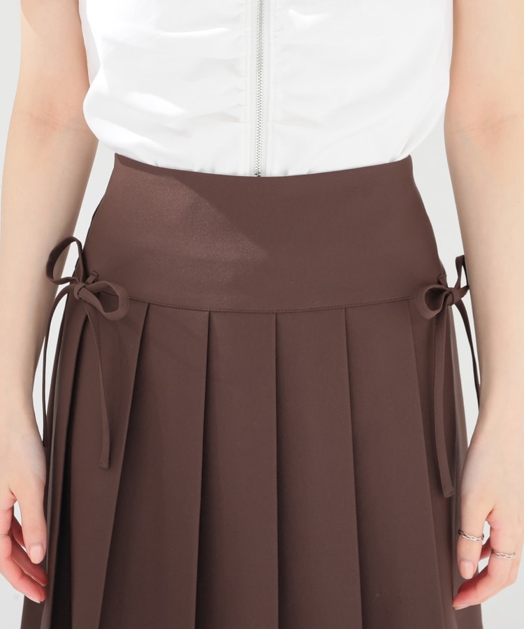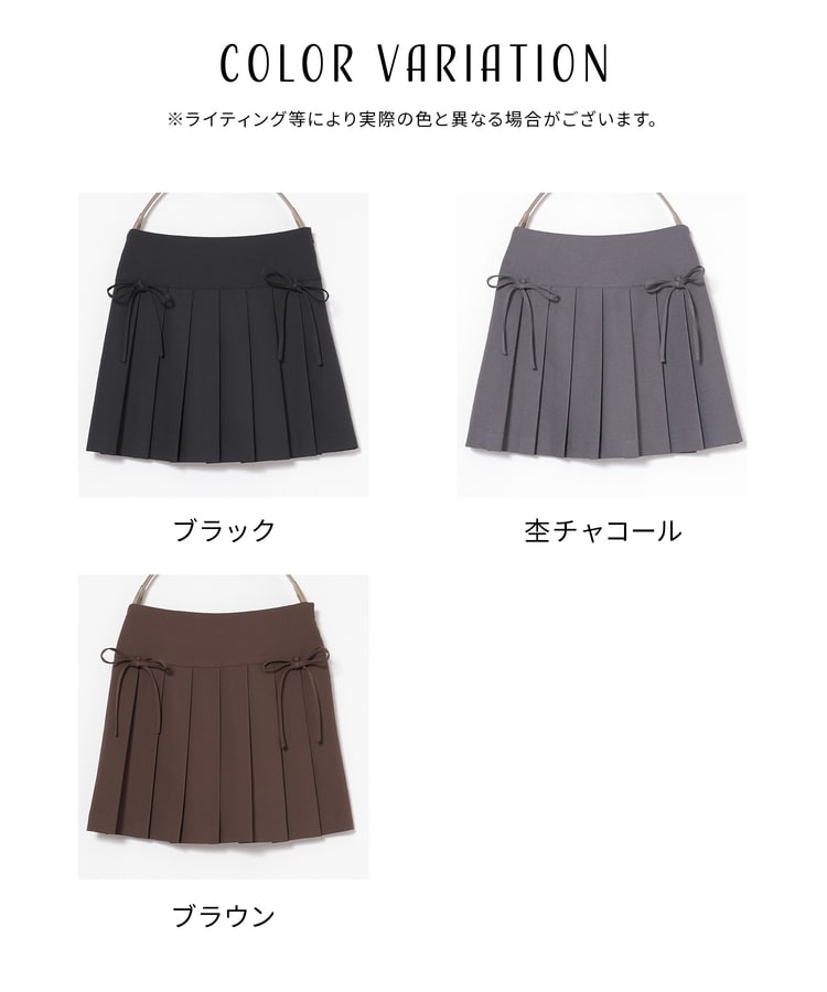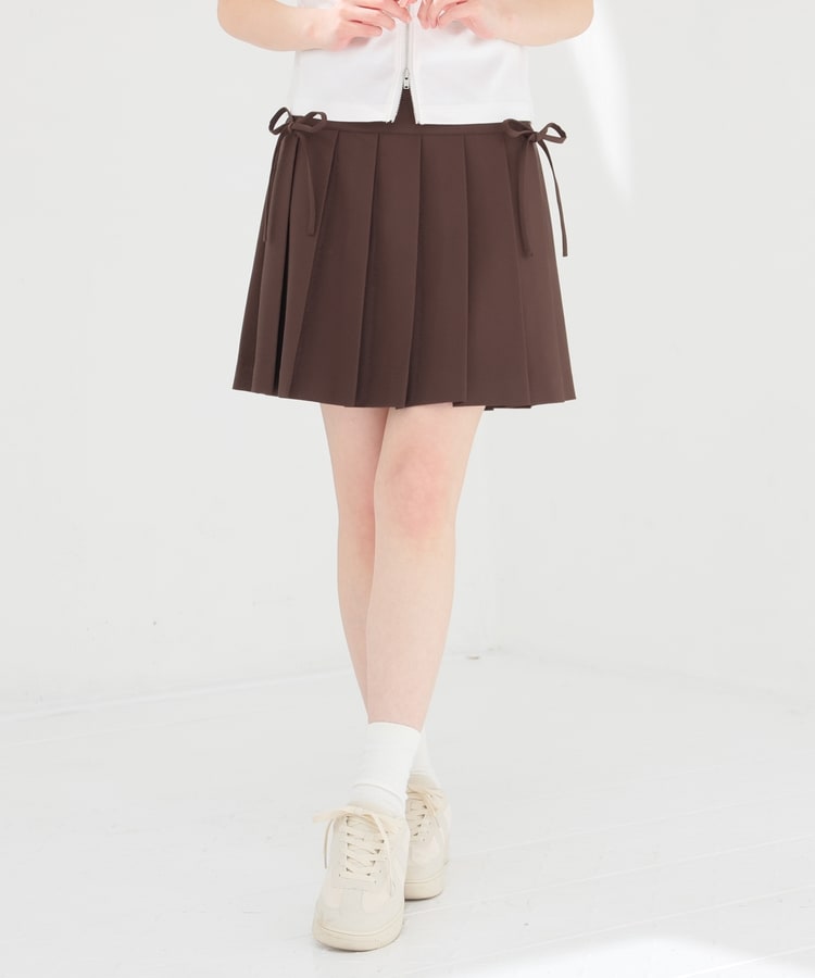 定番ミニプリーツのフロント両サイドにリボンを付けたフェミニンなデザイン。