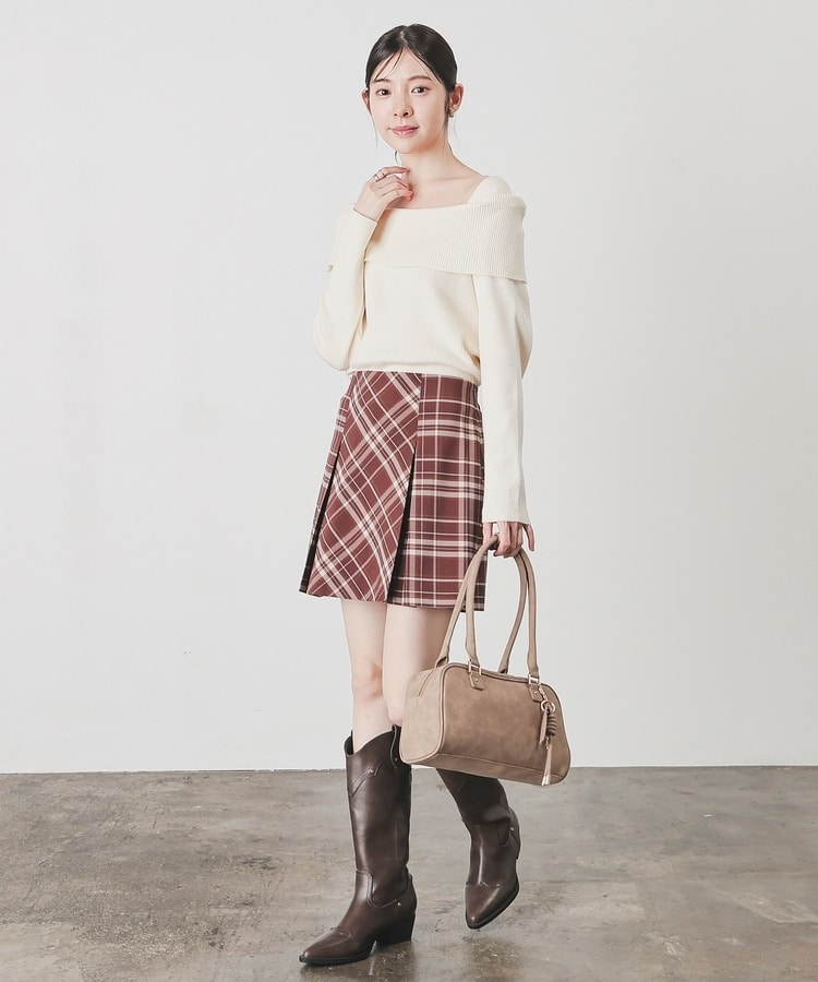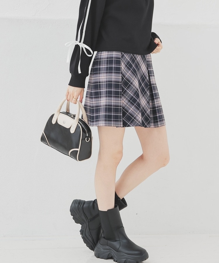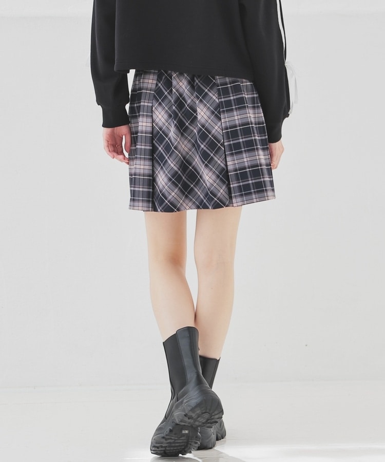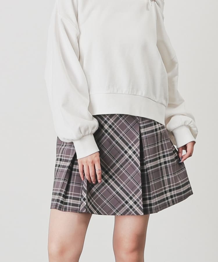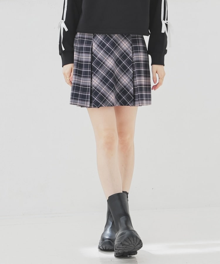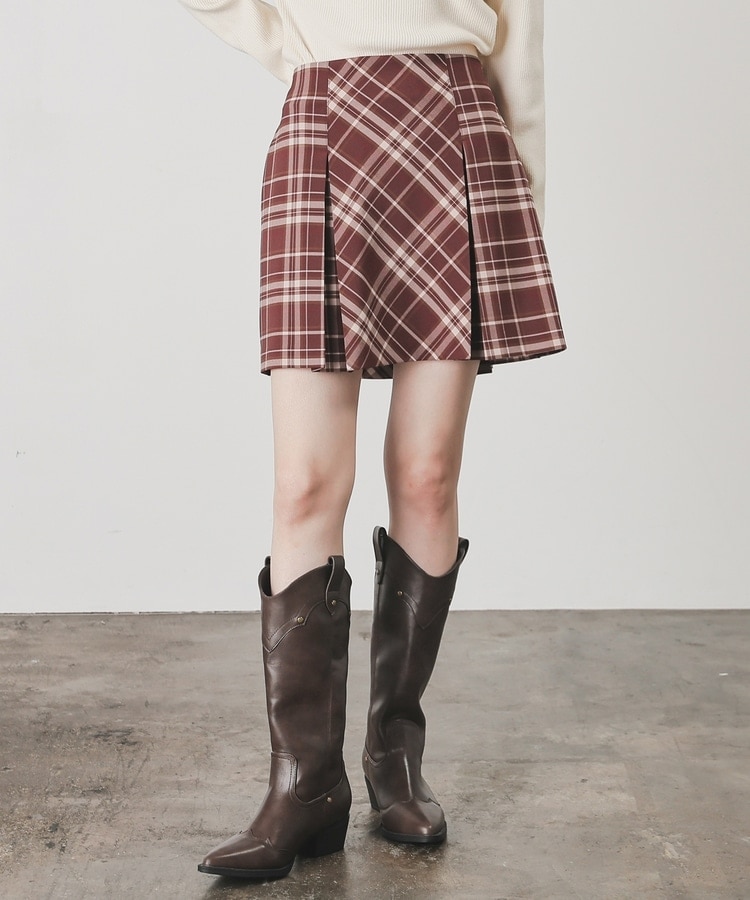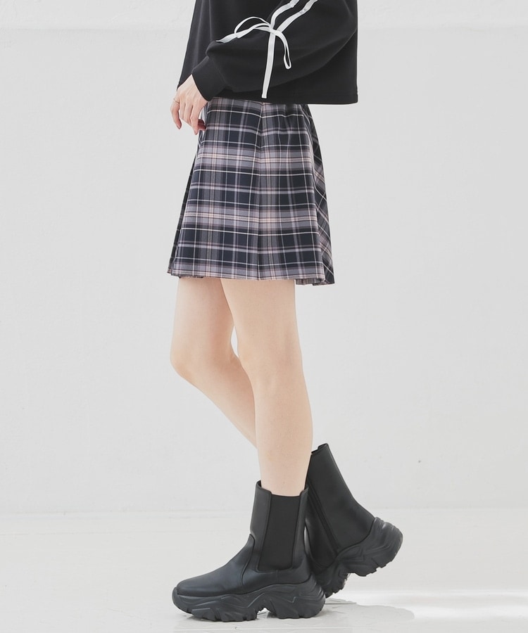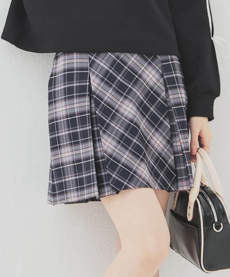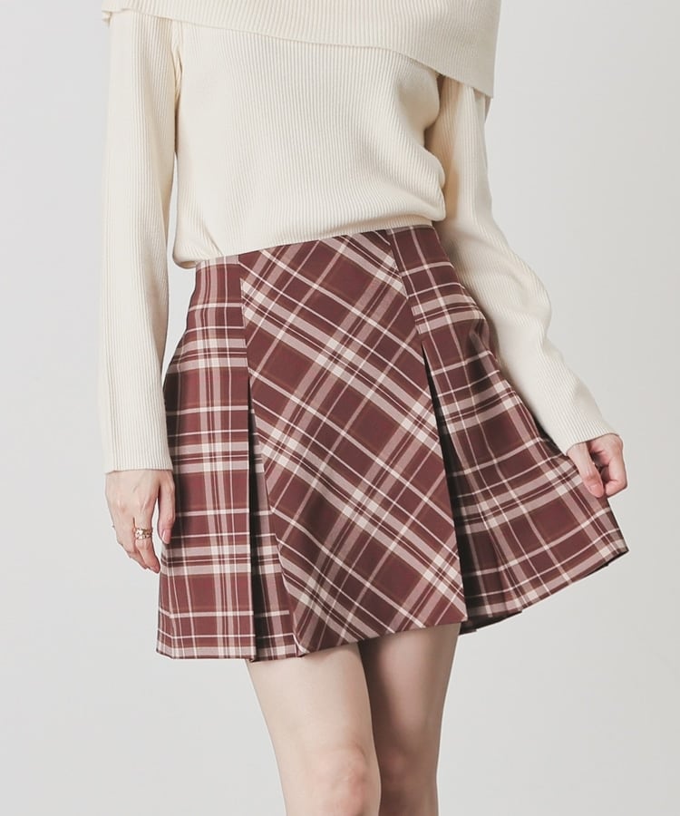 太めのボックスプリーツで広がりすぎずすっきり見え、美脚効果も期待できるデザイン。