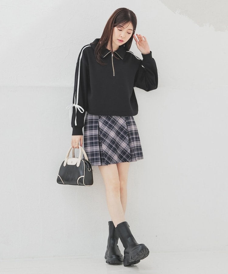 コンパクトなトップスと合わせた韓国ガーリースタイルから、スウェット合わせのカジュアルコーデまで、幅広く活躍。