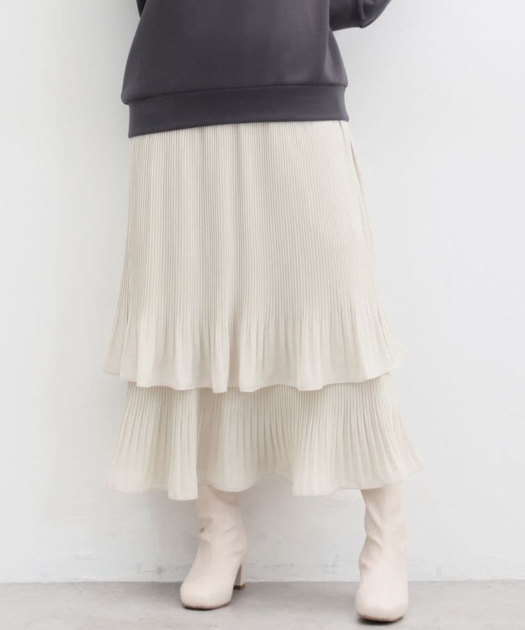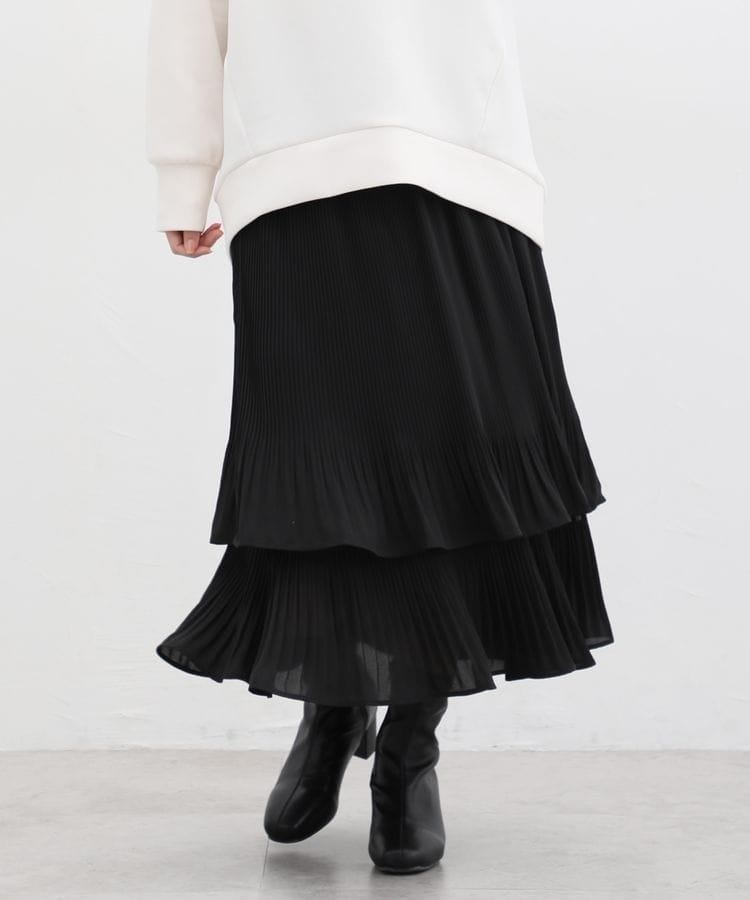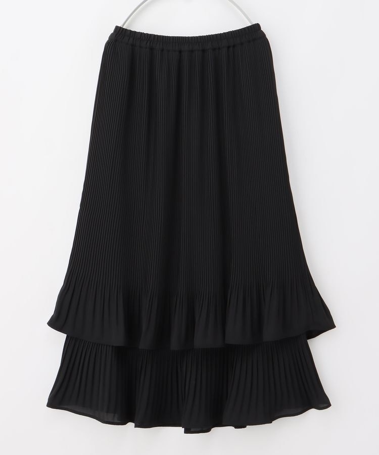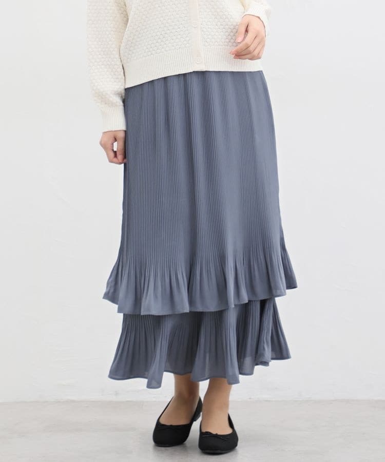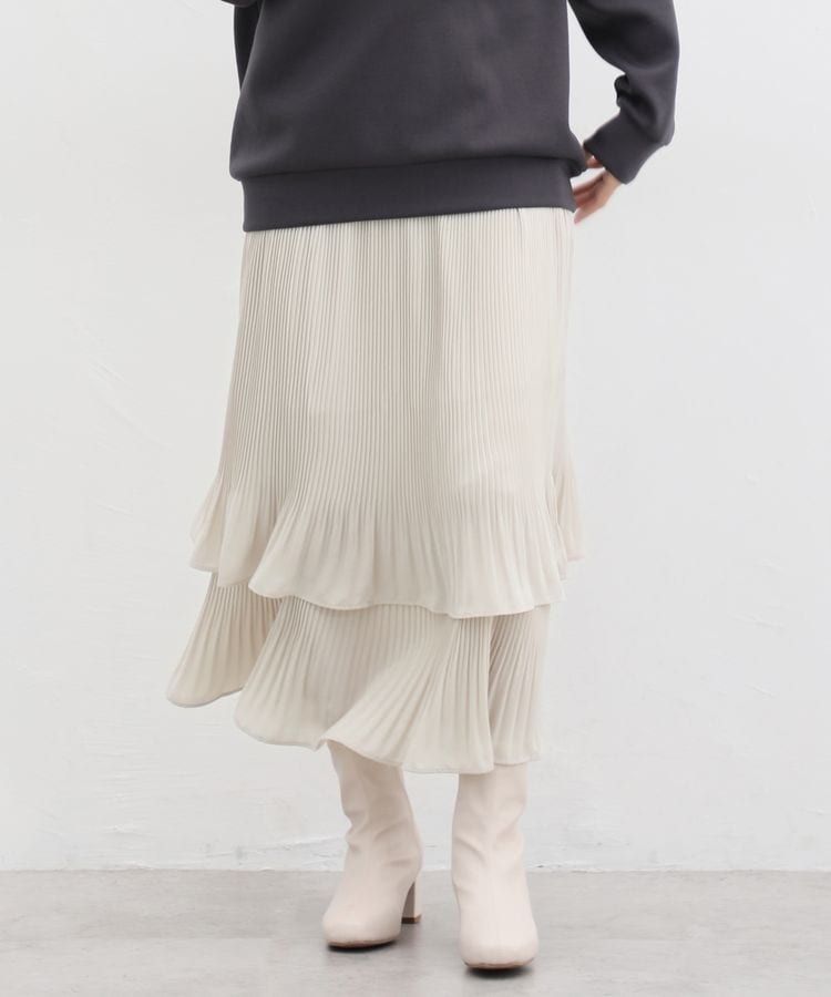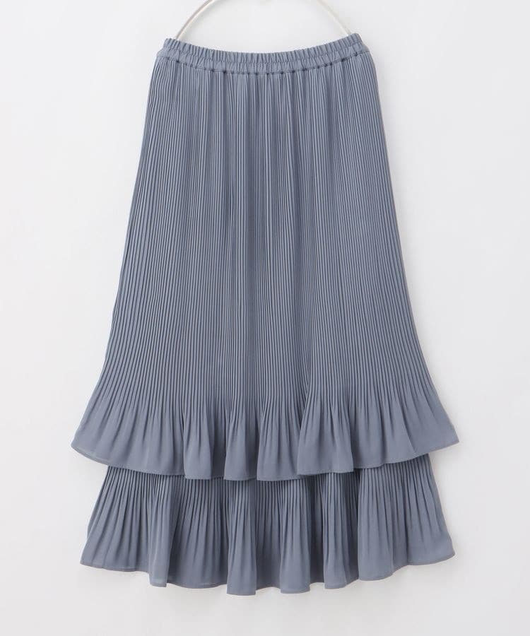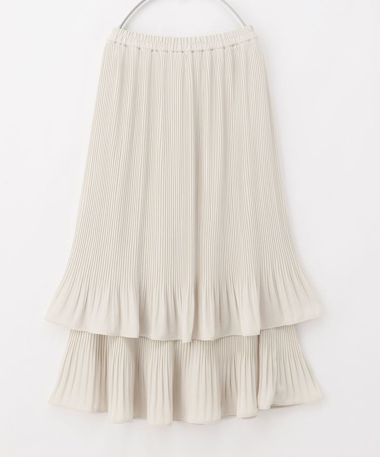 動くたびにふんわり揺れる細プリーツを二段重ねたフェミニンなデザイン。