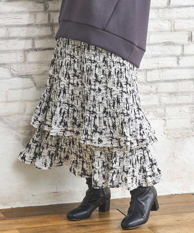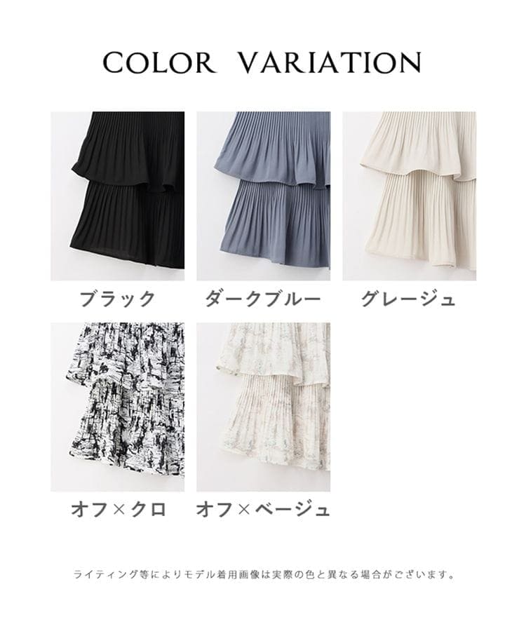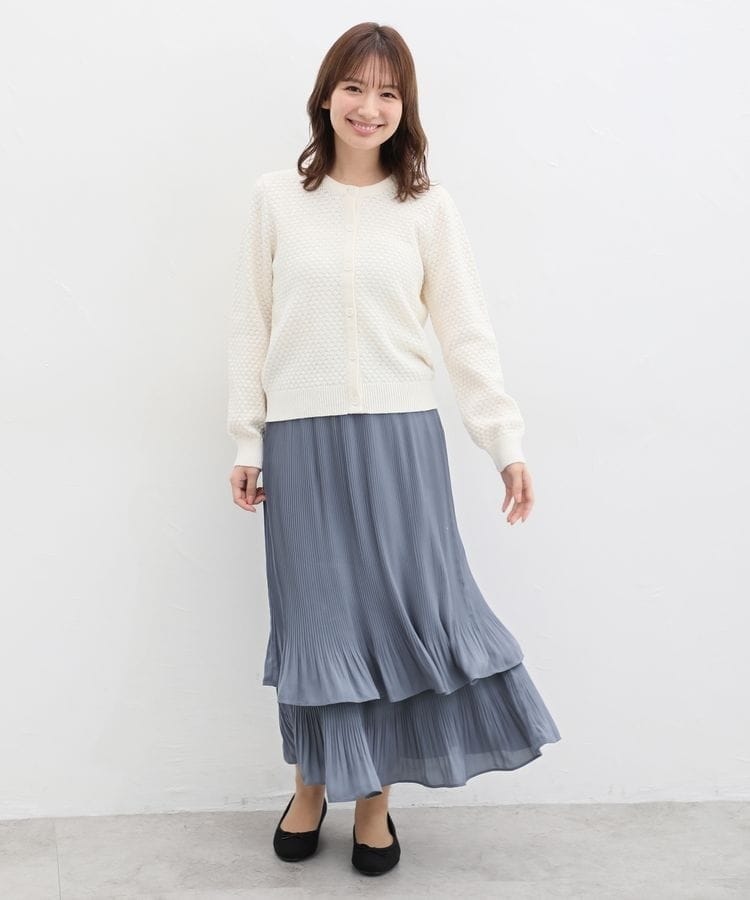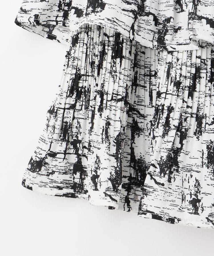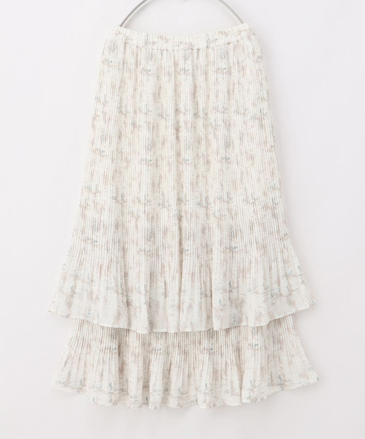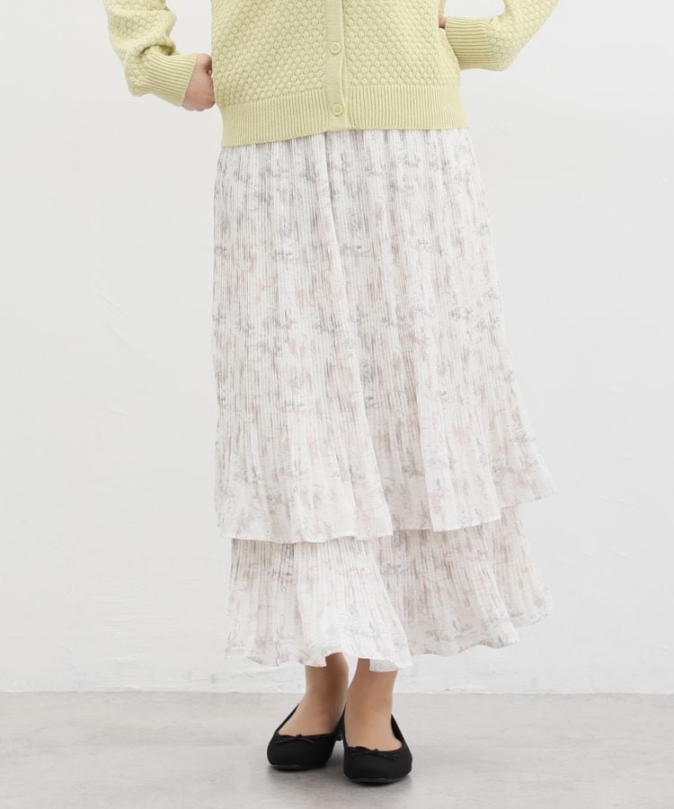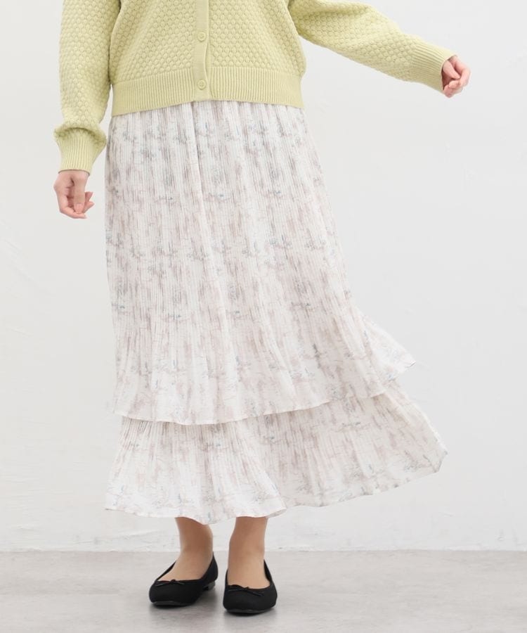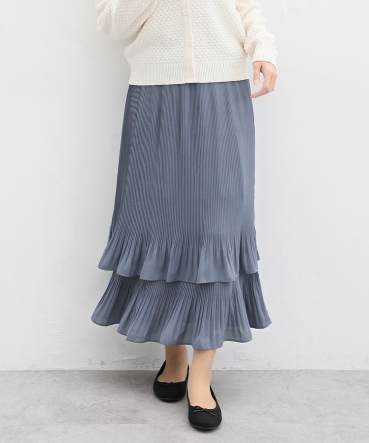 動くたびにふんわり揺れる細プリーツを二段重ねたフェミニンなデザイン。