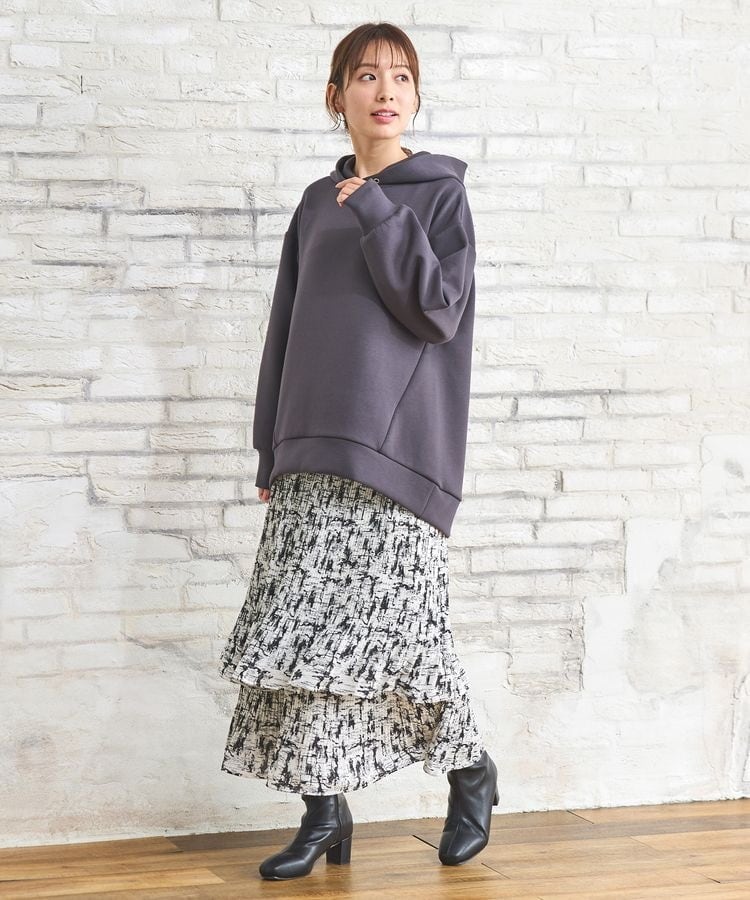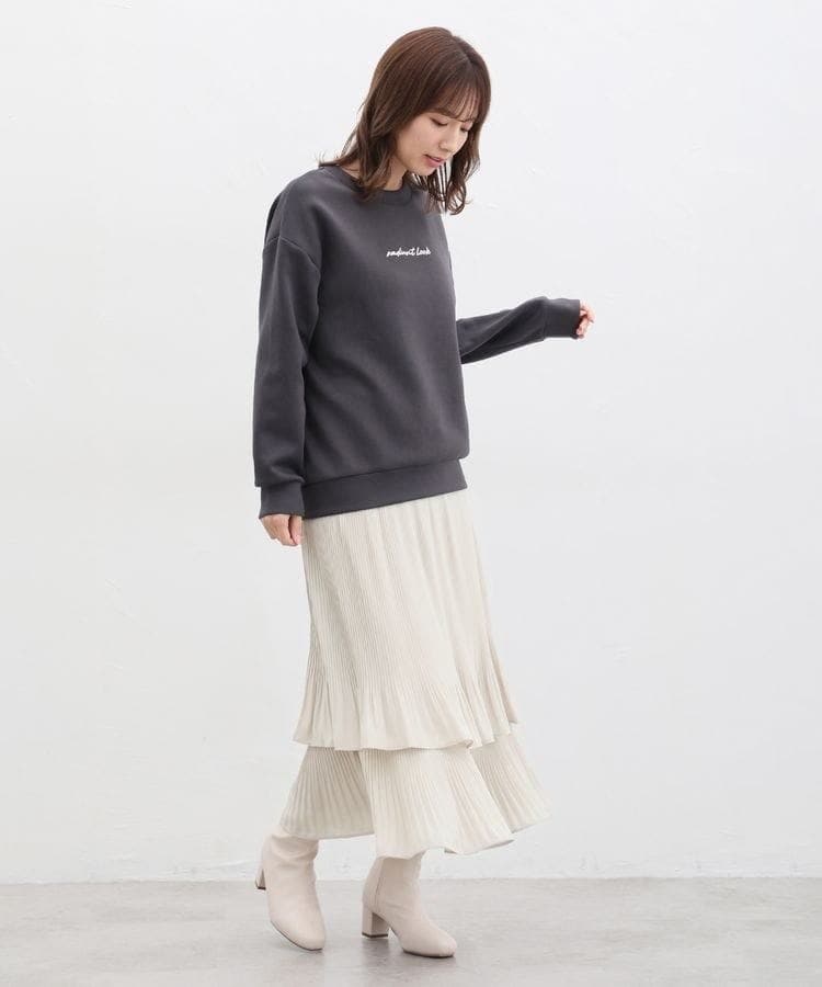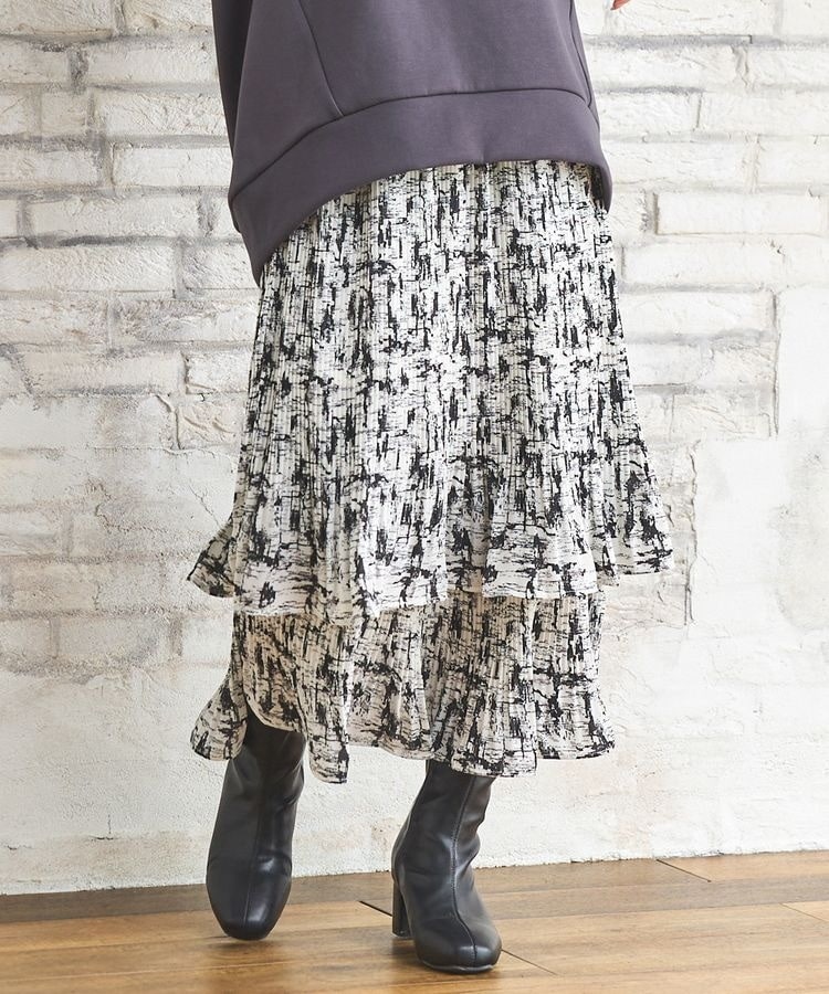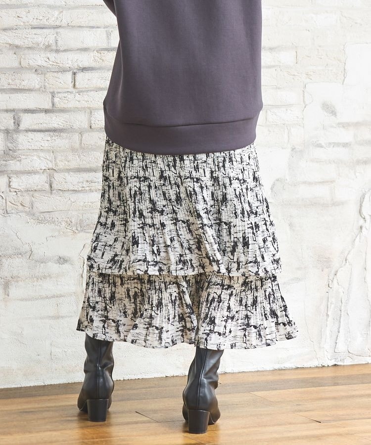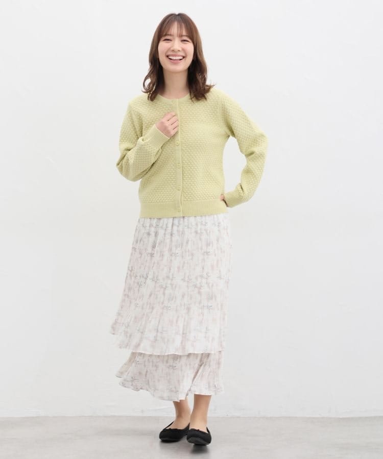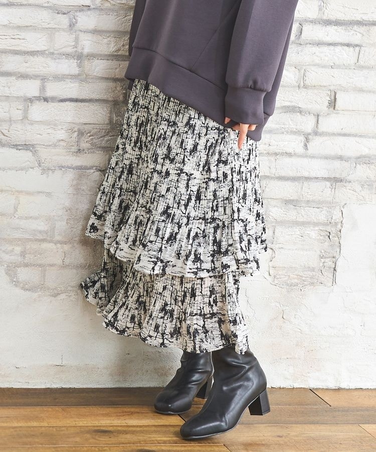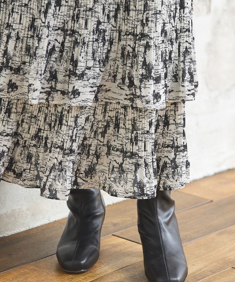 動くたびにふんわり揺れる細プリーツを二段重ねたフェミニンなデザイン。