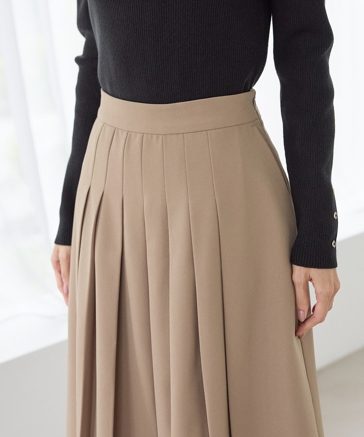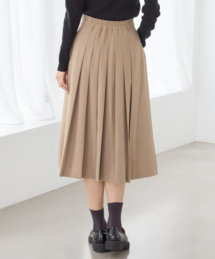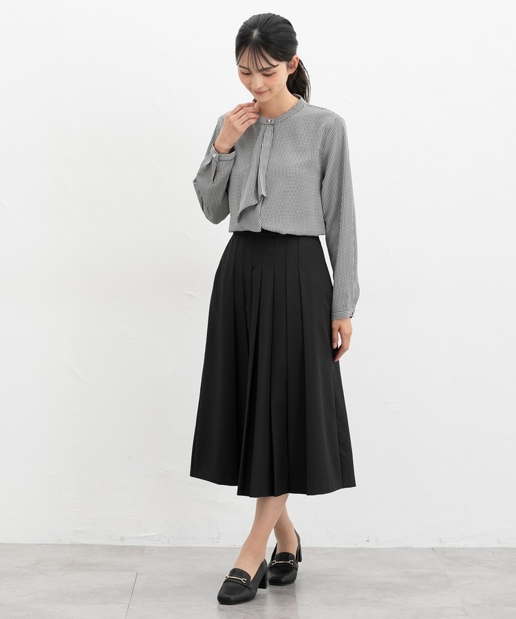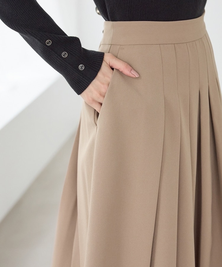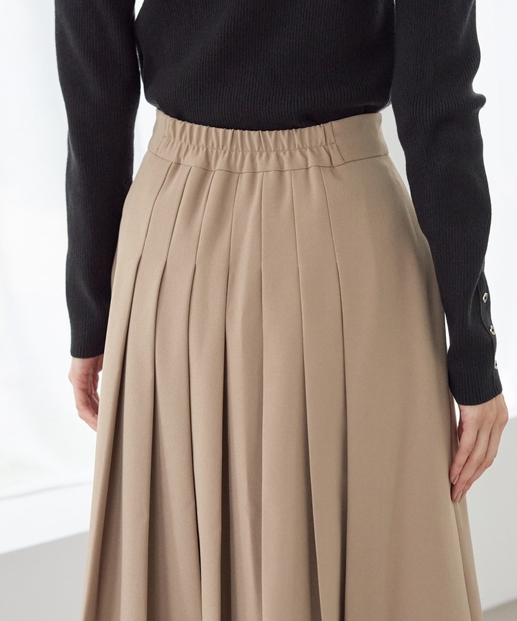 腰周りのプリーツを中縫いした、スッキリ見えが叶うデザイン。