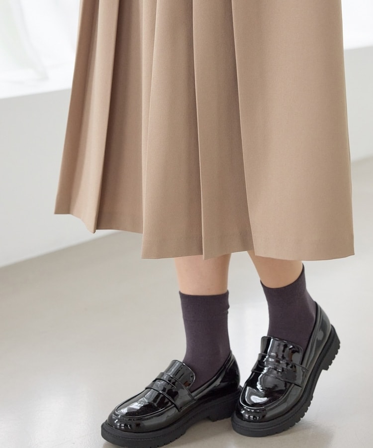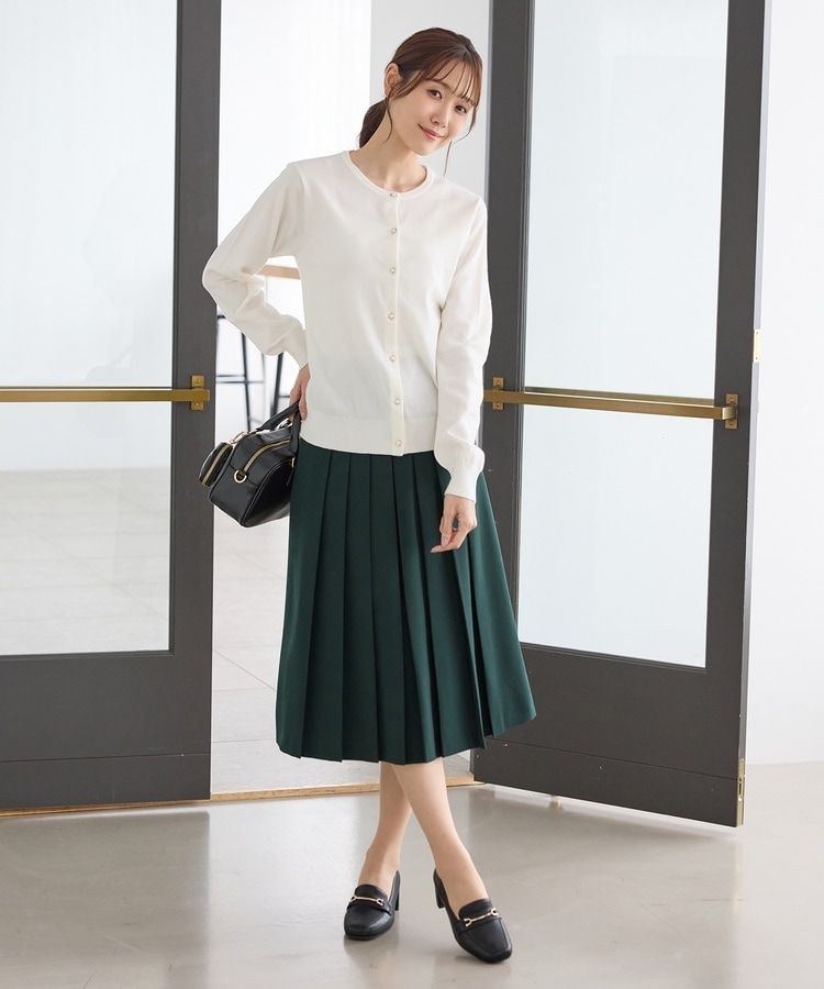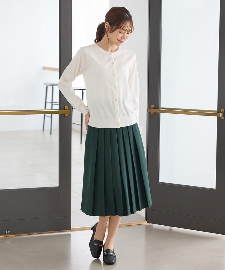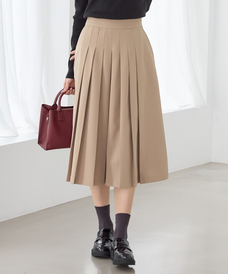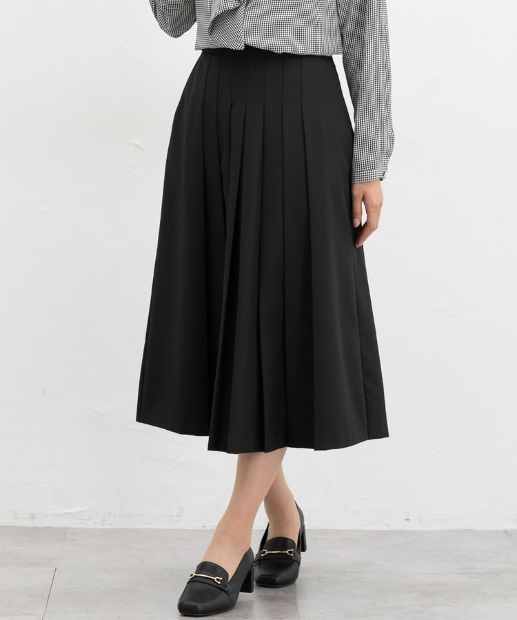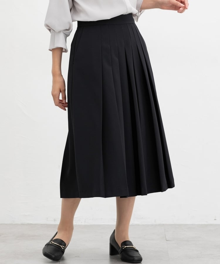 腰周りのプリーツを中縫いした、スッキリ見えが叶うデザイン。
