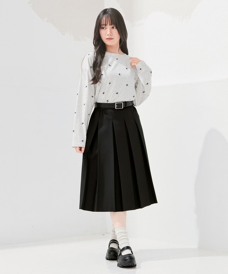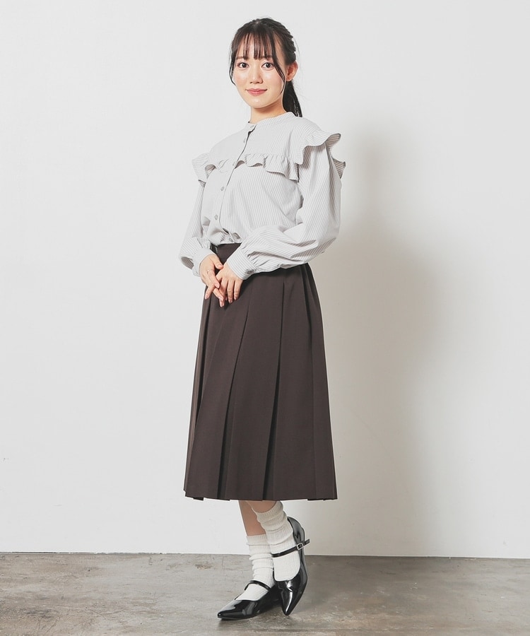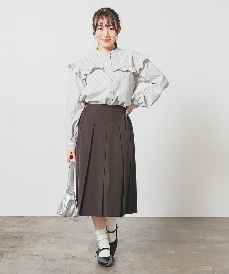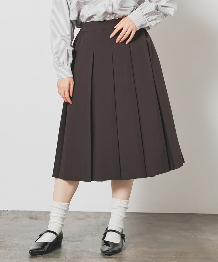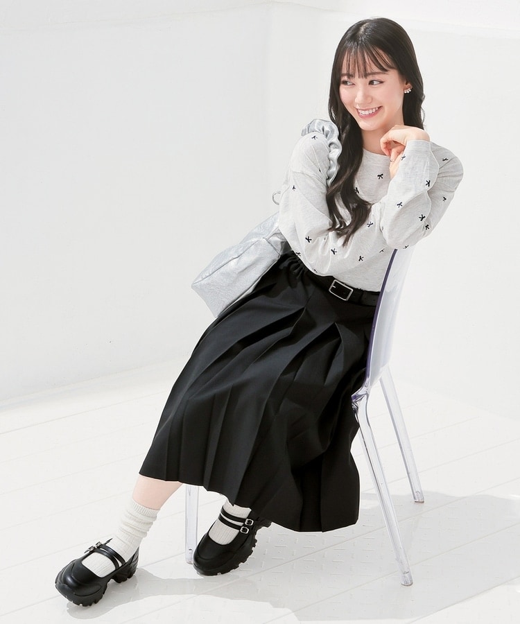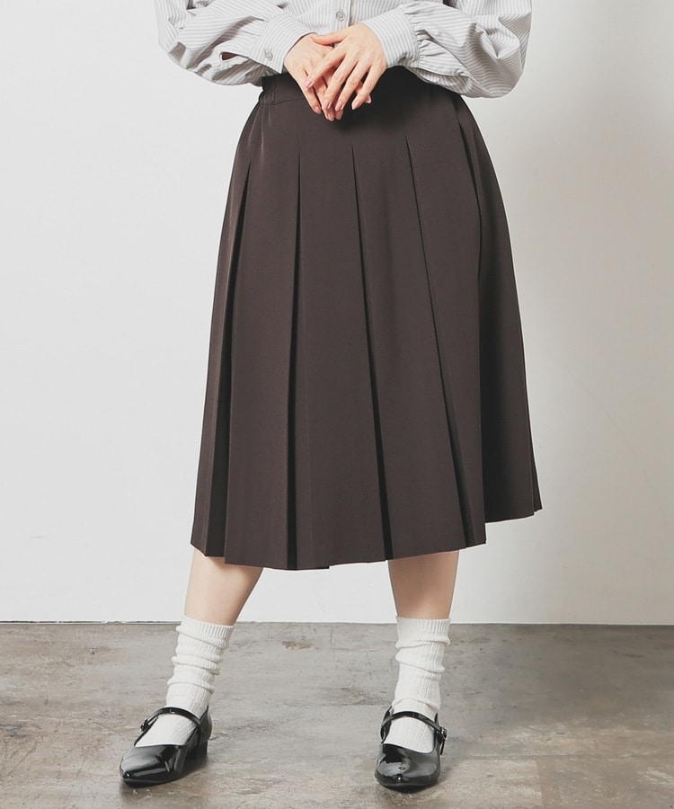 シンプルでベーシックなワンカラーながら、動くたびに揺れるプリーツがフェミニンなデザイン。