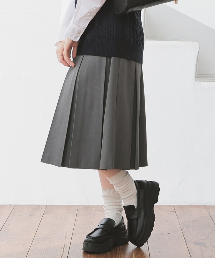 低身長の方もはきやすい、ひざ下のミディアム丈。