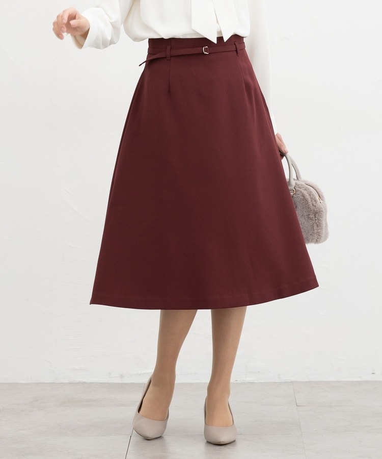 コーディネートのアクセントにもなる、ゴールドバックルの共布ベルト付き。