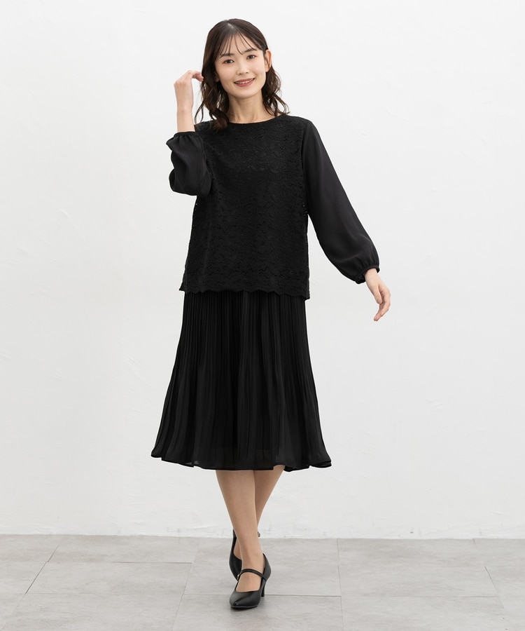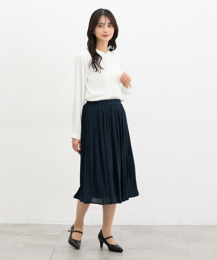 裾に向かって自然に消える繊細なプリーツが上品なデザイン。