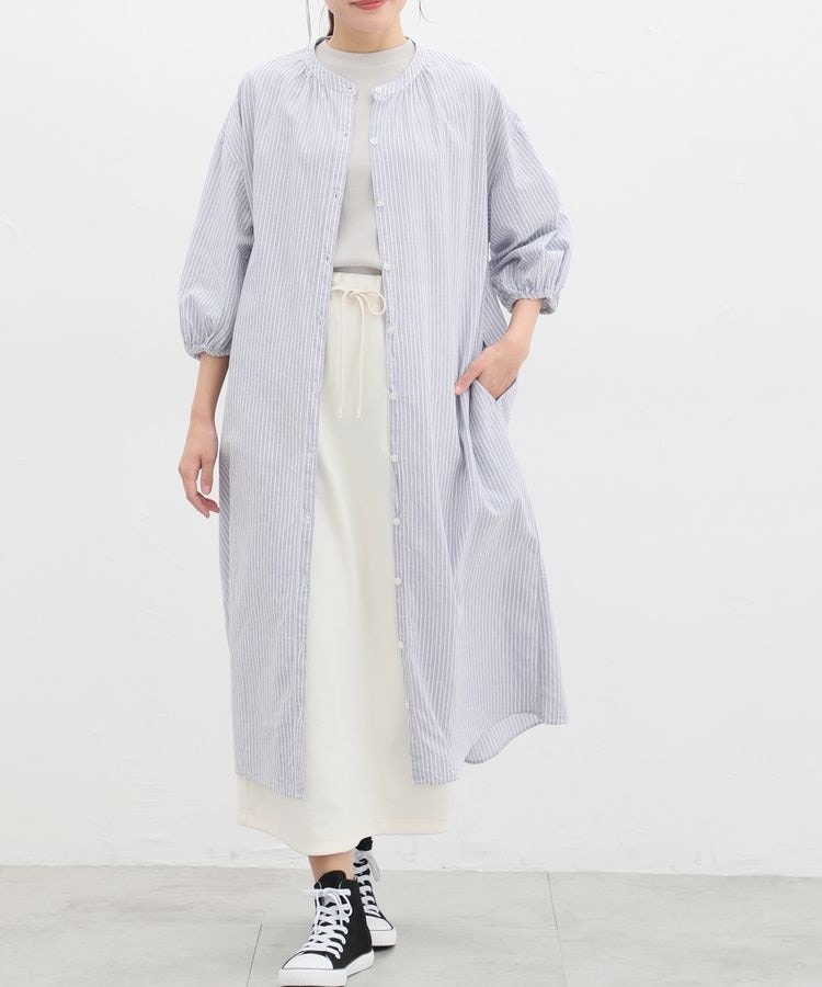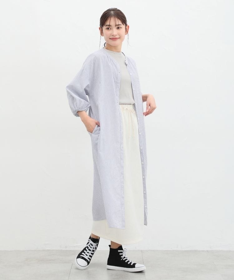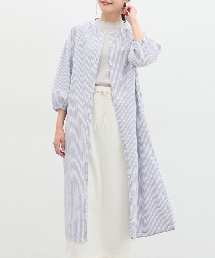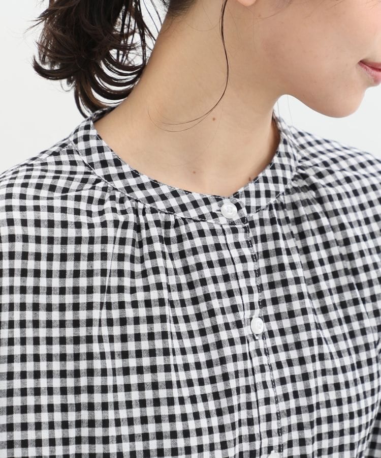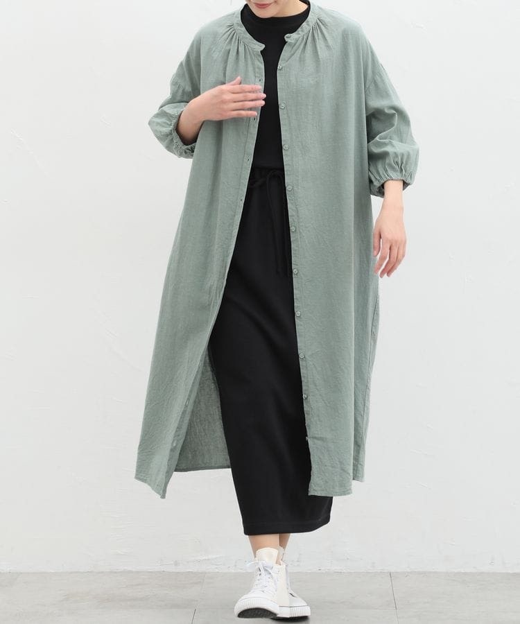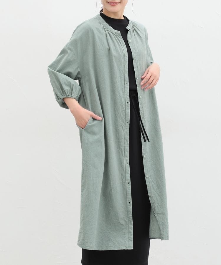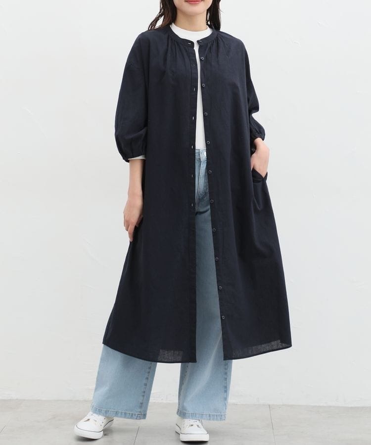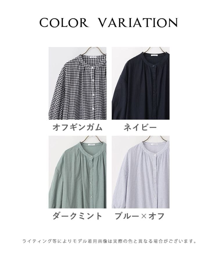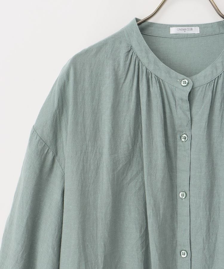 優しげなマオカラー×ふんわり袖のフェミニンデザインながら、ナチュラルな風合いでラフな雰囲気を演出。