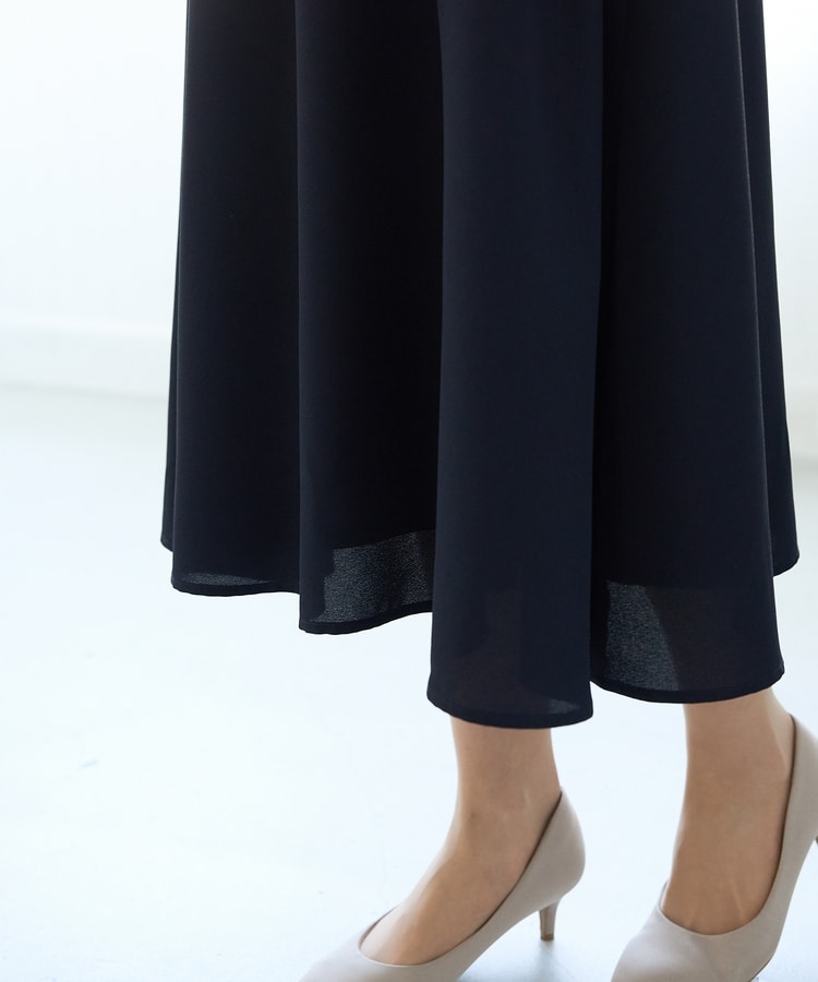 衿元にさりげない華やかさをプラスするラインストーン付きホックで、着脱しやすいのも嬉しいポイント。