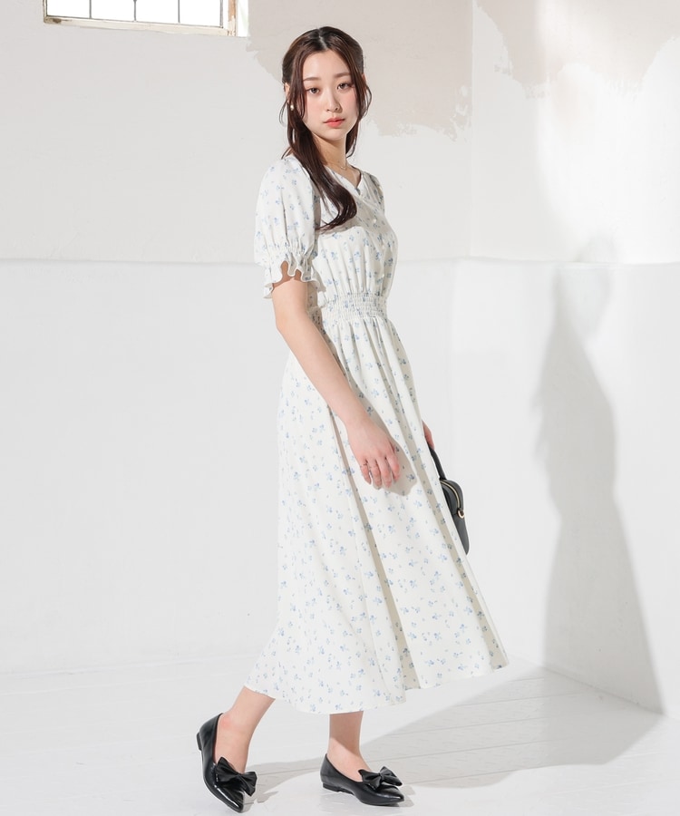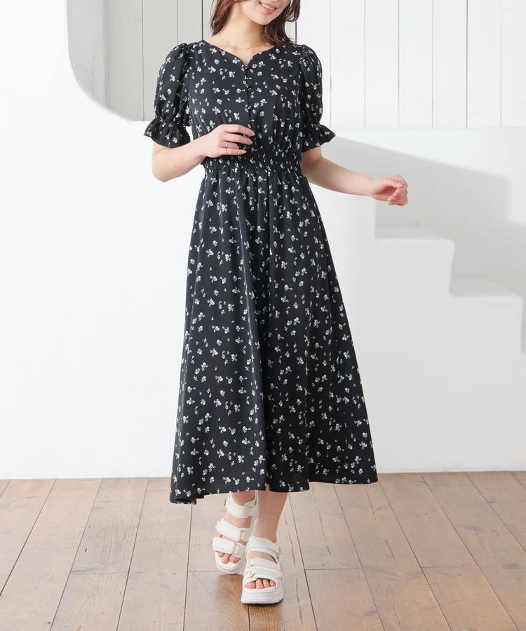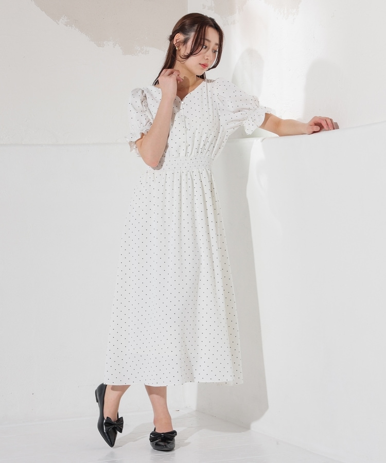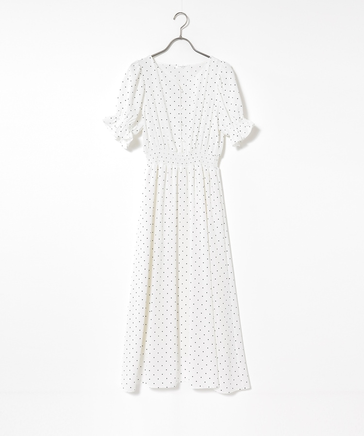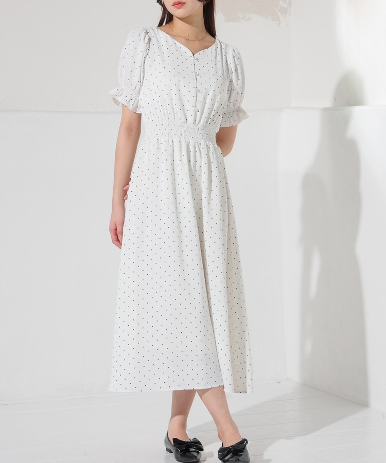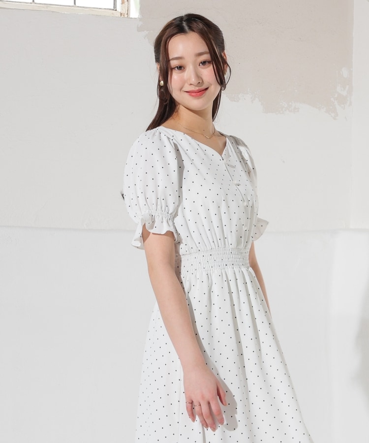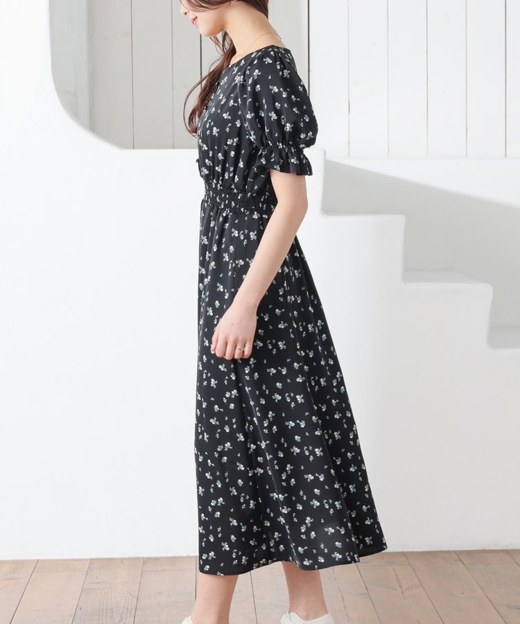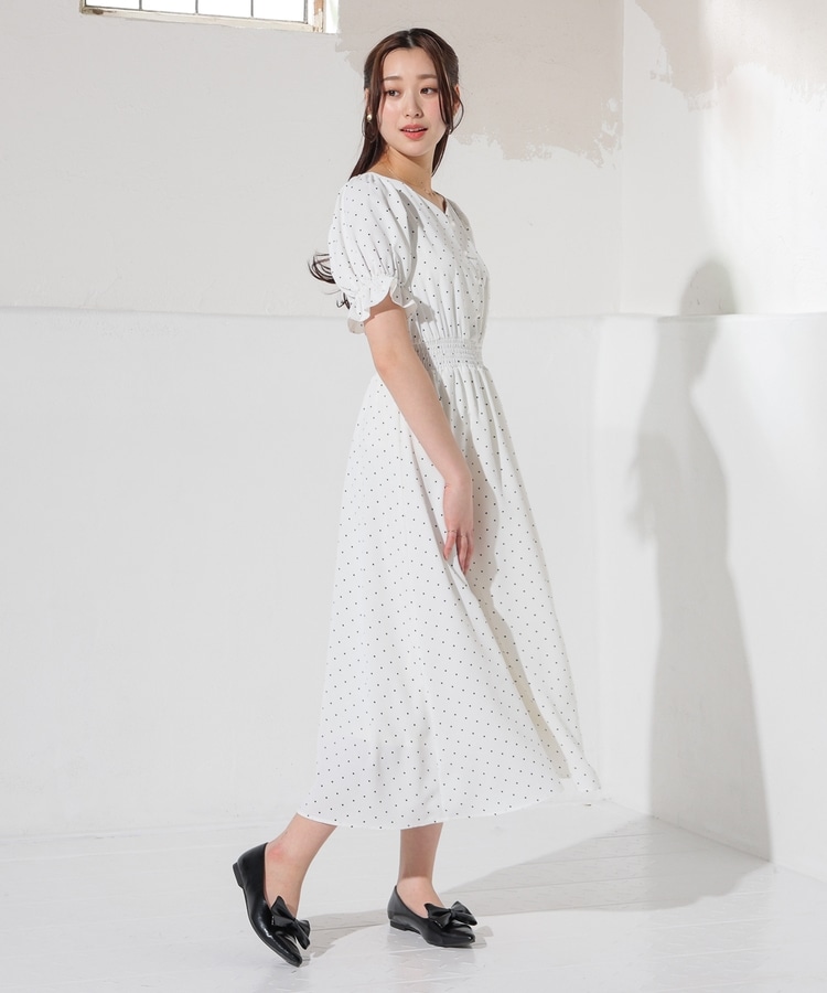 ふんわり広がるフレアラインにウエストのゴムシャーリングで、スタイルアップも叶うメリハリシルエット。