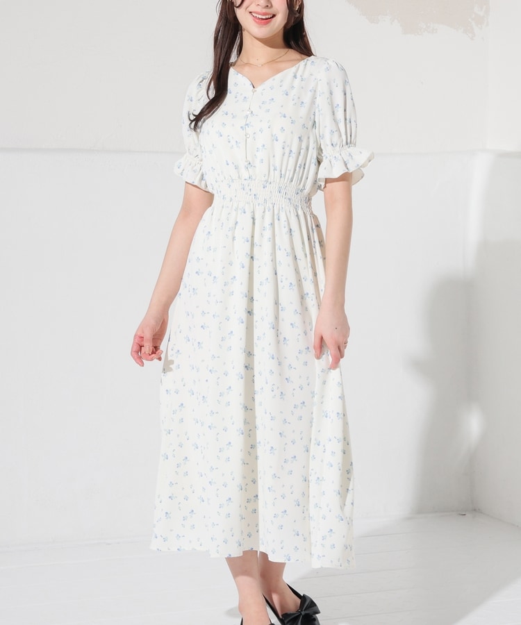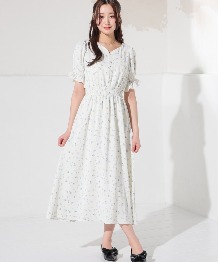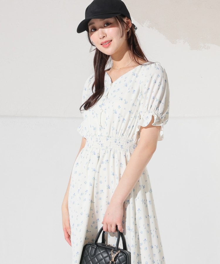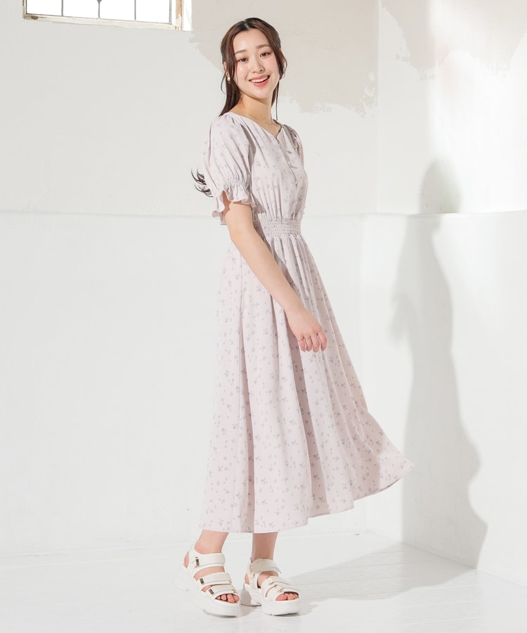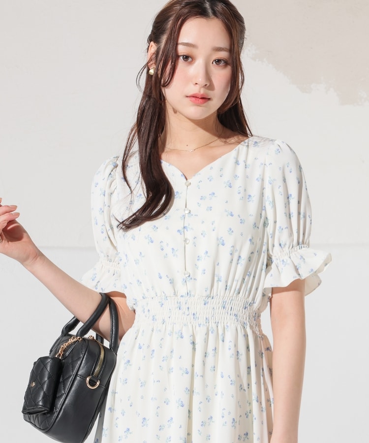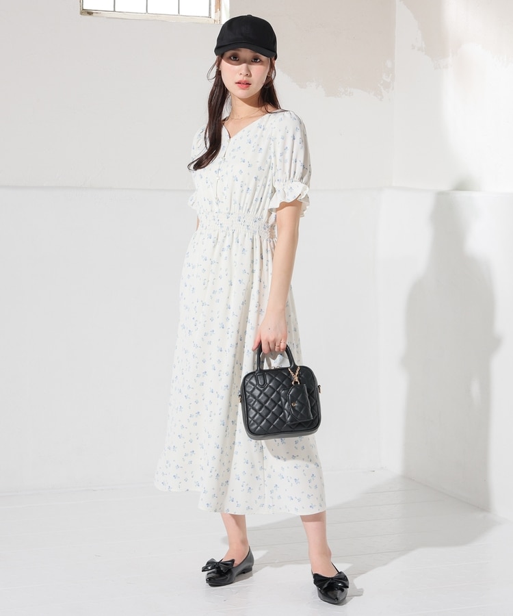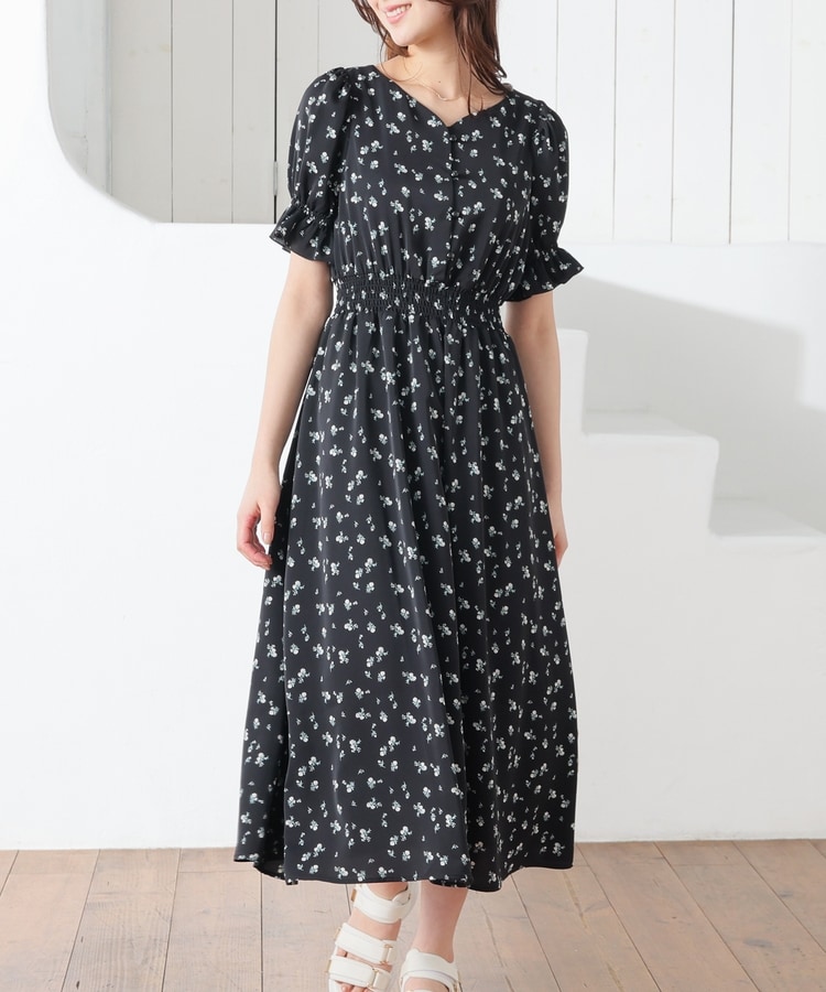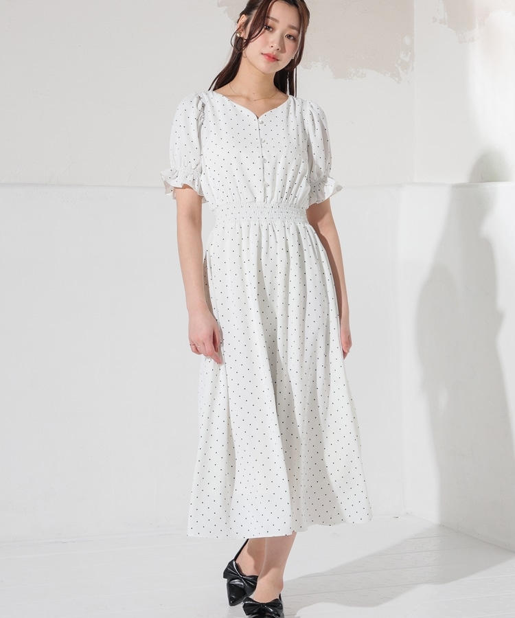 ふんわり広がるフレアラインにウエストのゴムシャーリングで、スタイルアップも叶うメリハリシルエット。