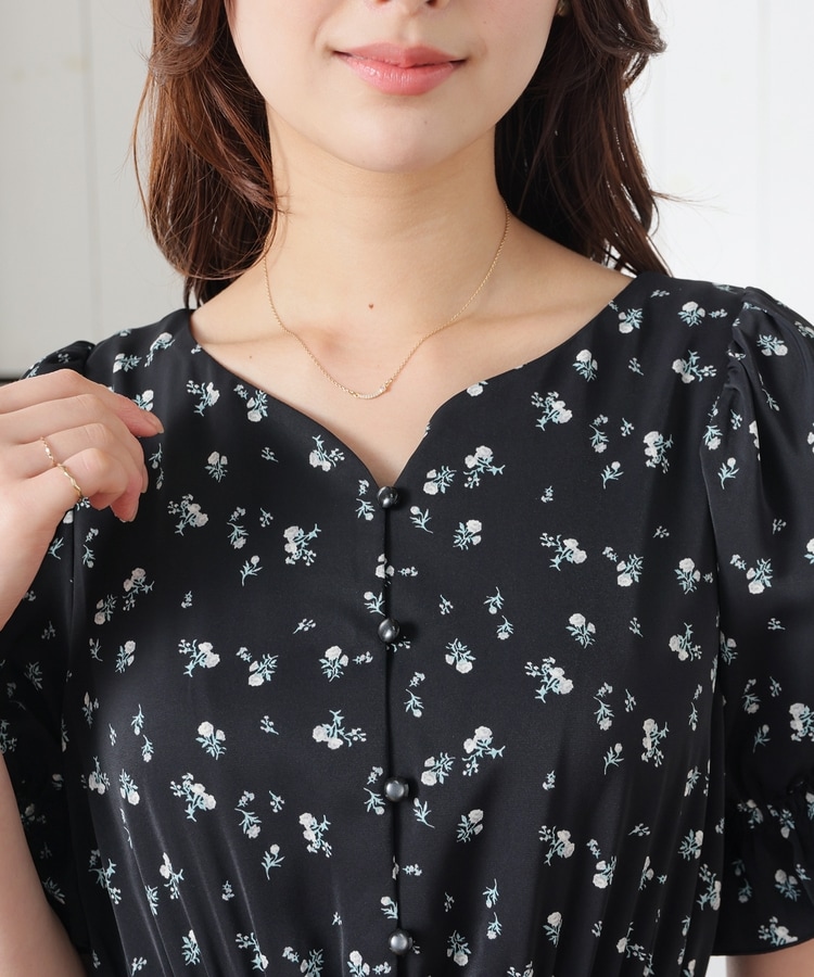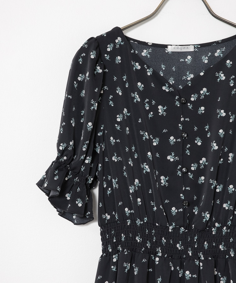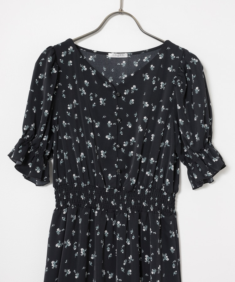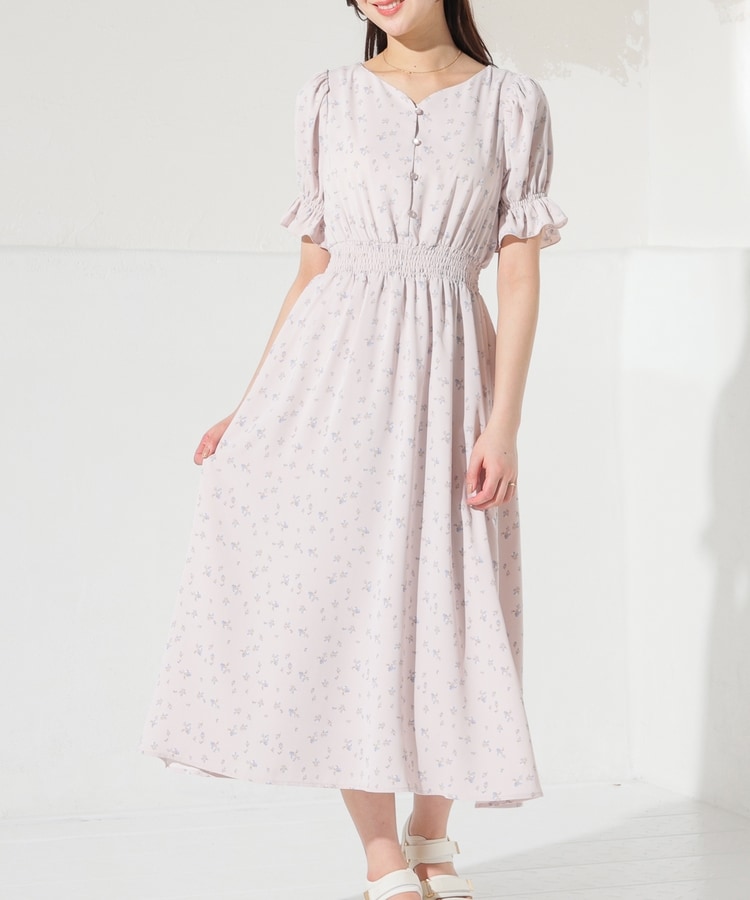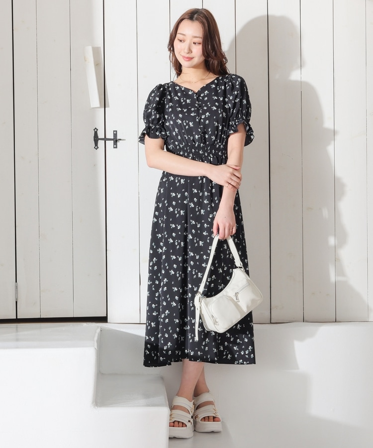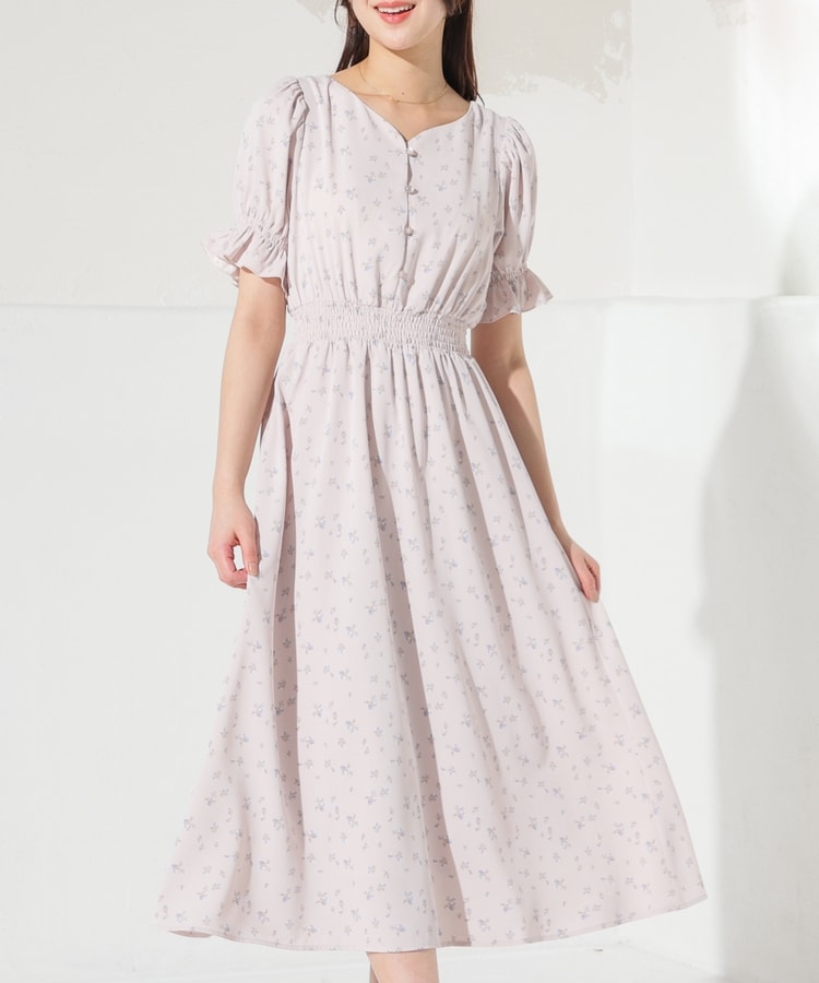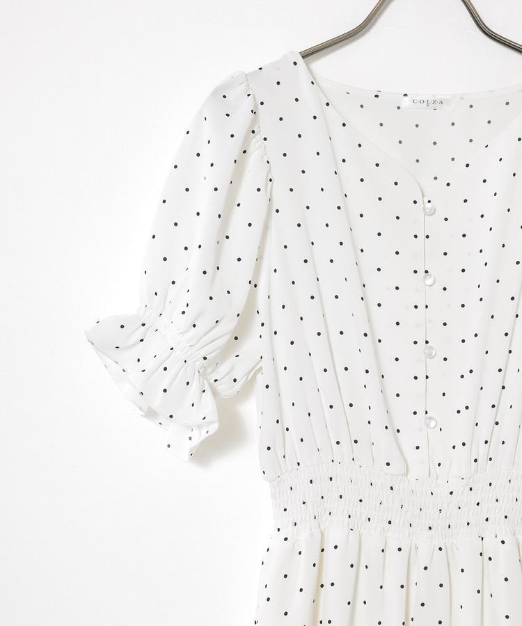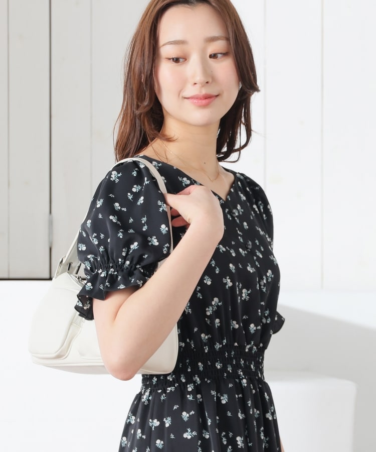 ふんわり広がるフレアラインにウエストのゴムシャーリングで、スタイルアップも叶うメリハリシルエット。