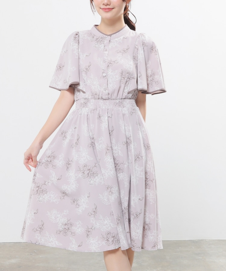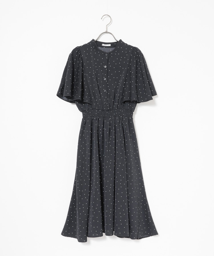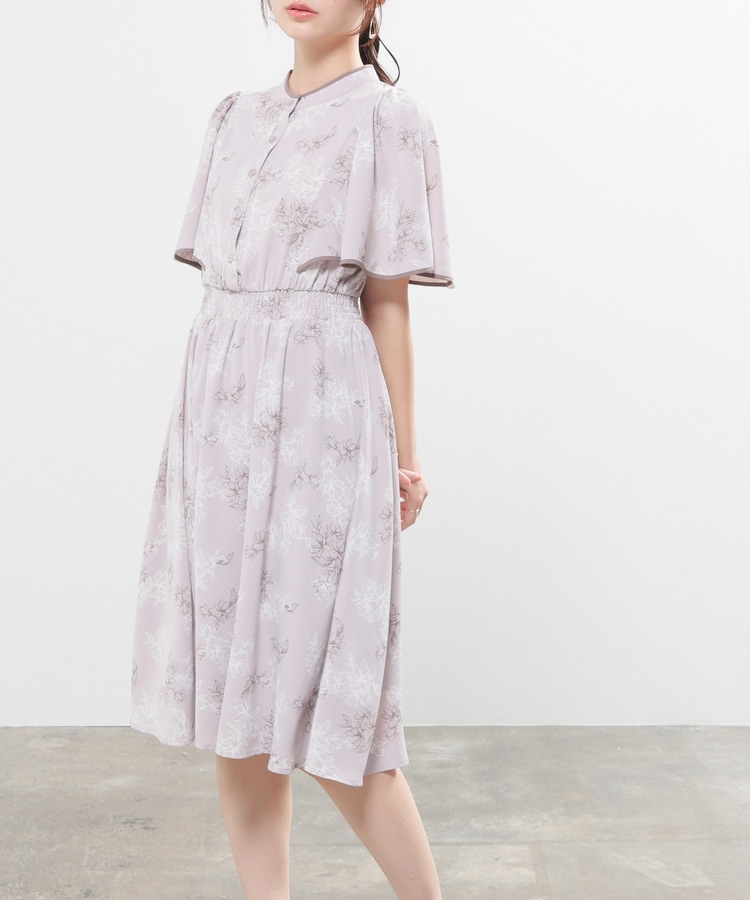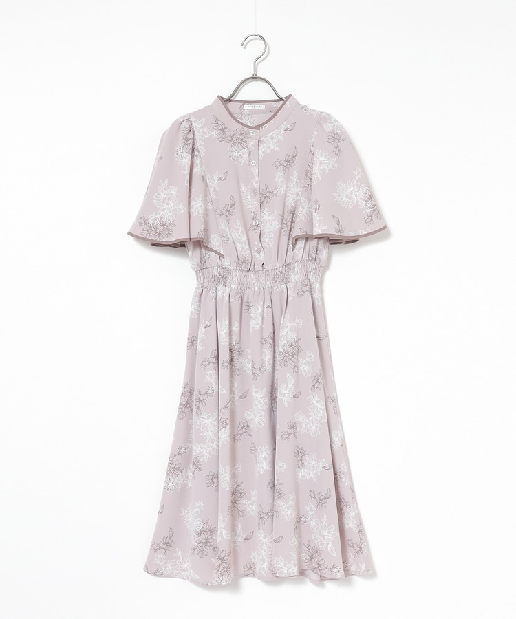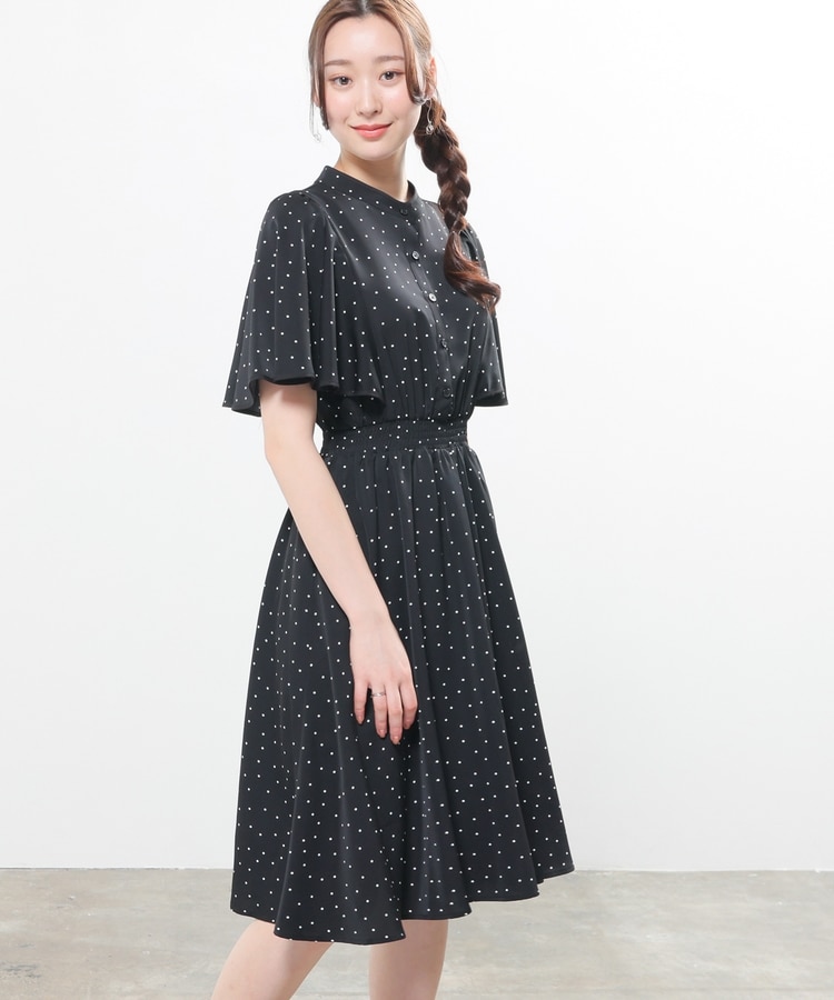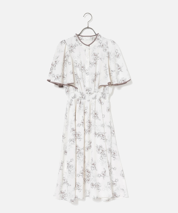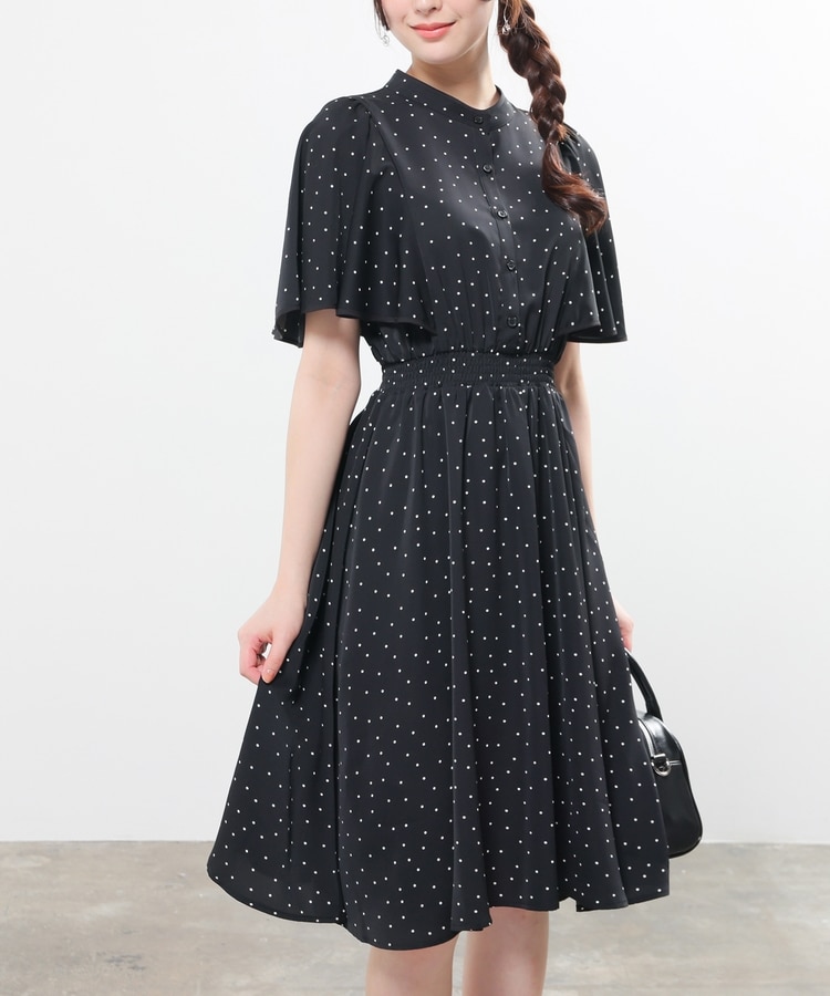 ケープ風の袖とスカートのフレアシルエットがフェミニンなデザイン。