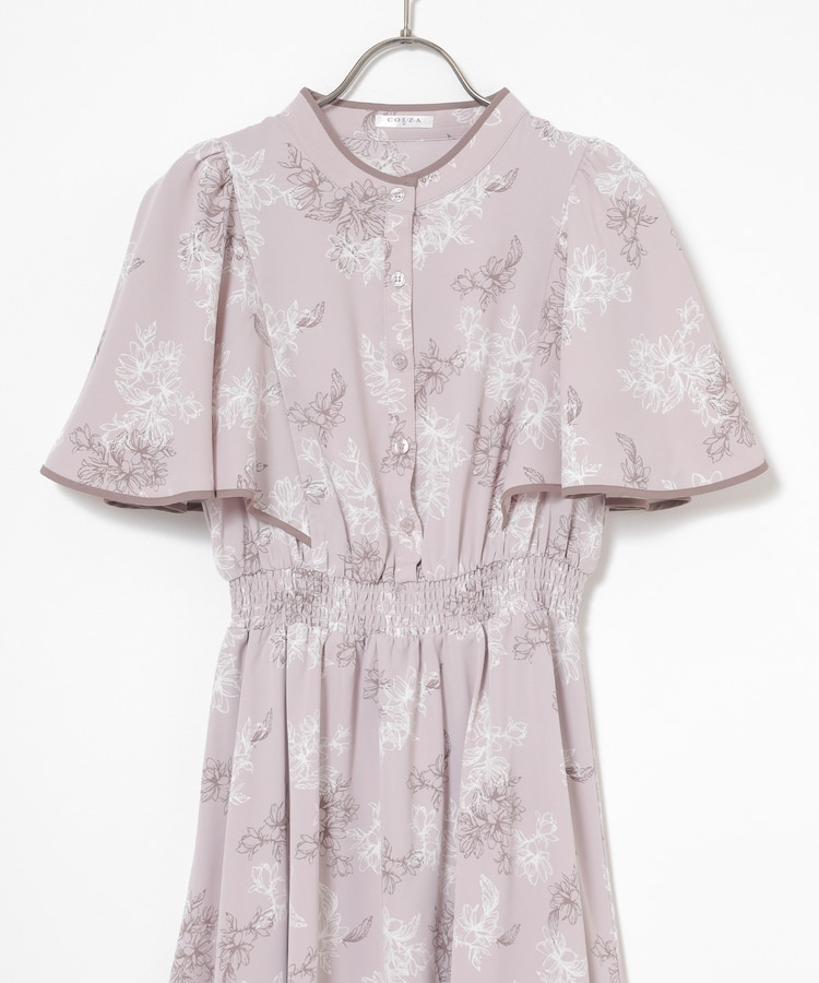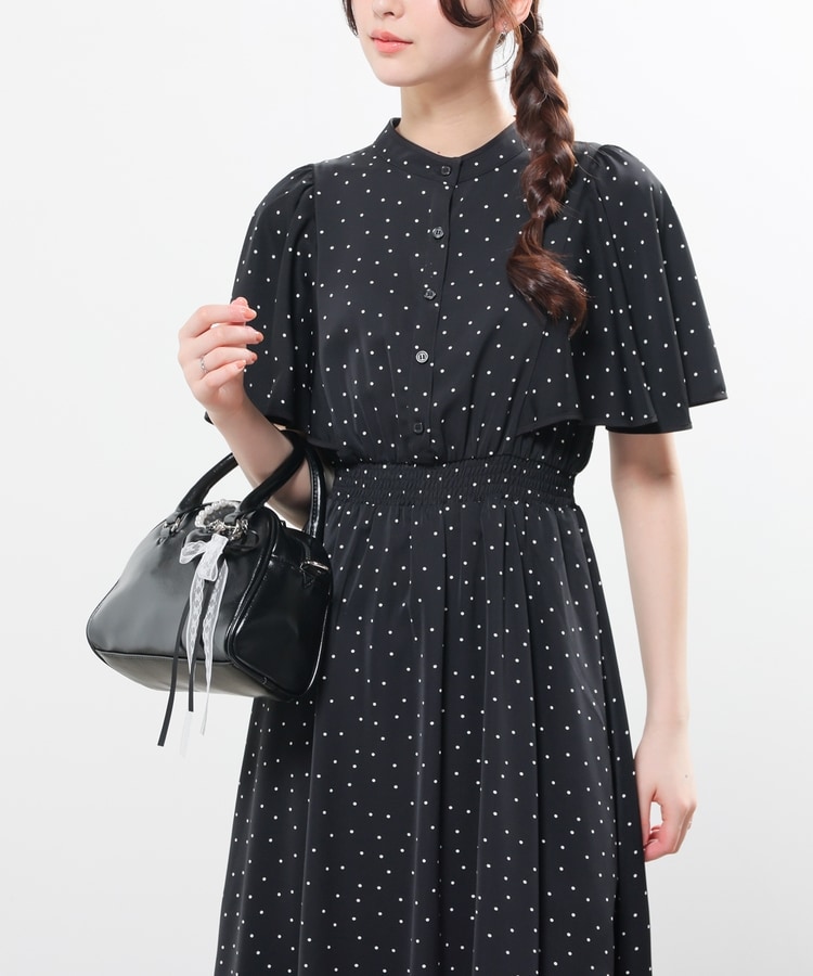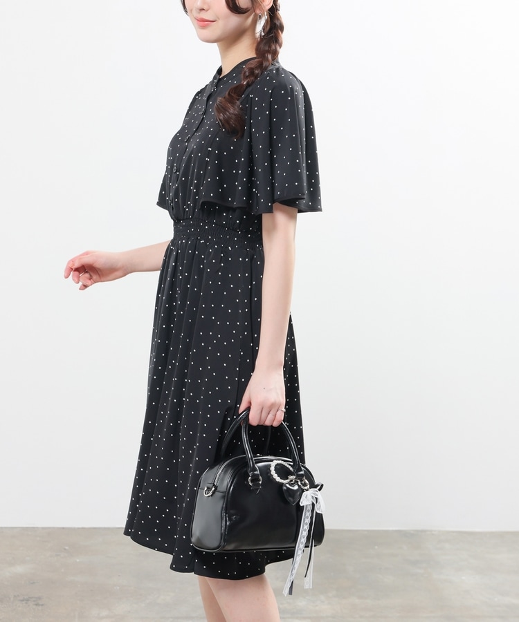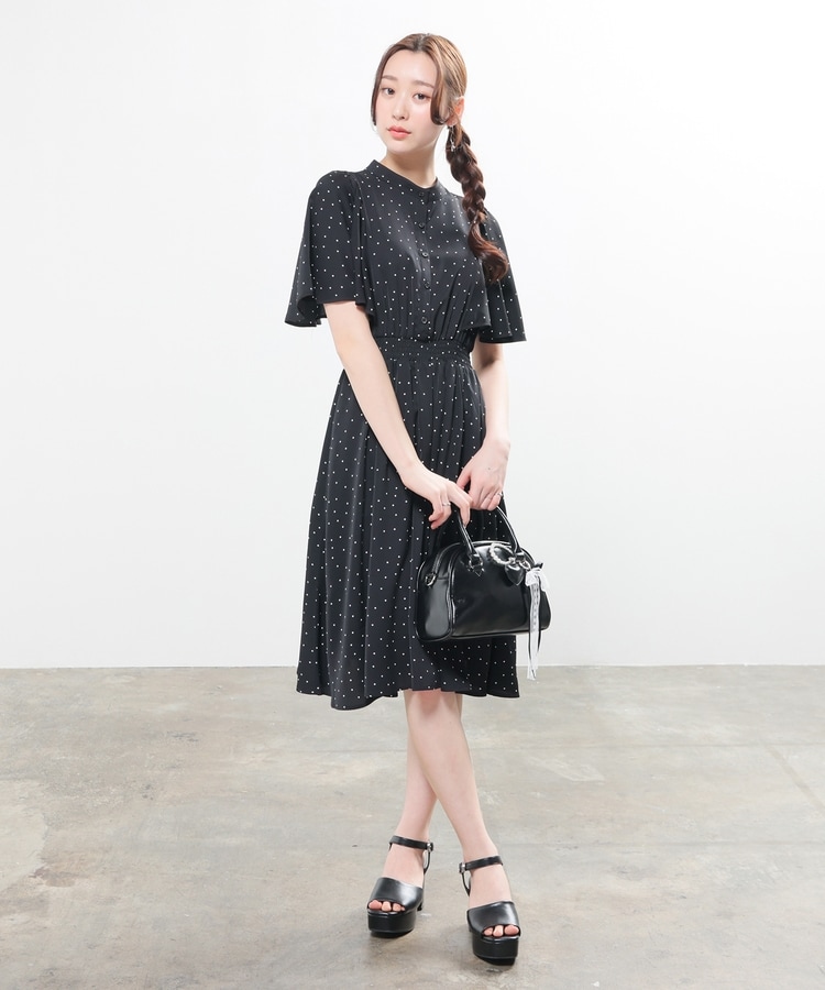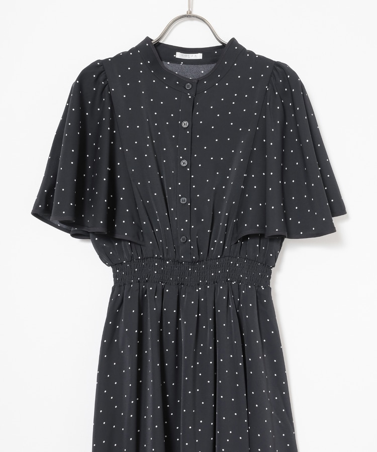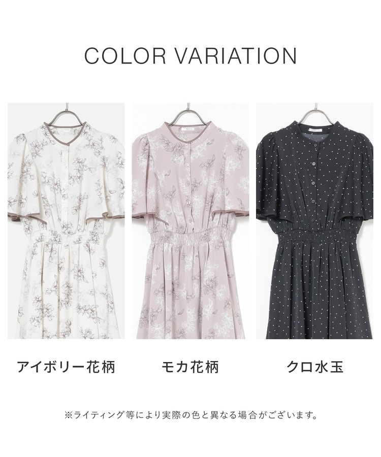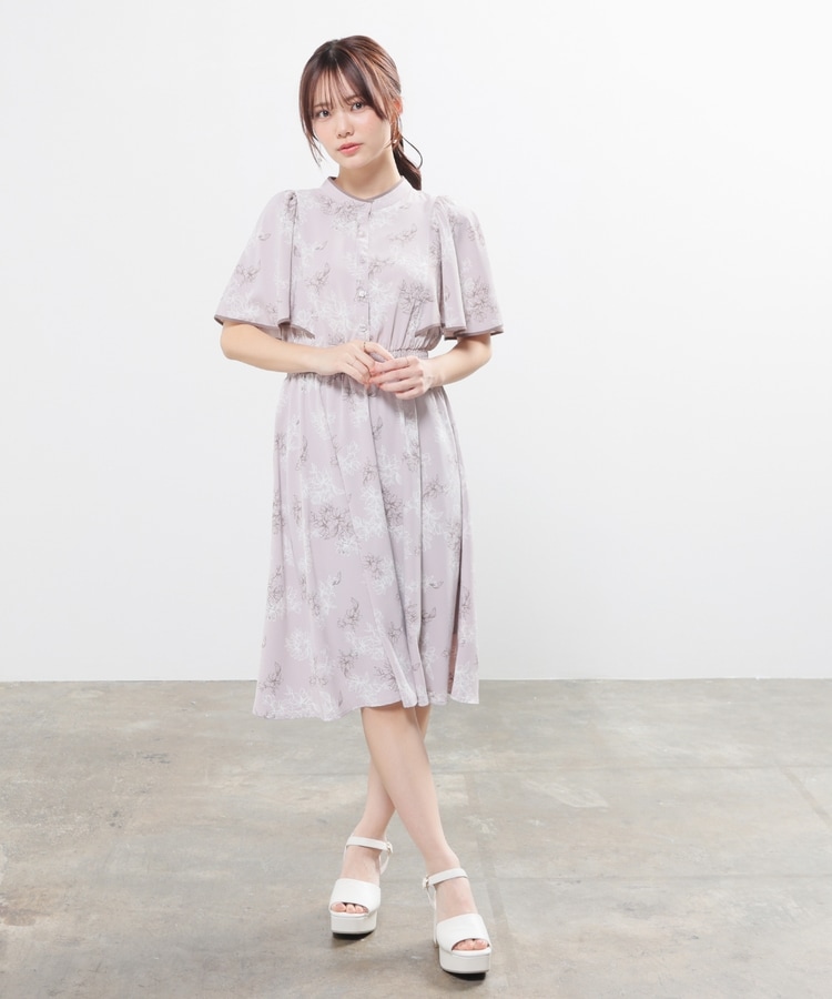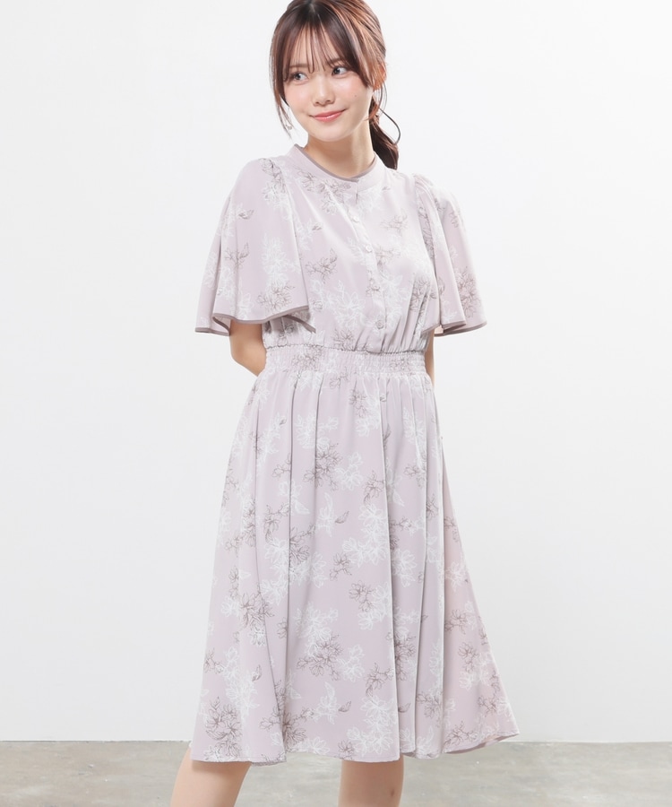 ケープ風の袖とスカートのフレアシルエットがフェミニンなデザイン。