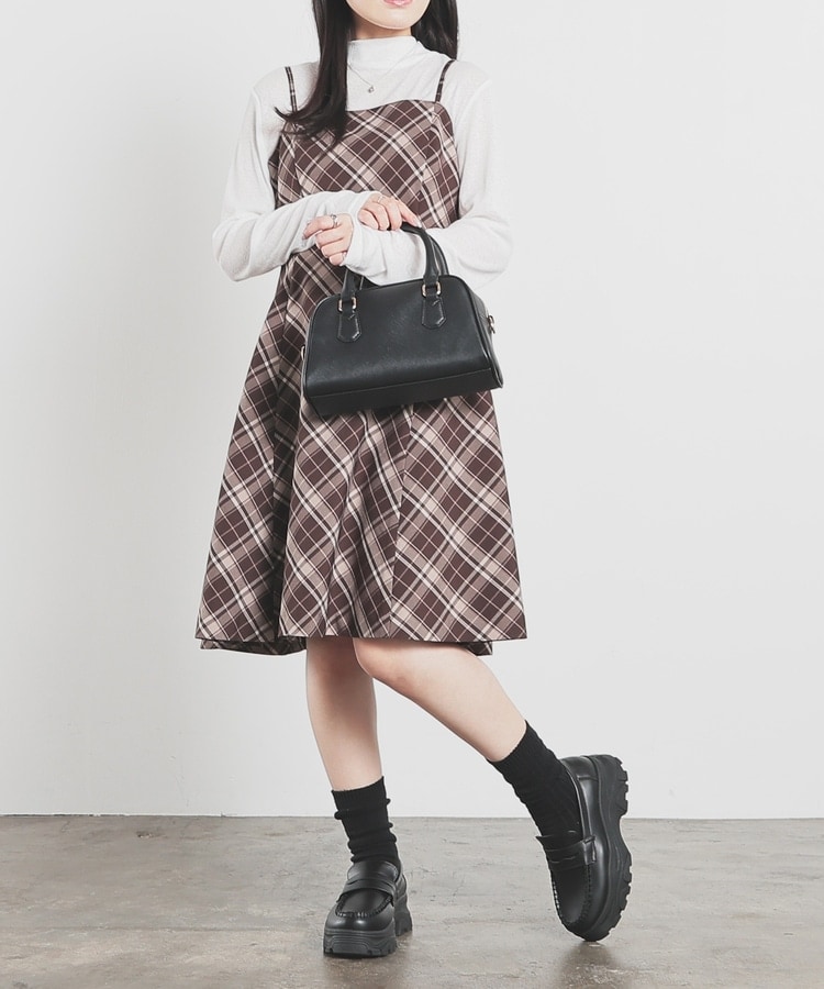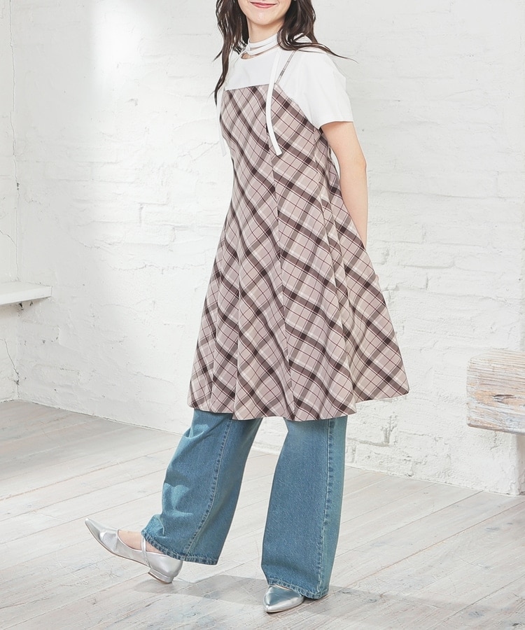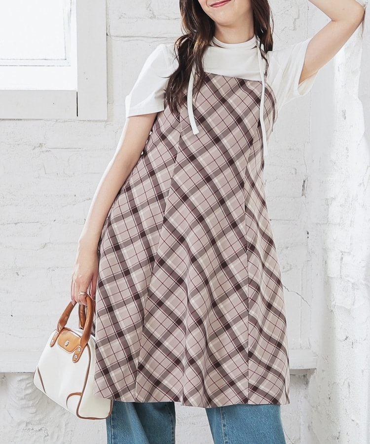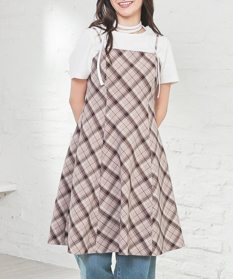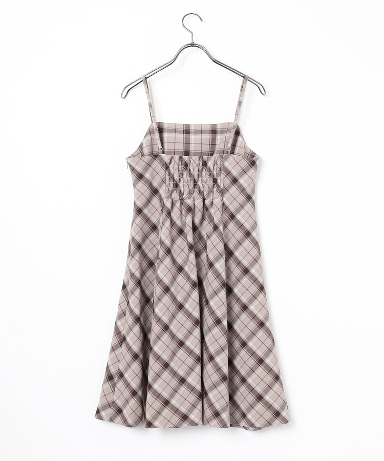 バックのゴムシャーリングで絞ったウエストから、裾にかけて程よく広がるきれいなシルエット。
