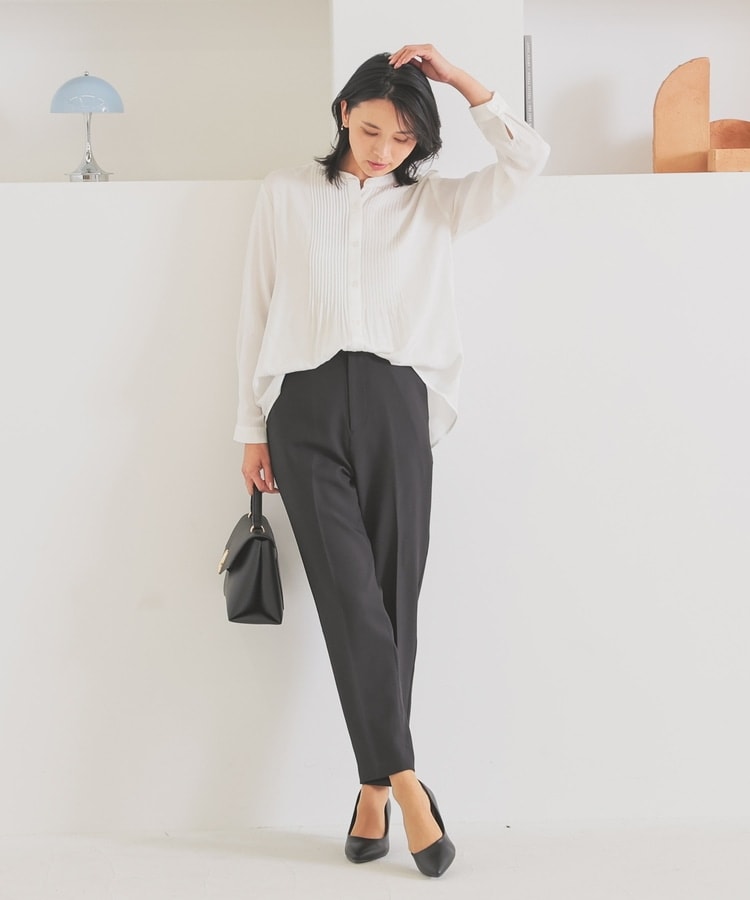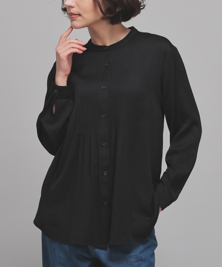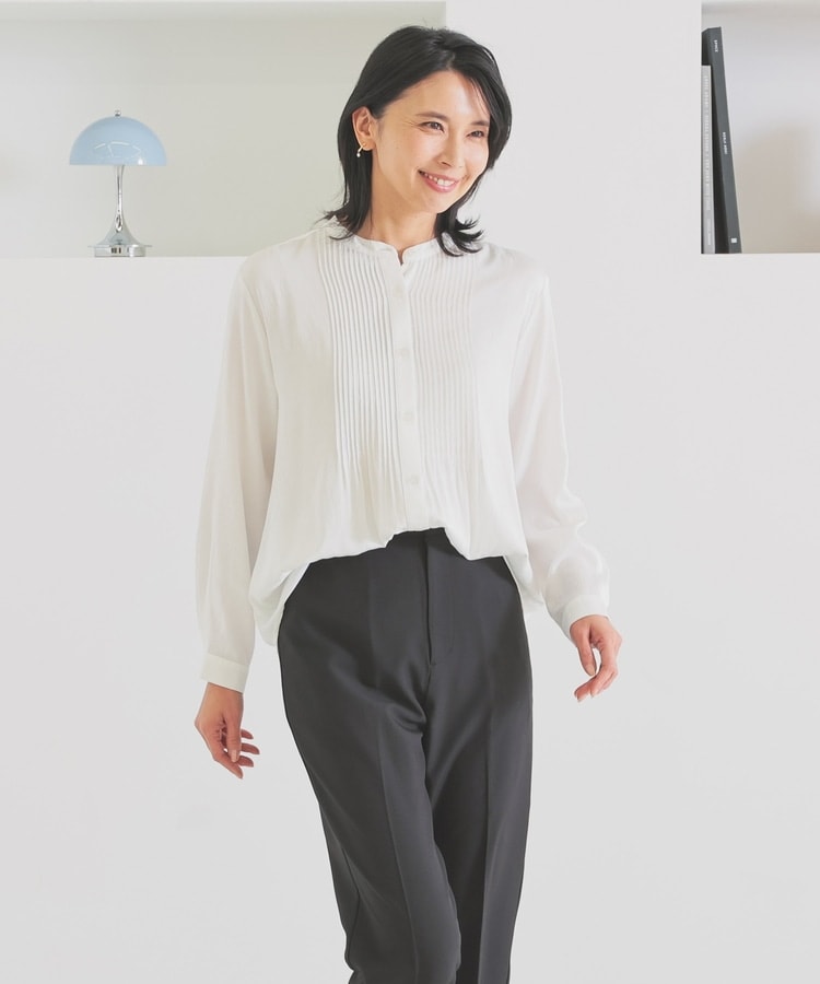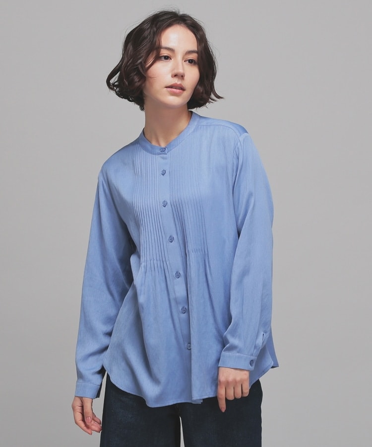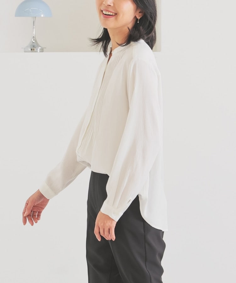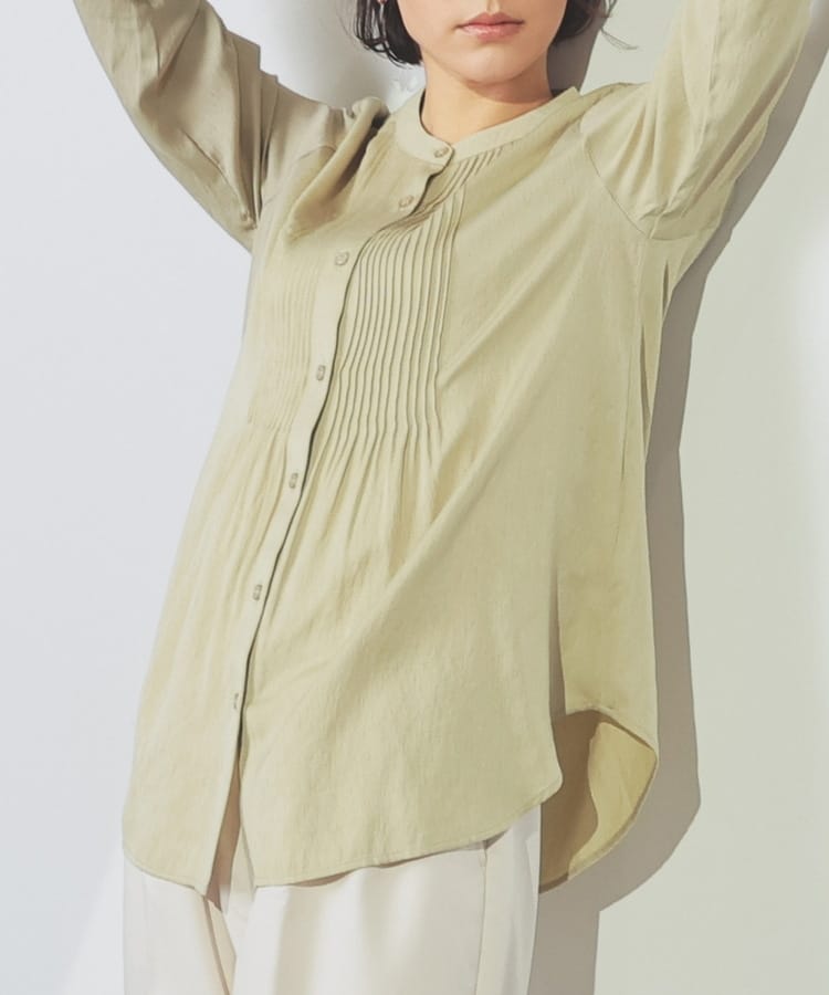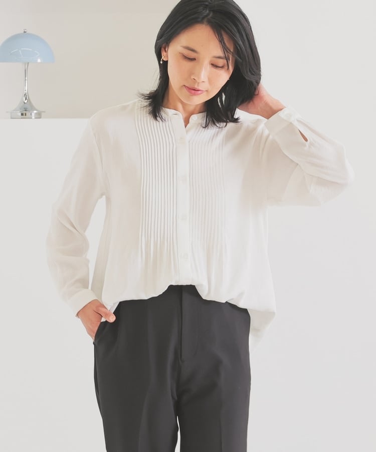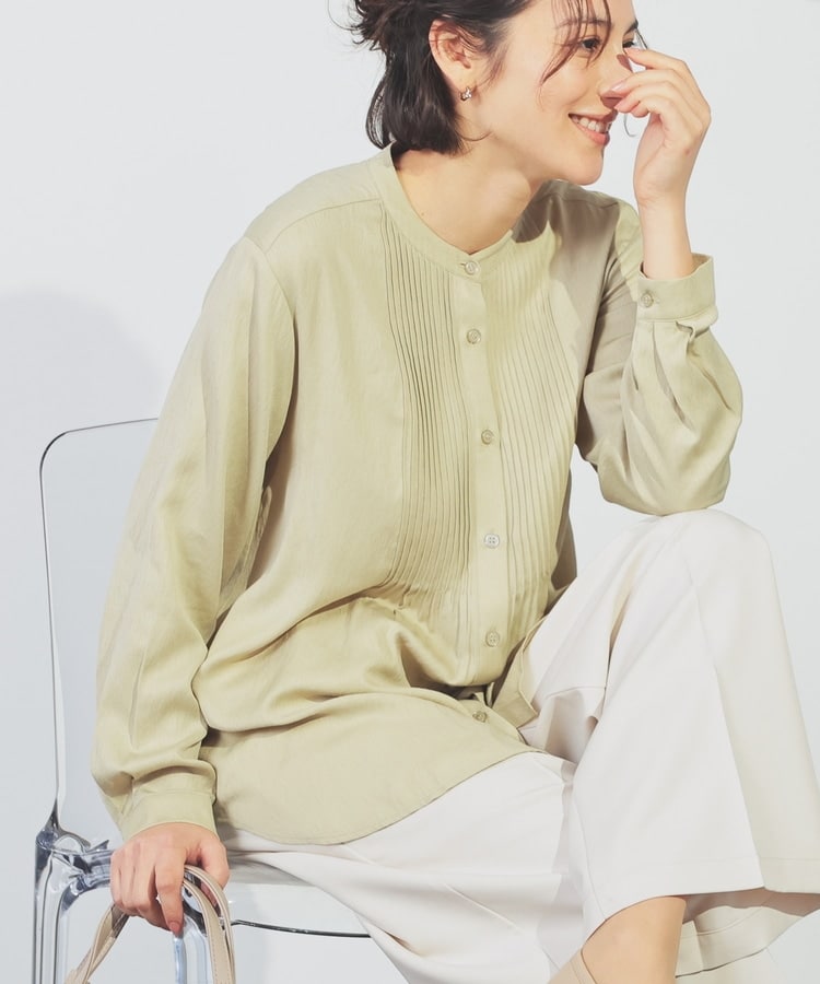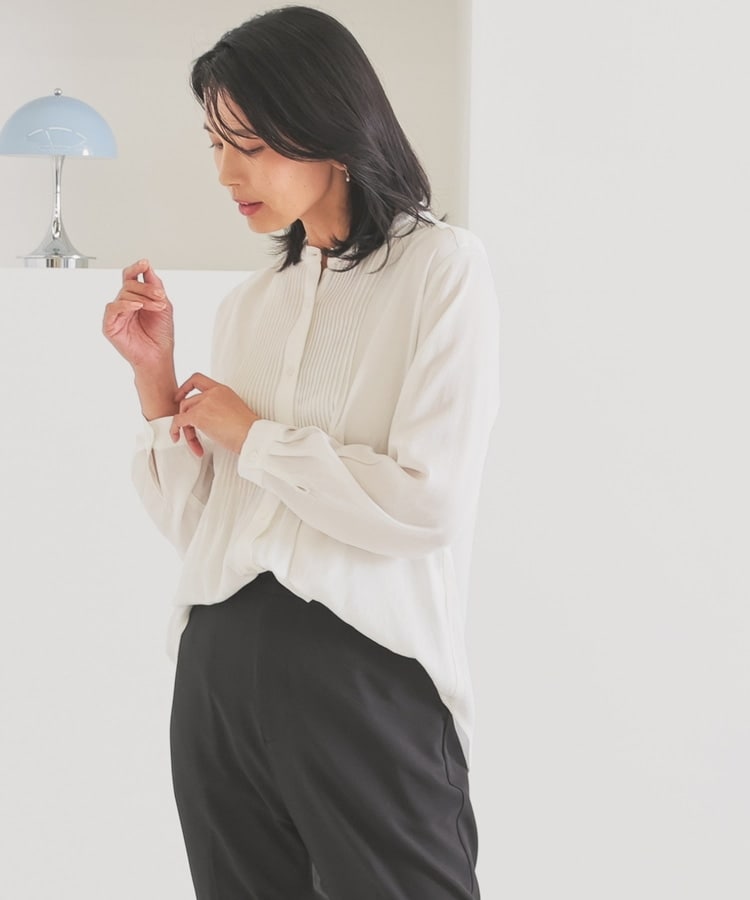 フロントのピンタックがフェミニンで華やかなデザイン。