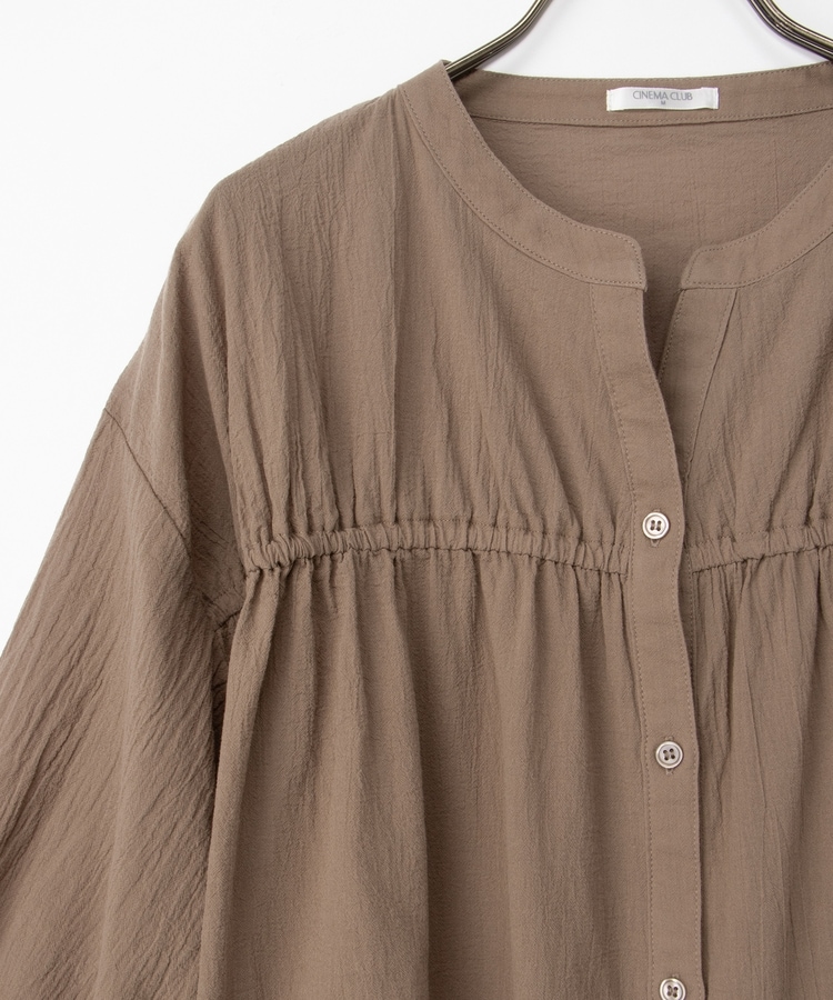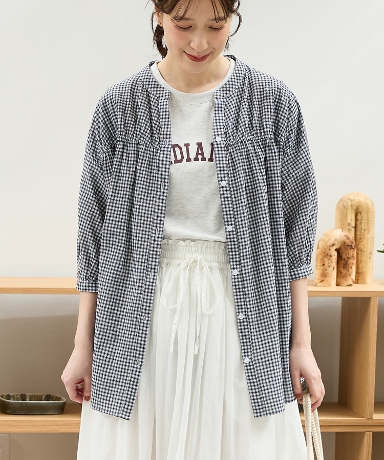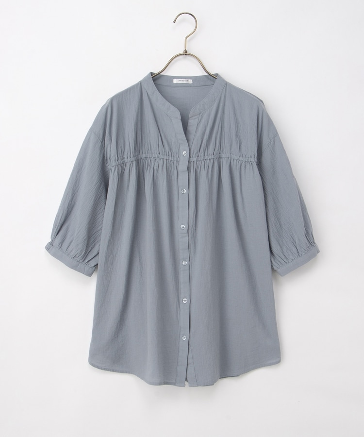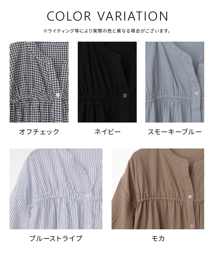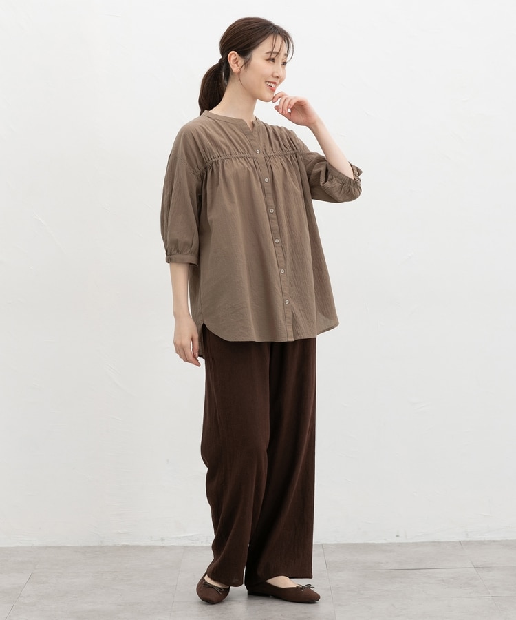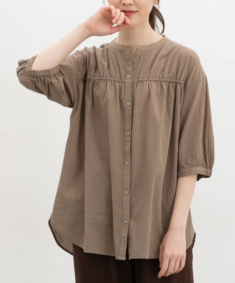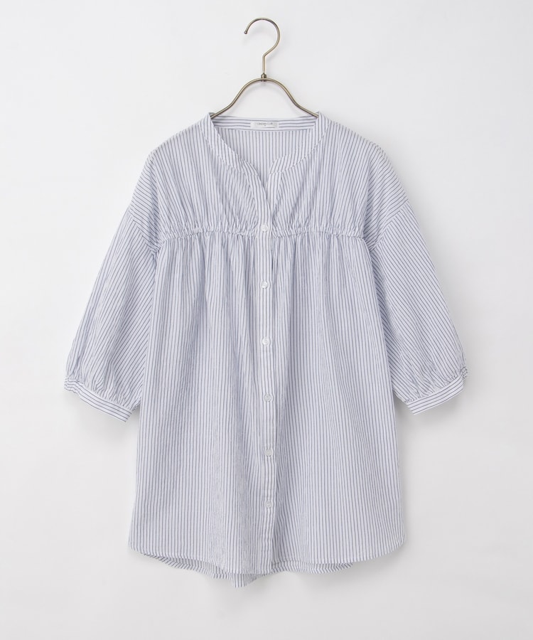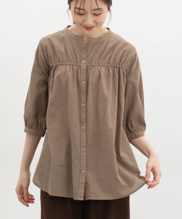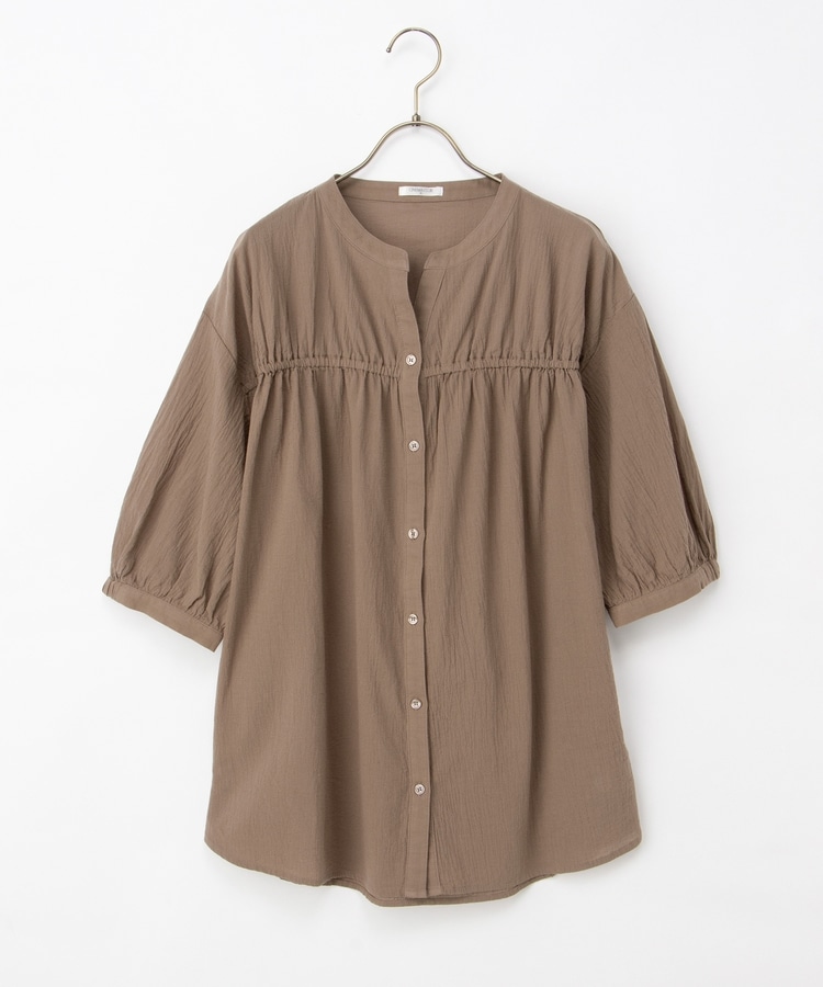 胸切替上下のシャーリングギャザーが大人可愛い、ナチュラルフェミニンなデザイン。