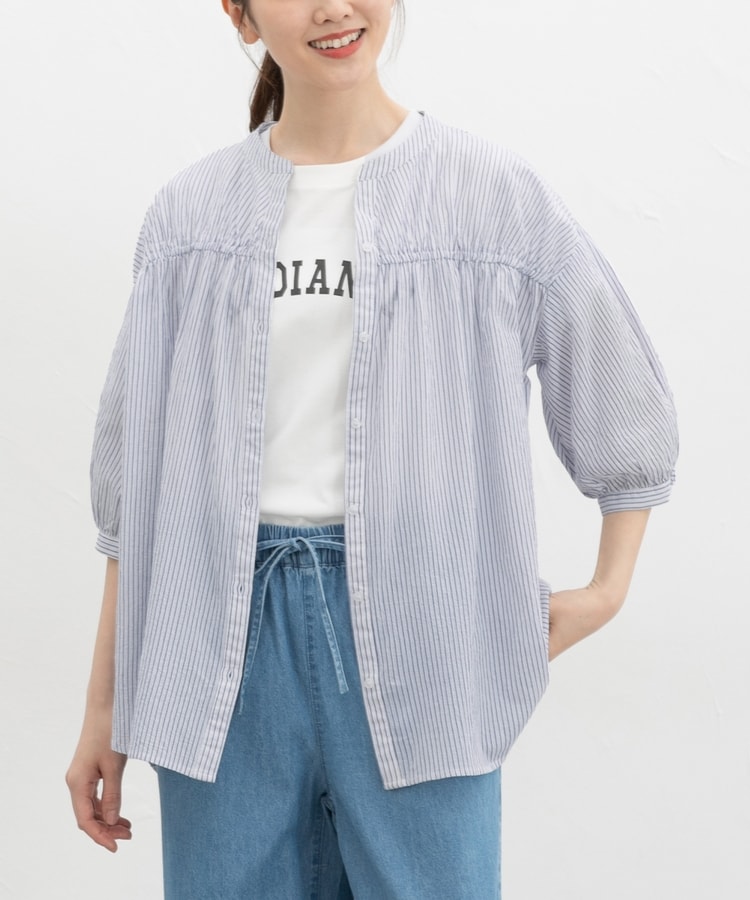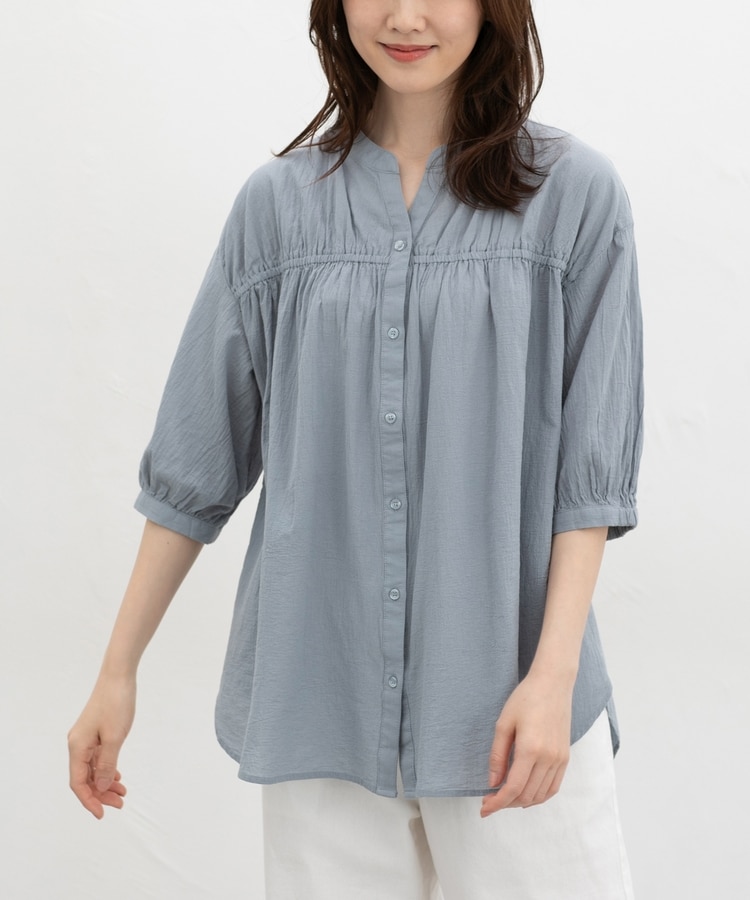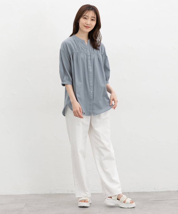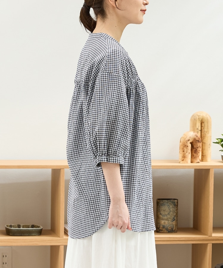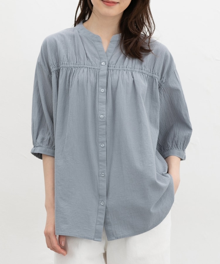 暑い季節もさらっと着られる、見た目も着心地もさわやかな綿100%楊柳素材。