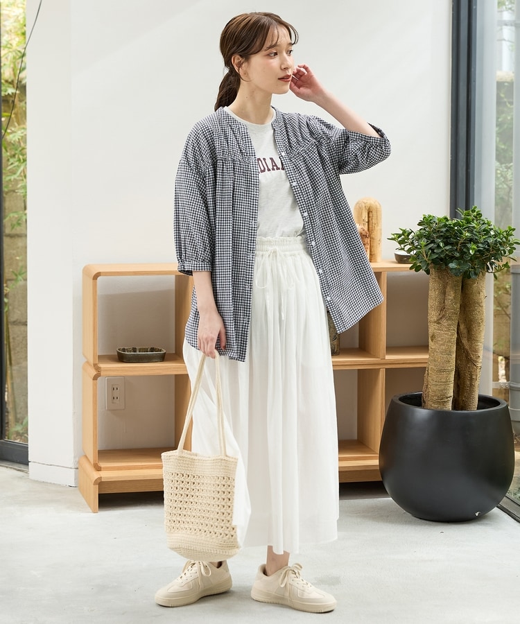 Tシャツやロングワンピースにボタンを開けて羽織るのも◎