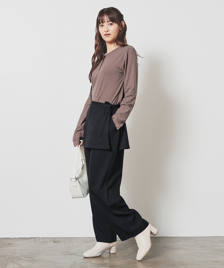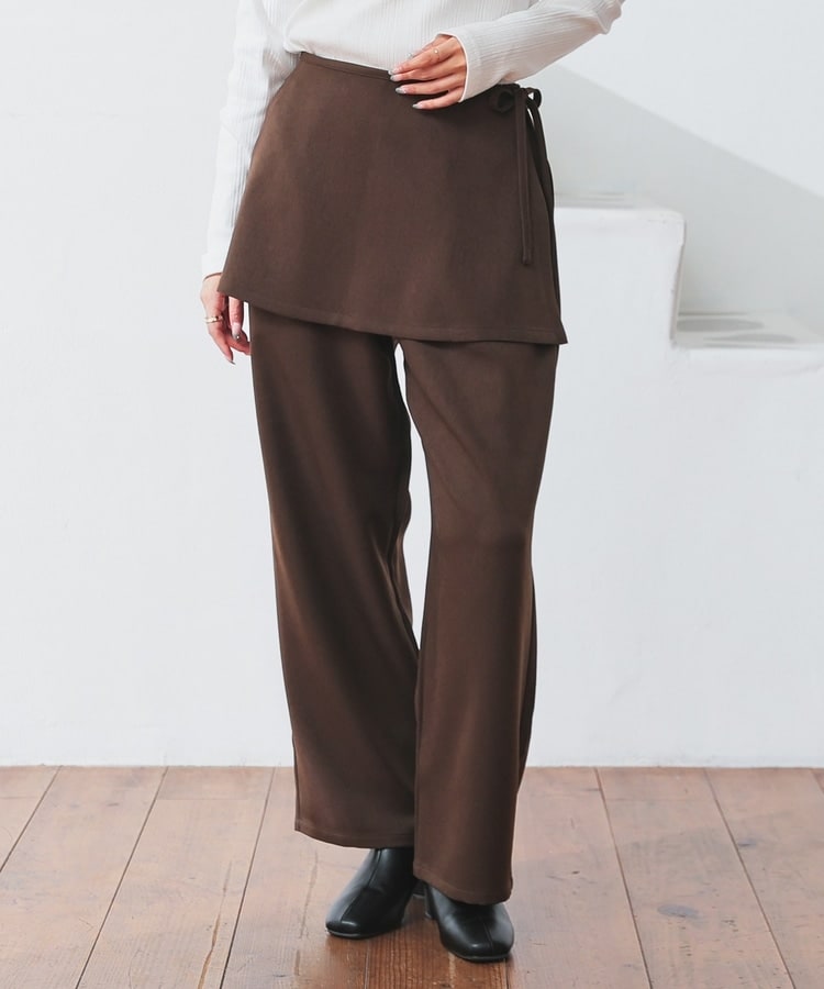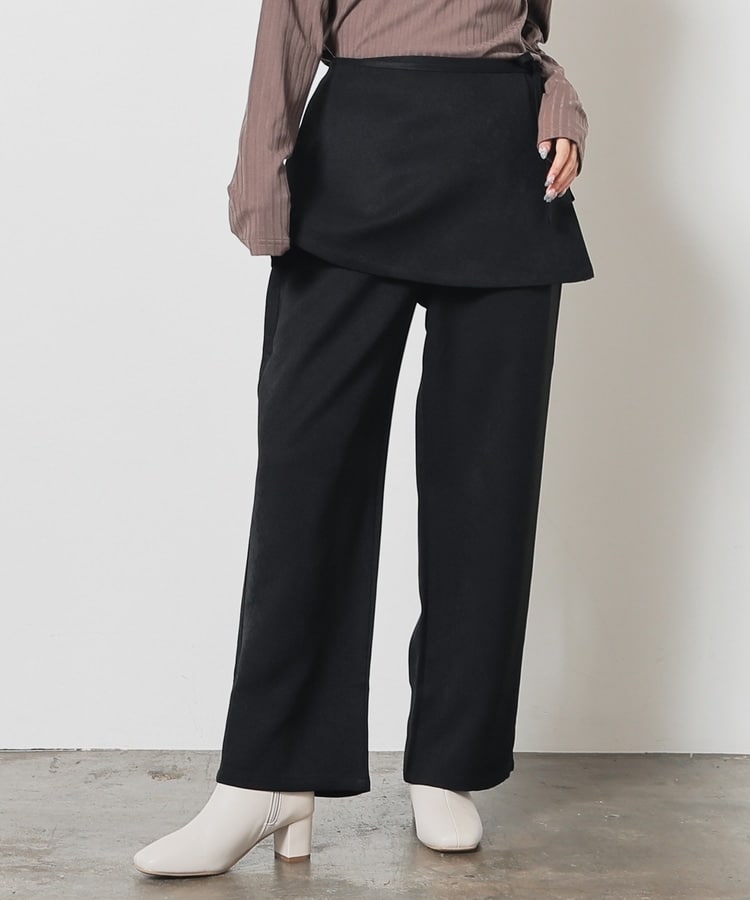 ストンとしたきれいなストレートシルエットのパンツに巻きスカートが付いたトレンドライクなデザイン。