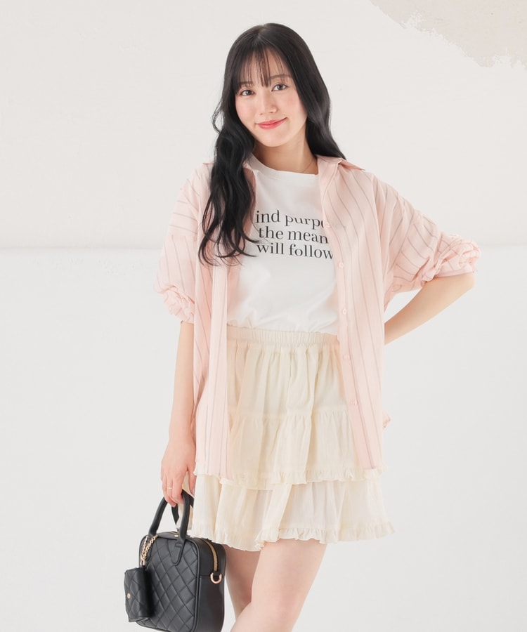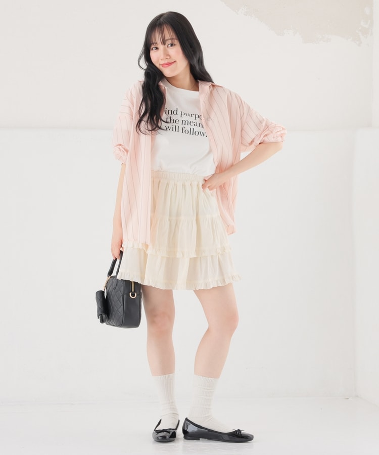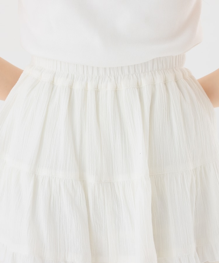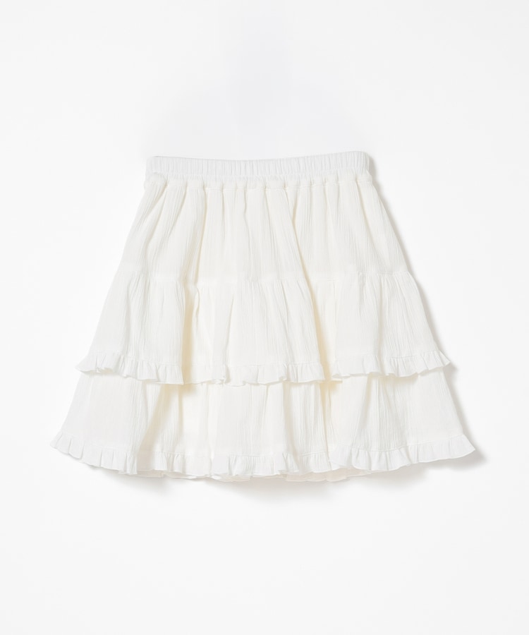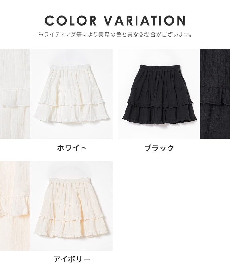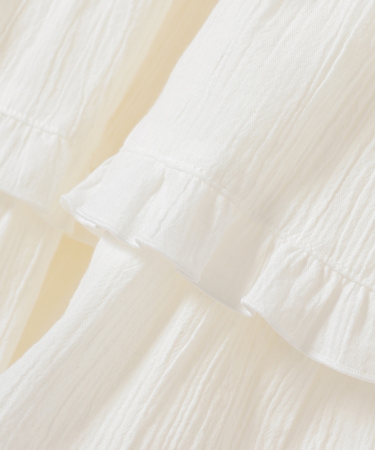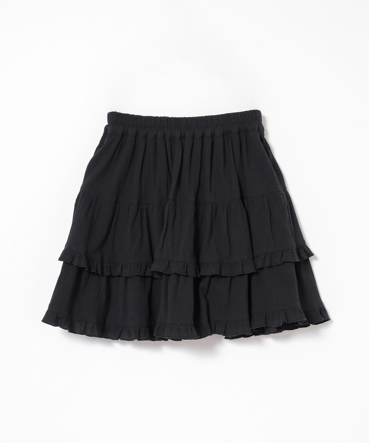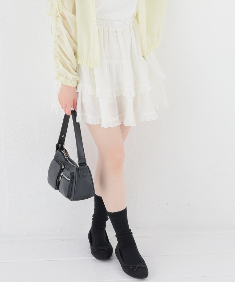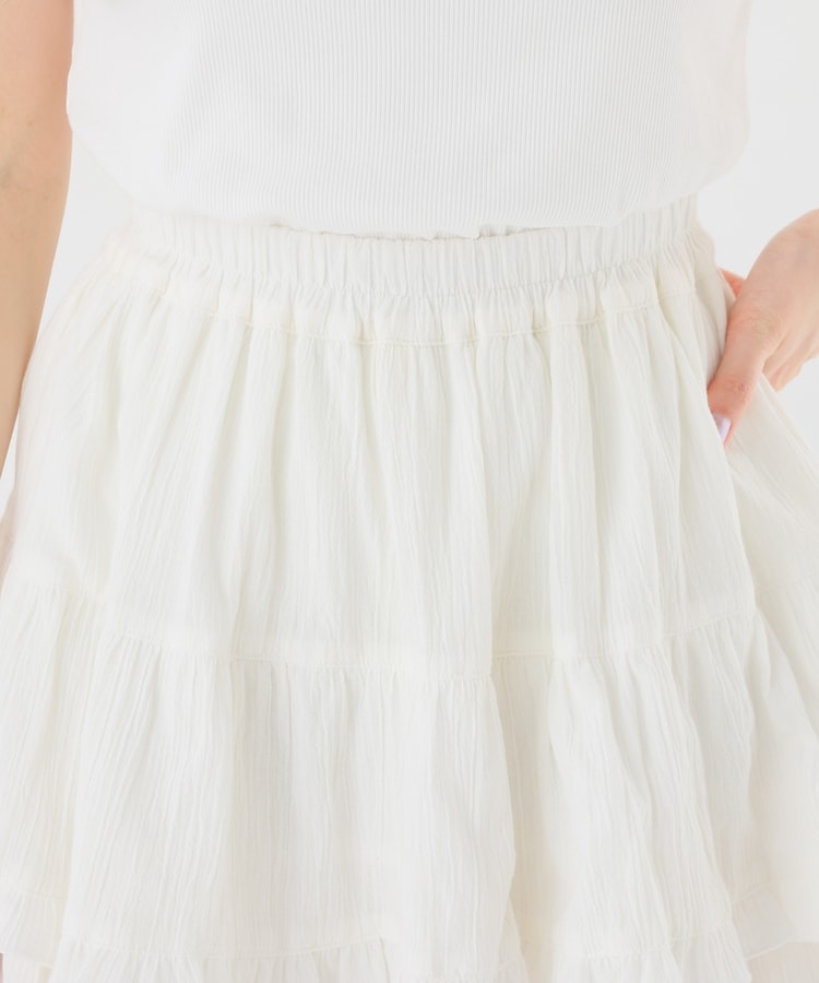 フリル付きの三段ティアードが動くたびにひらひらと揺れる、フェミニンで華やかなデザイン。