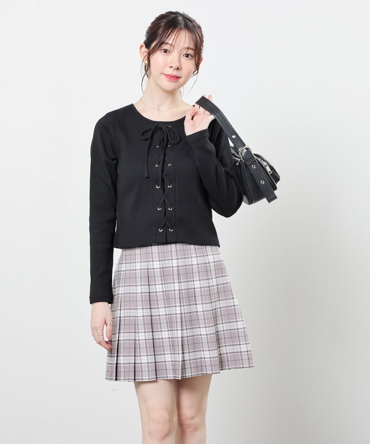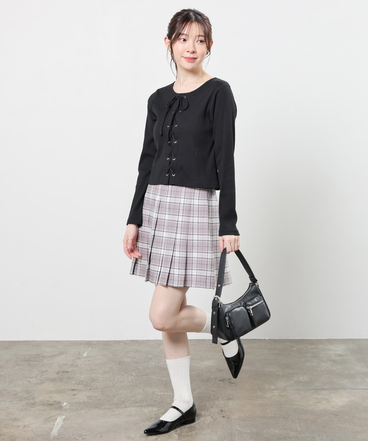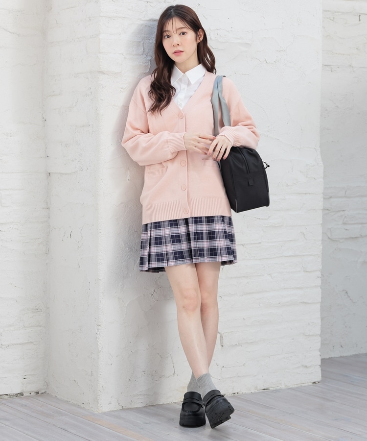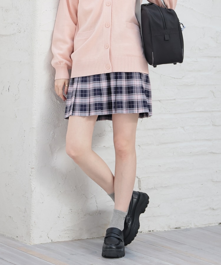 シャツとカーデに合わせてスクール風にも、スウェットやコンパクトトップス合わせで韓国ガーリーにも、ジャンルを問わず幅広いスタイルに大活躍。