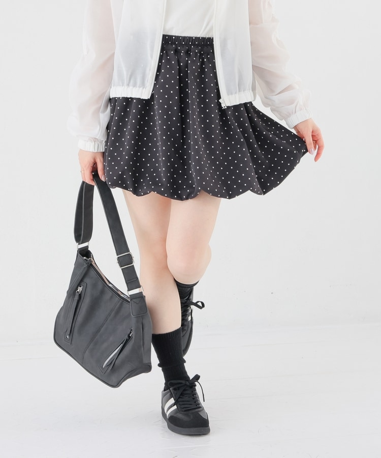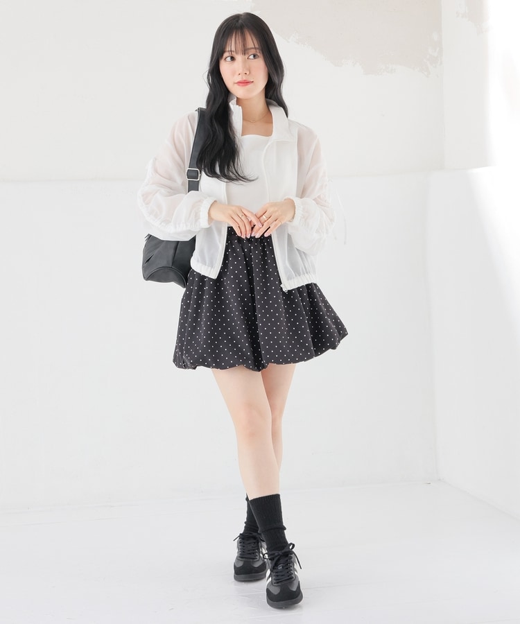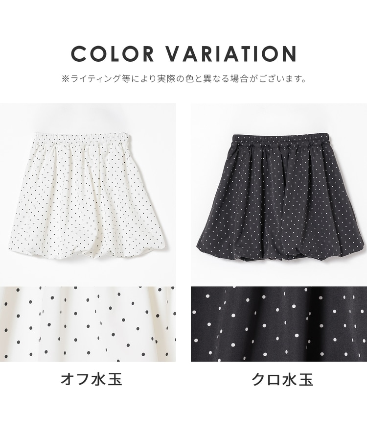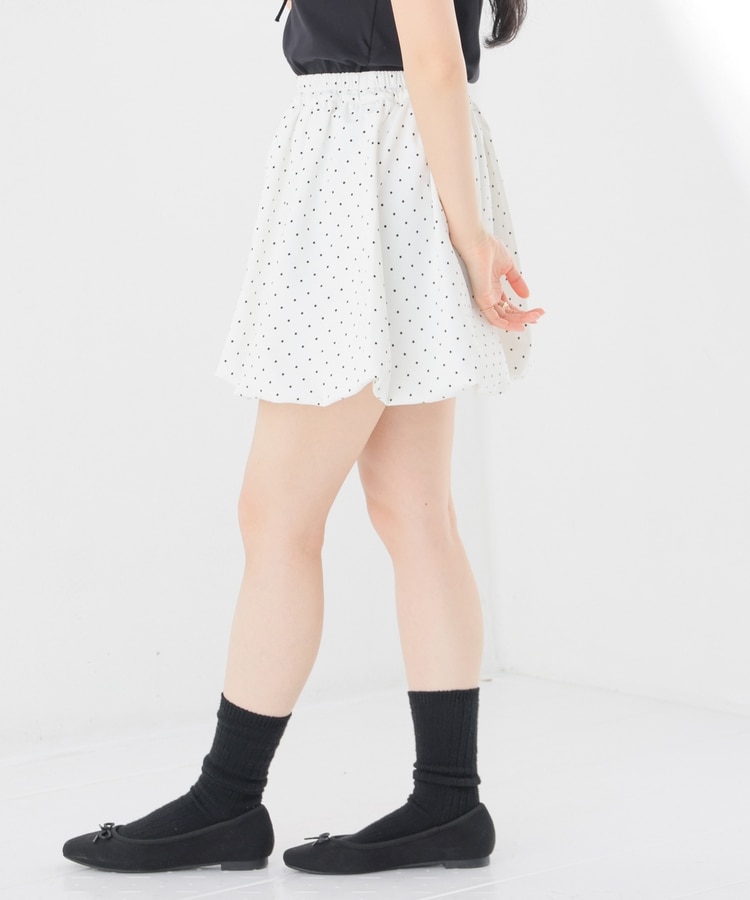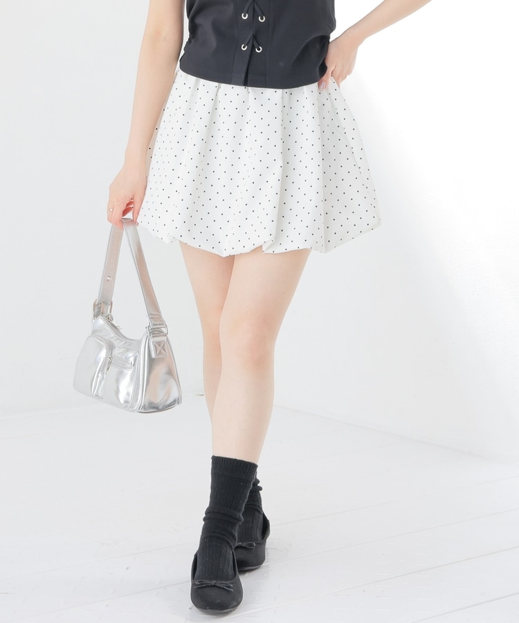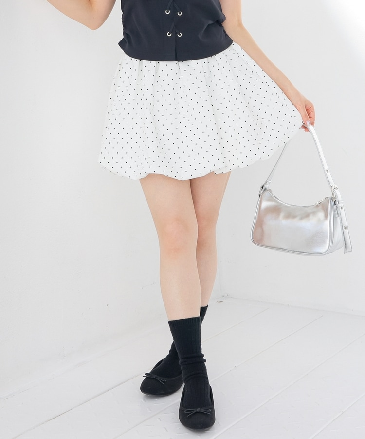 ふんわりボリュームのあるバルーンシルエットと水玉柄がキュートなデザイン。