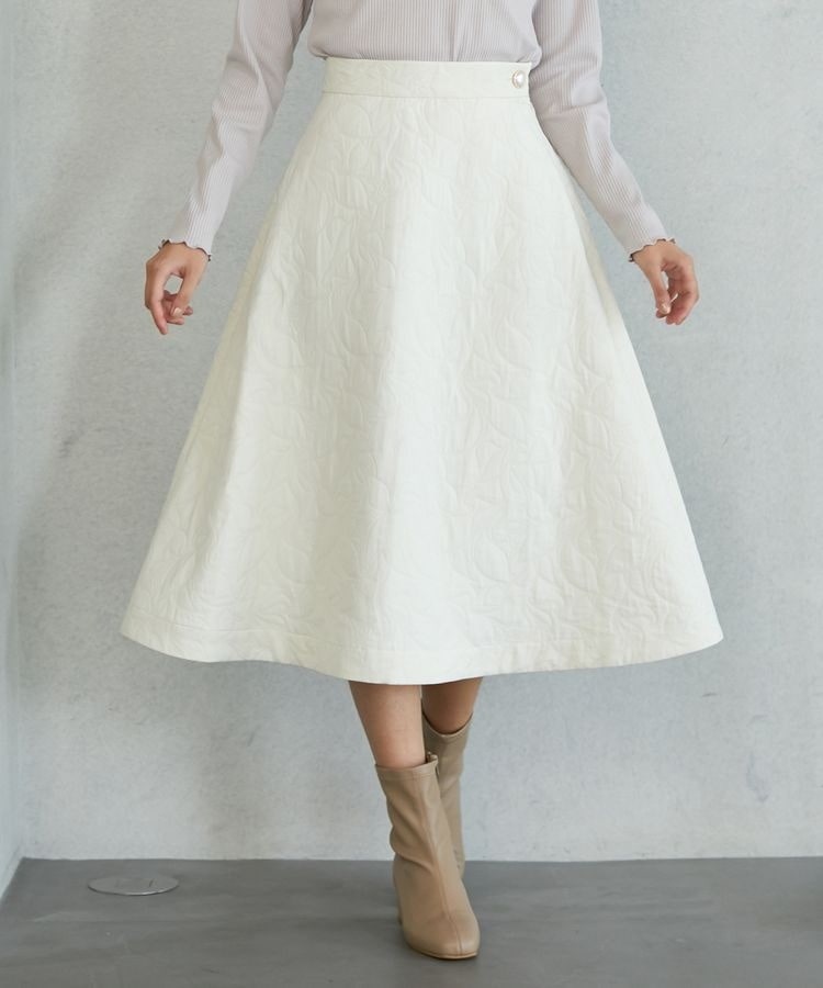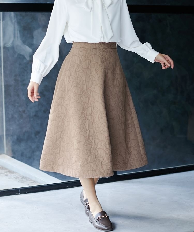 ボタニカルな曲線を描くキルティングステッチの柄が大人可愛いデザイン。