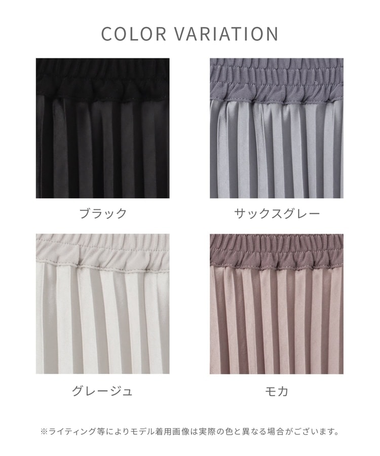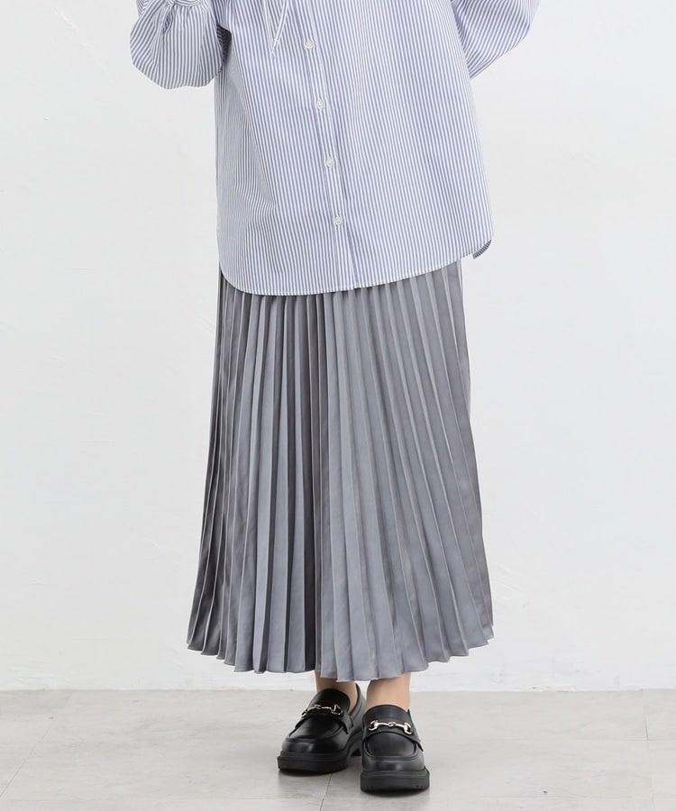 細かなプリーツが動くたびにふわりと揺れるAラインシルエット。