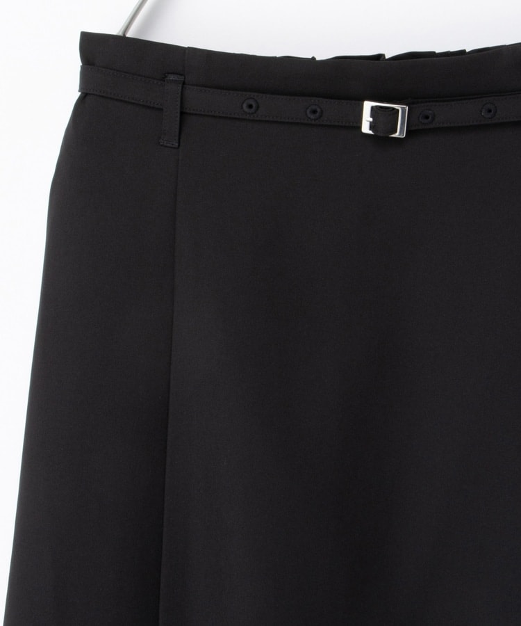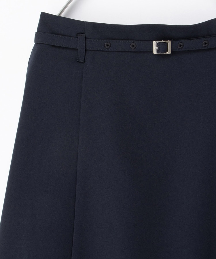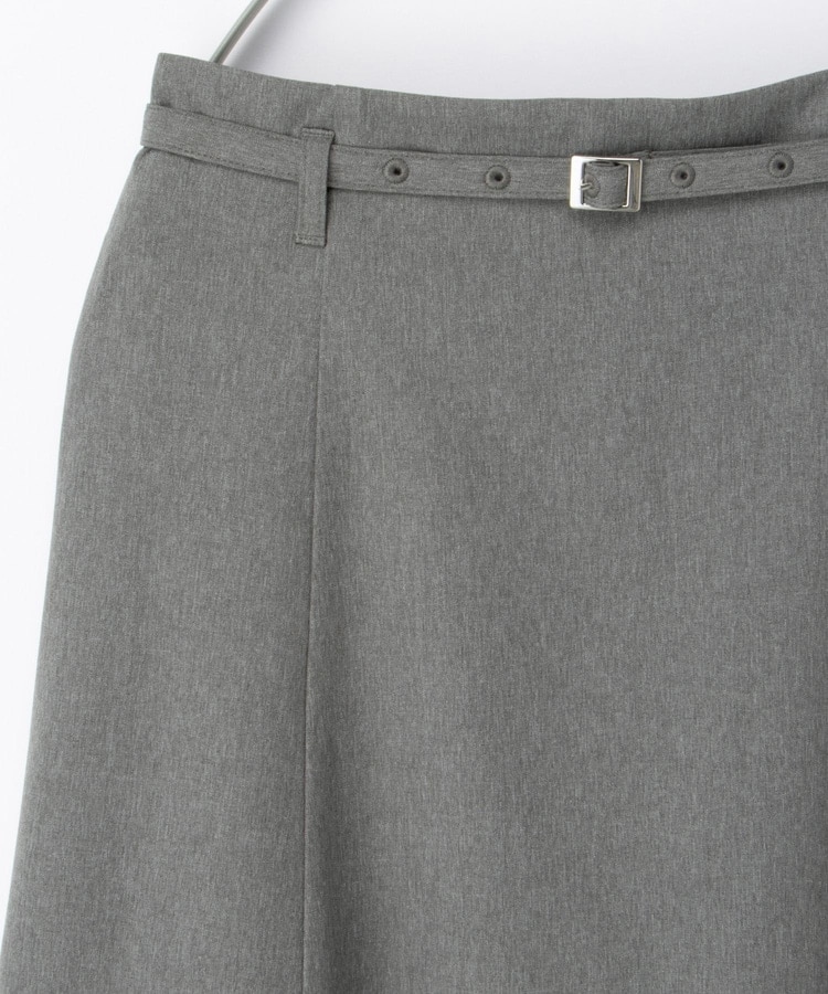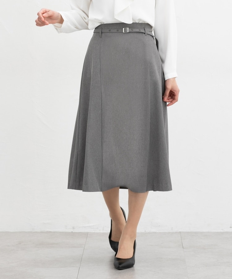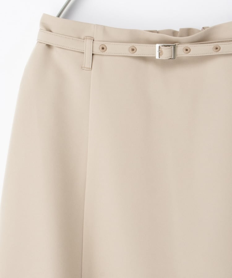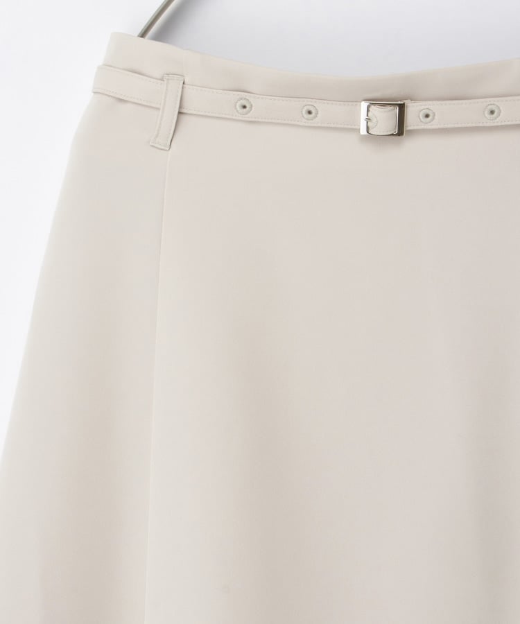 コーデのアクセントにもなる、シルバーバックルの共布ベルト付き。