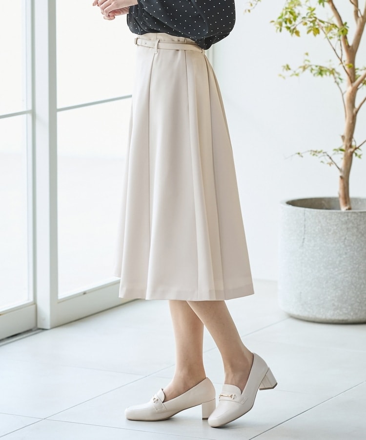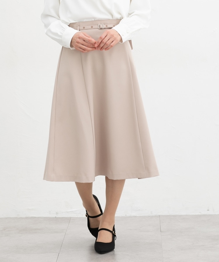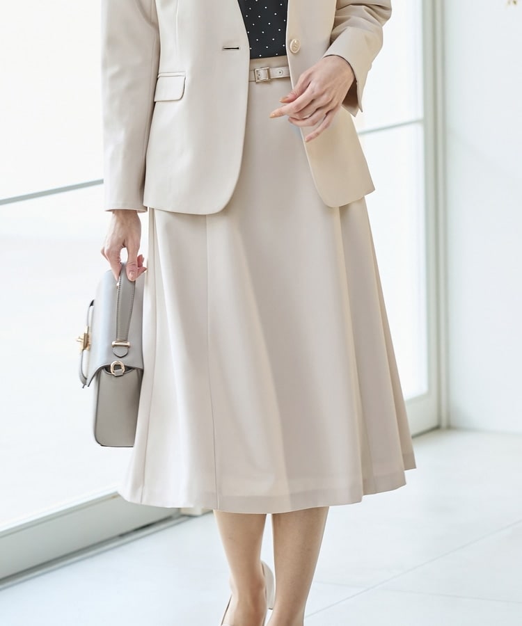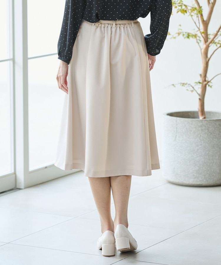 裾に向かって程よく広がるフレアシルエットが大人フェミニンなデザイン。