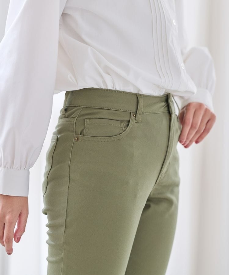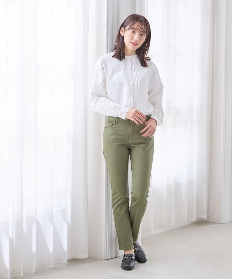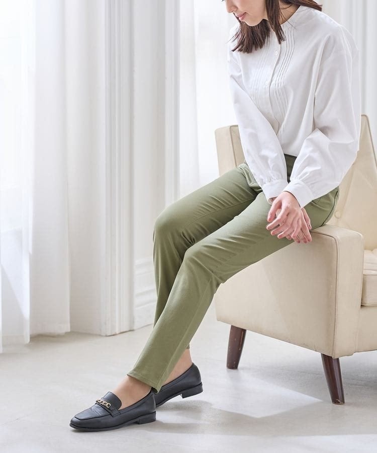 ラクに美脚見せできる、しっかりした生地と綺麗なシルエット。