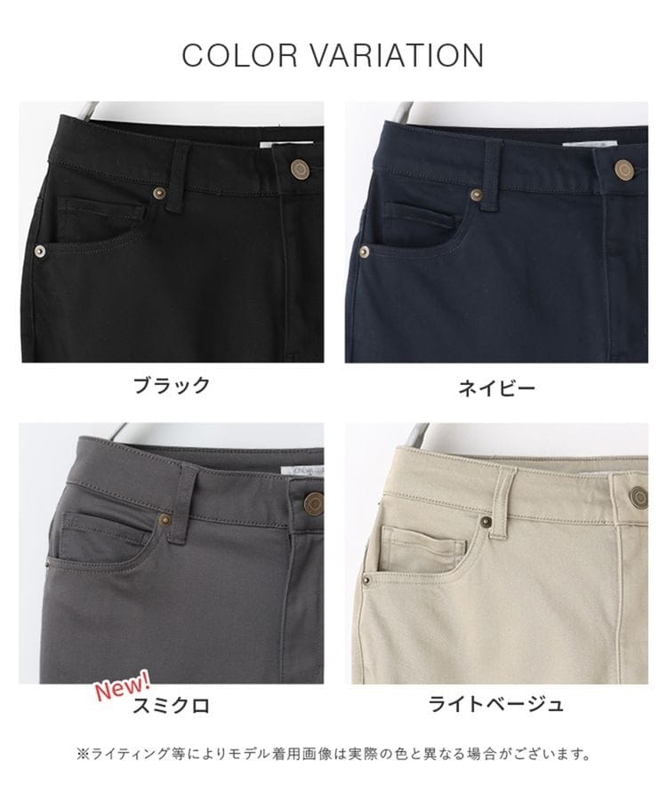 オールシーズン着用可能なスリムカラースキニー、股下64cmタイプ。