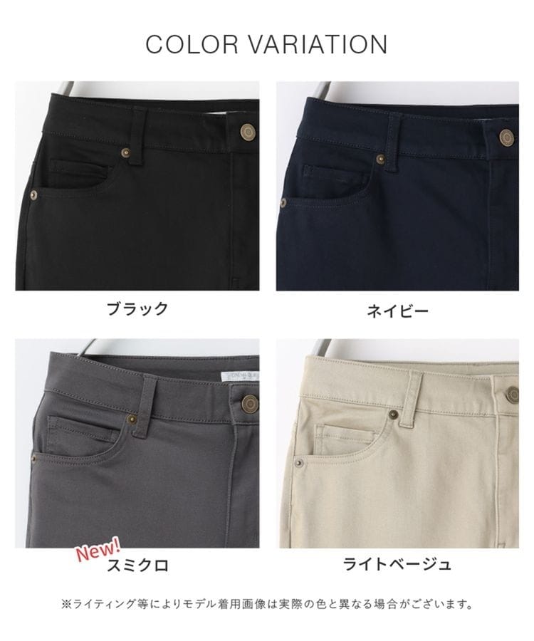 オールシーズン着用可能なスリムカラースキニー、股下67cmタイプ。
