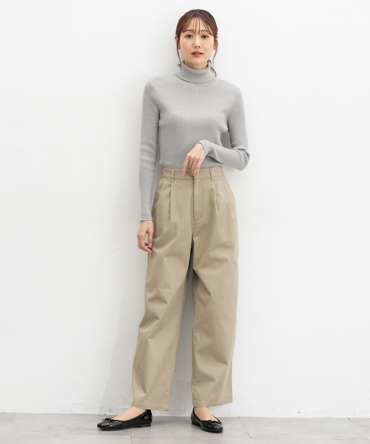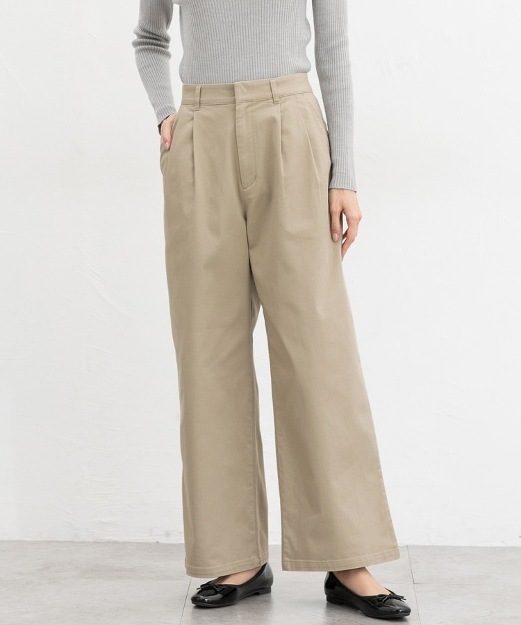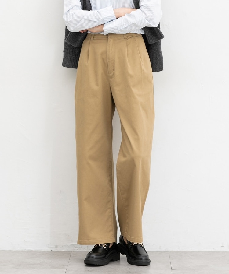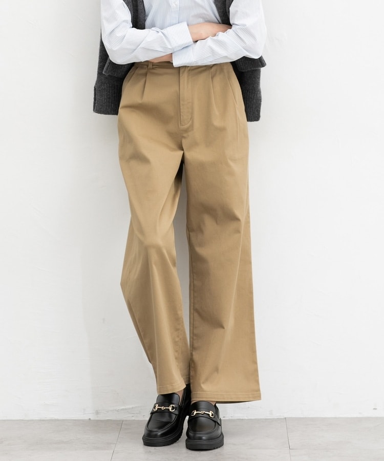 広がりすぎないワイドシルエットのチノストレート、股下68cmタイプ。