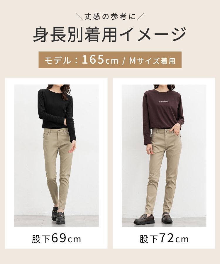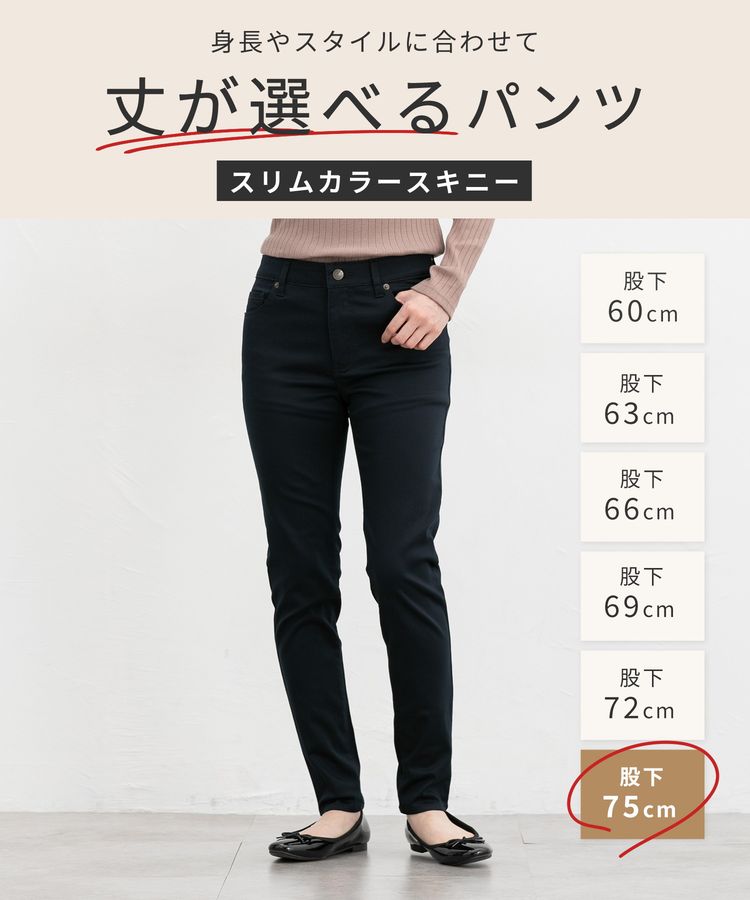 オールシーズン着用可能な定番カラースキニー、股下75cmタイプ。