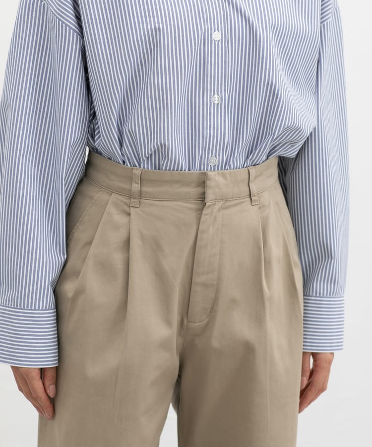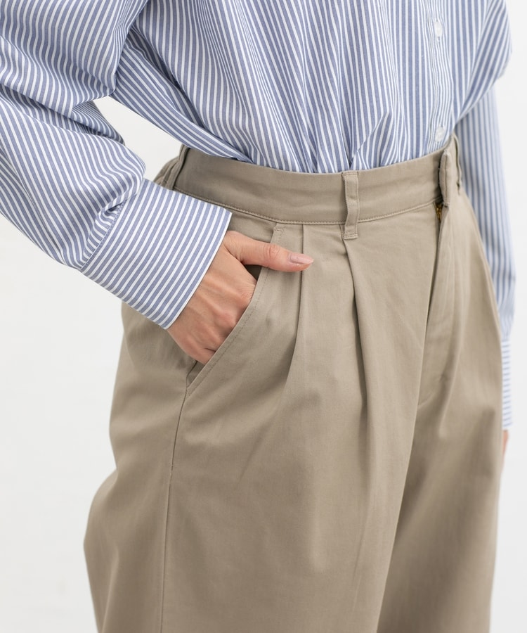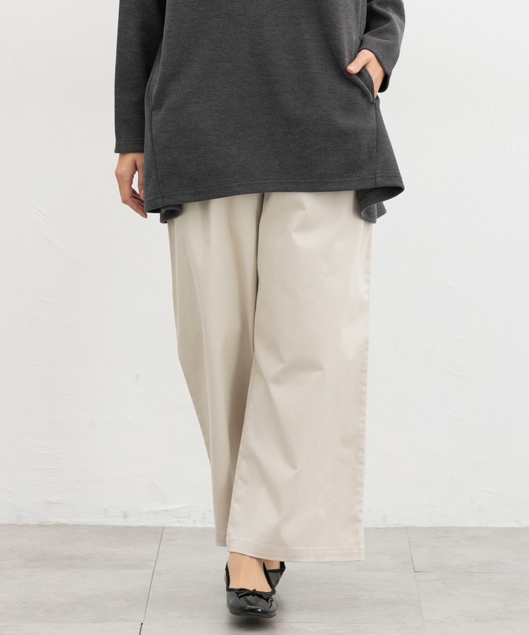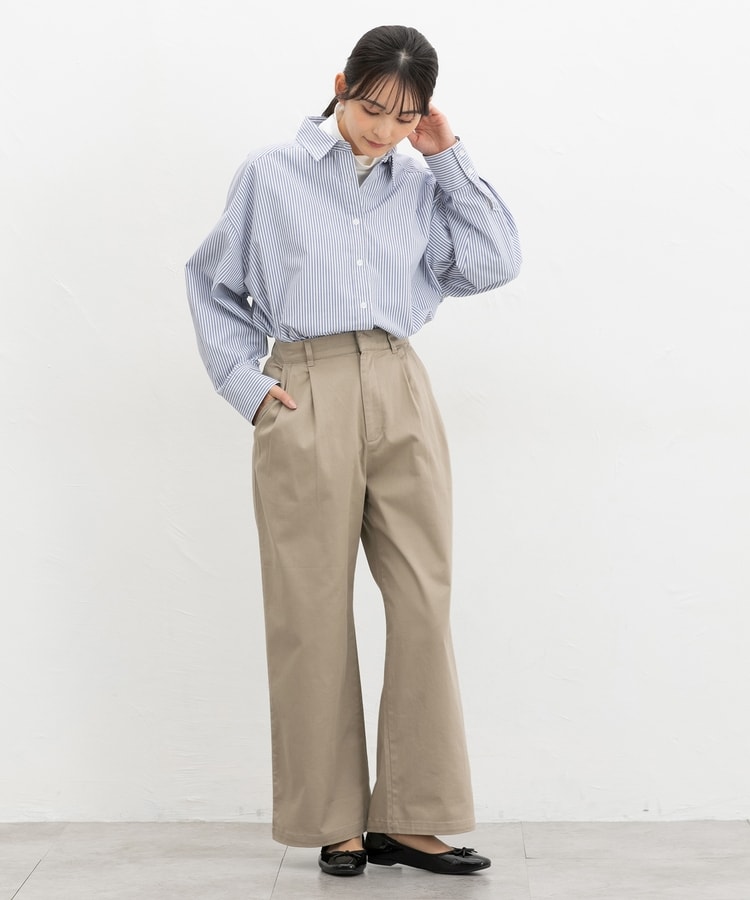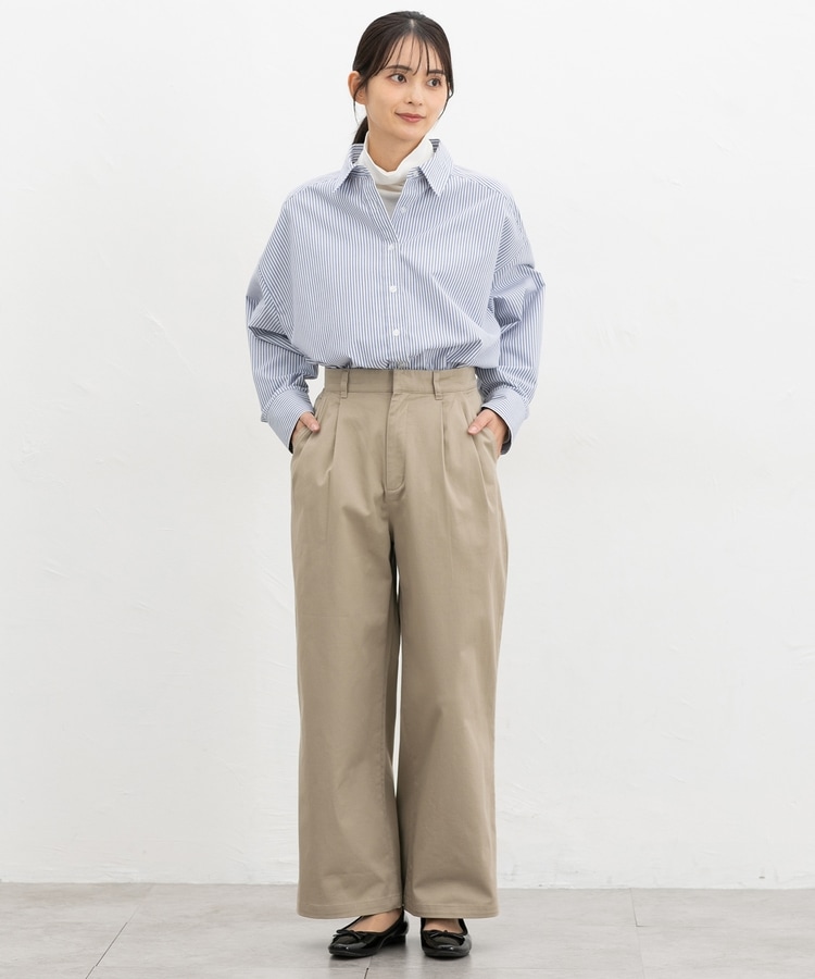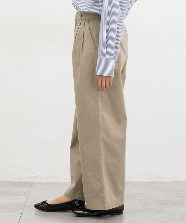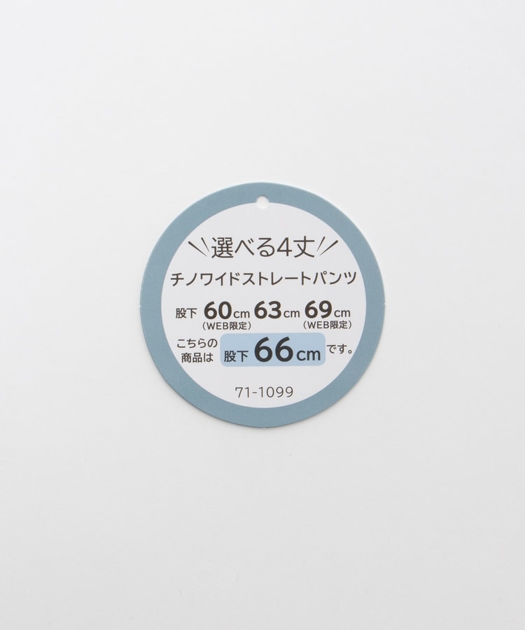 広がりすぎないワイドシルエットのチノストレート、股下66cmタイプ。