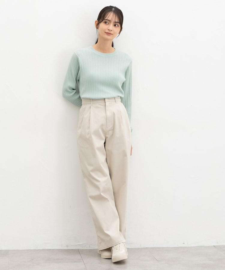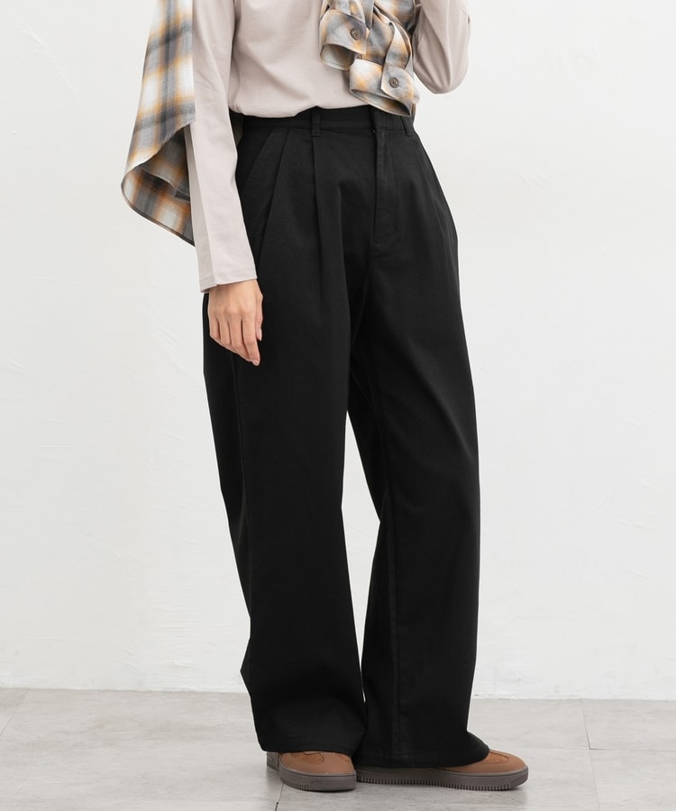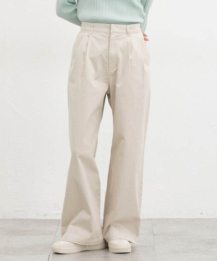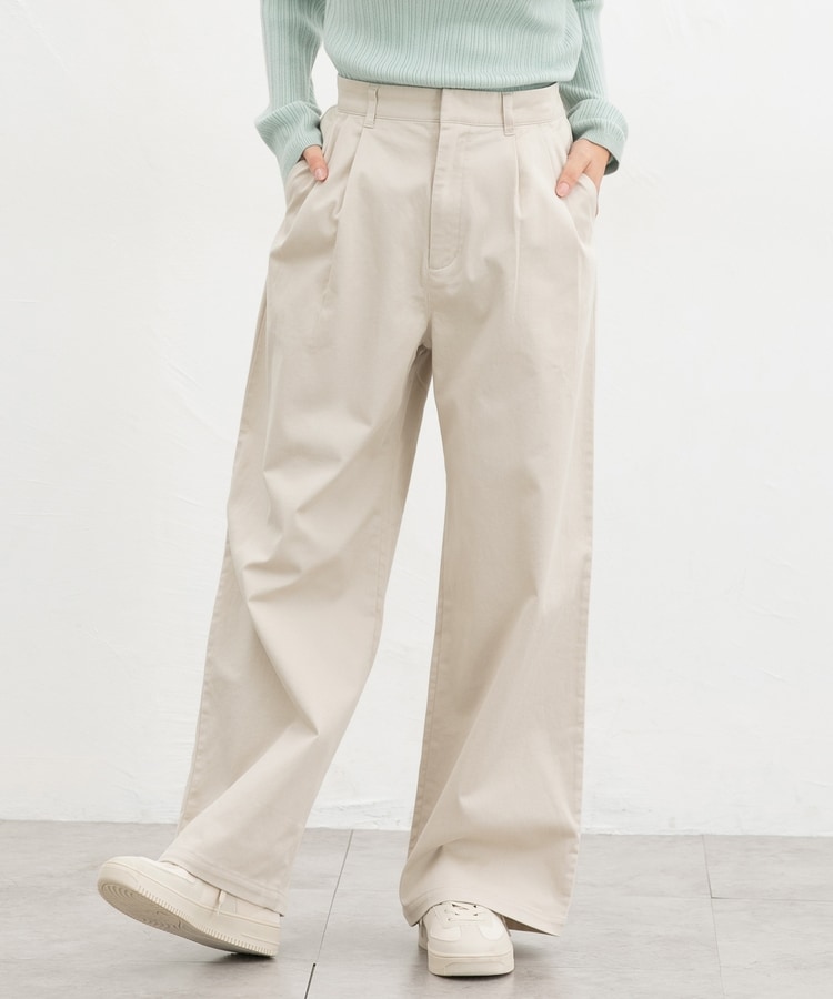 広がりすぎないワイドシルエットのチノストレート、股下69cmタイプ。