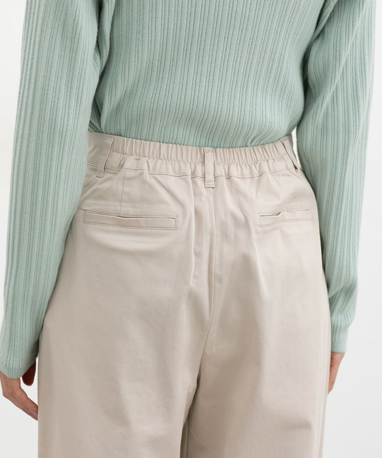 ストレッチ生地と後ろウエストゴムで、はき心地抜群。