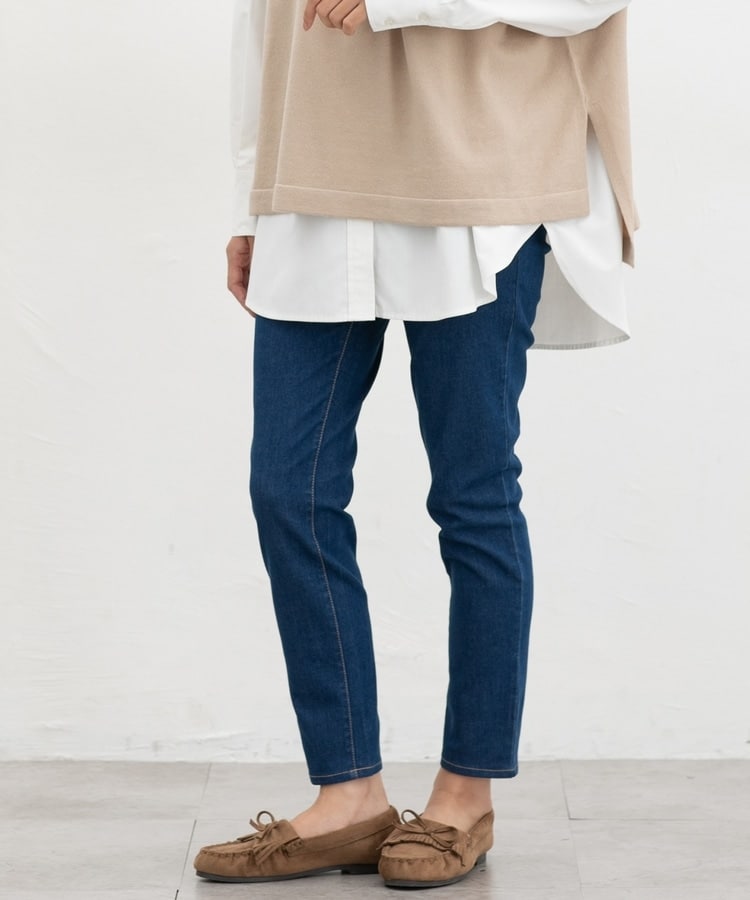 スキニーよりもややピッタリとしたシルエットながら、ストレッチが利いた生地で、楽に美脚に見せてはき心地も快適。
