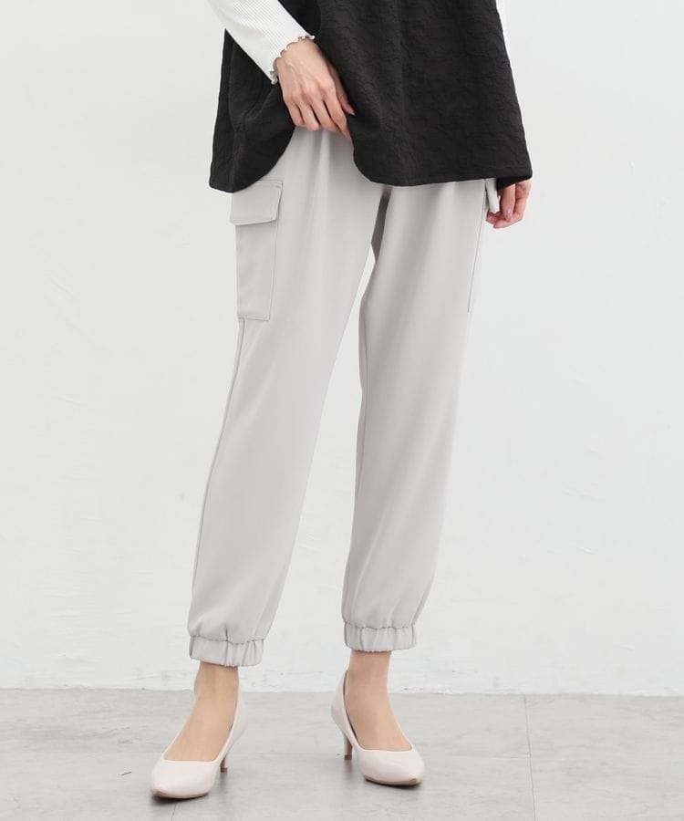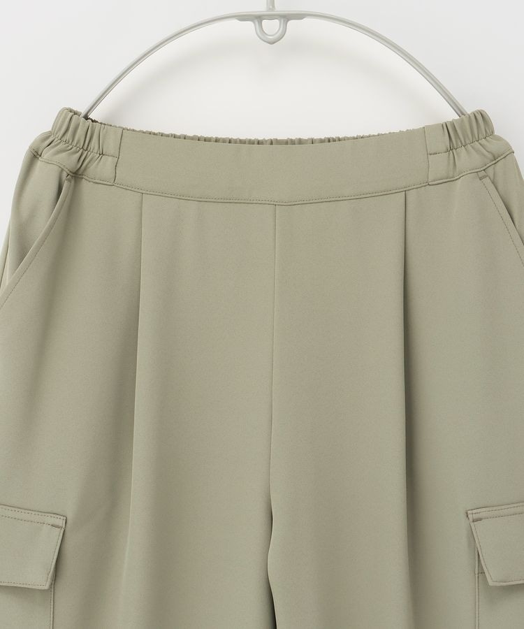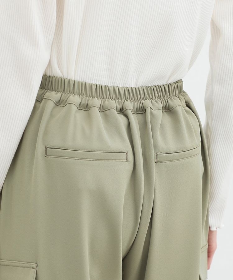 メンズライクなカーゴパンツに、きれいめの生地でほんのりフェミニンな印象をプラス。
