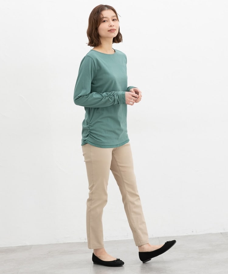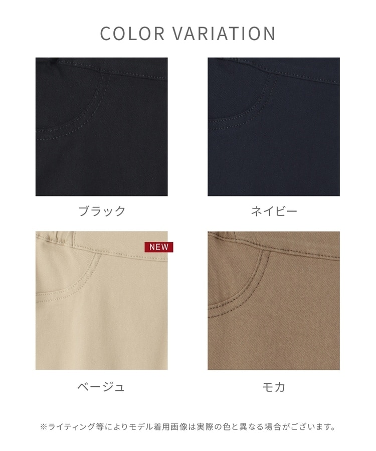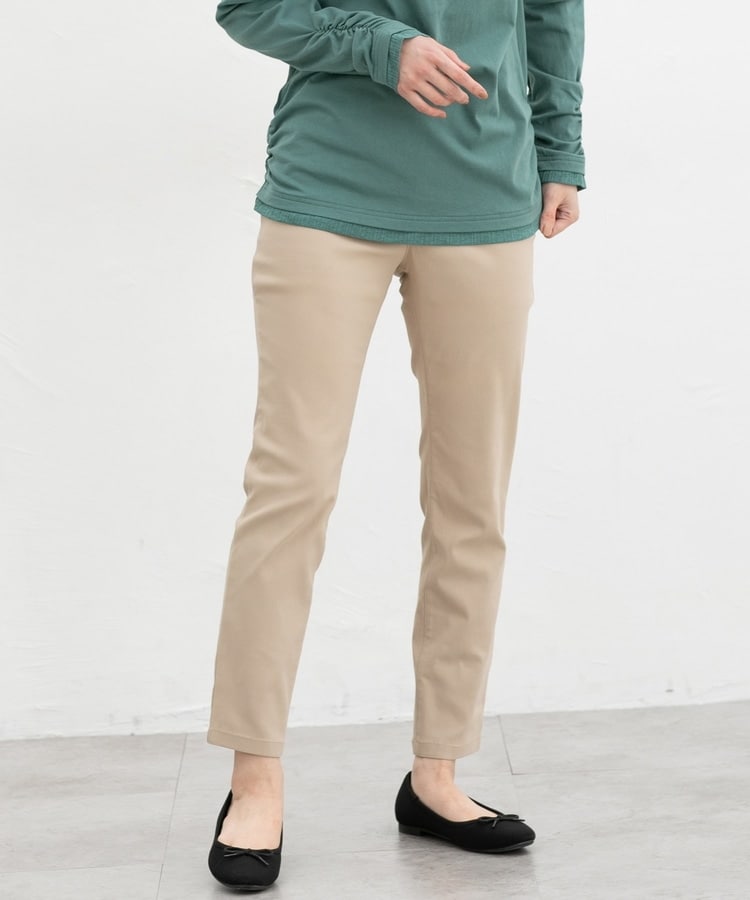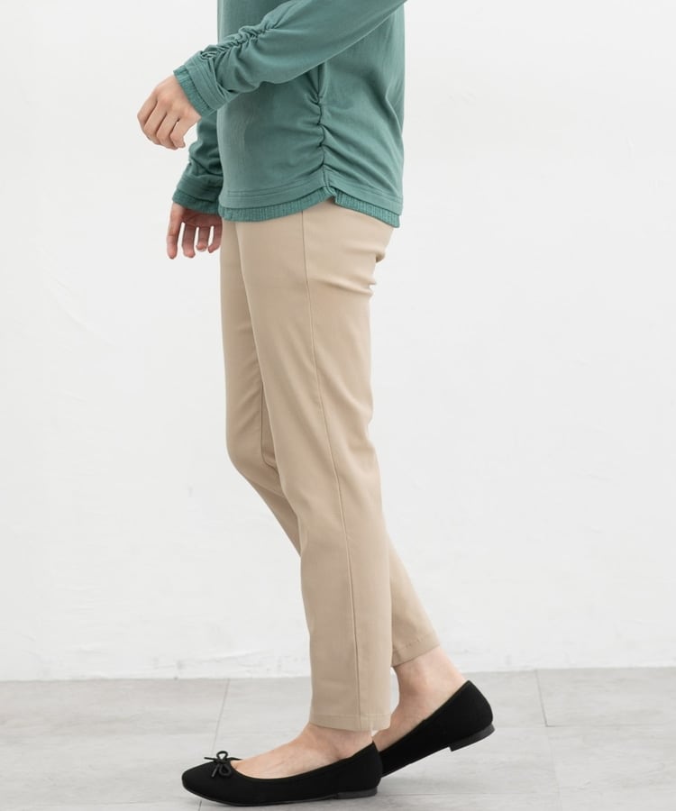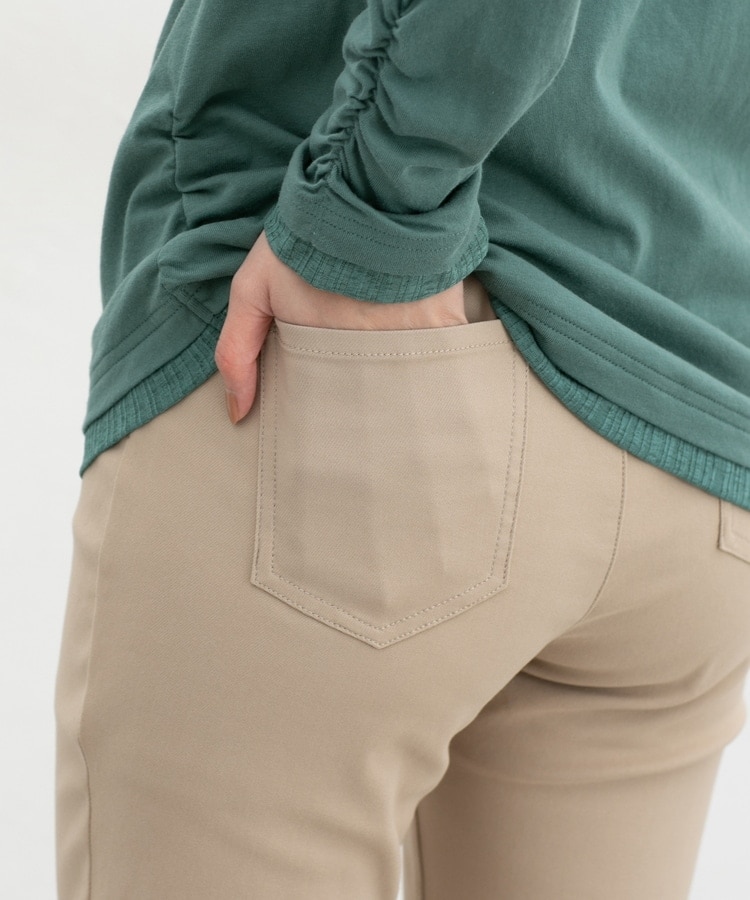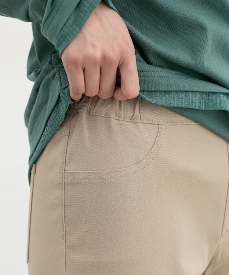 優れたストレッチ性のレーヨン混ツイル素材とウエストゴムで、一度はいたらやみつきになるはき心地。