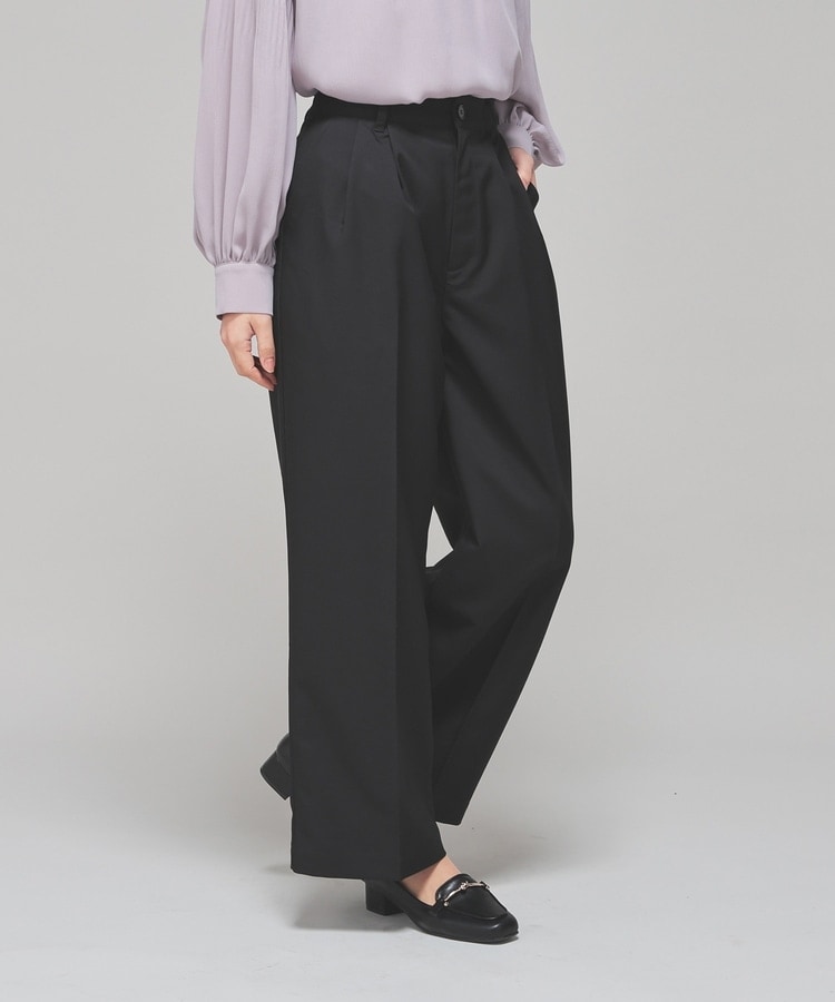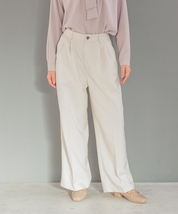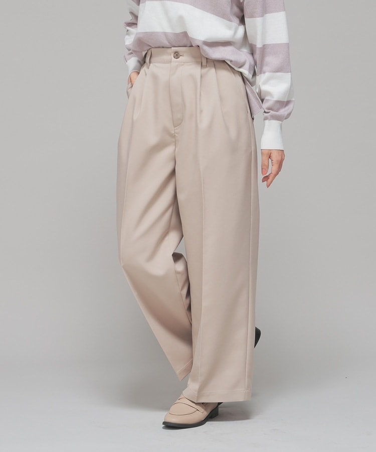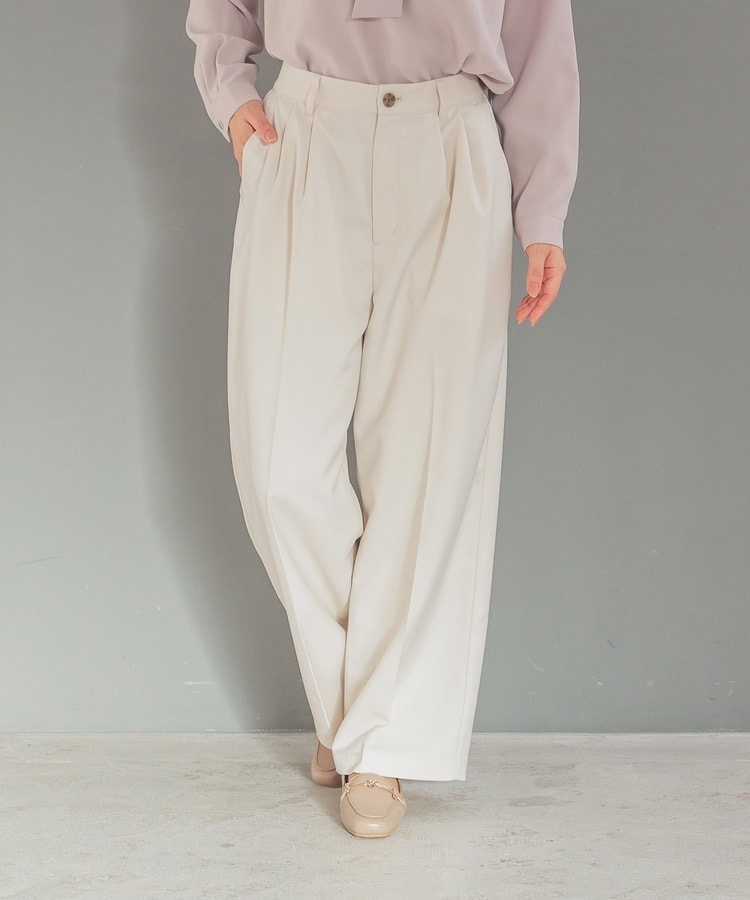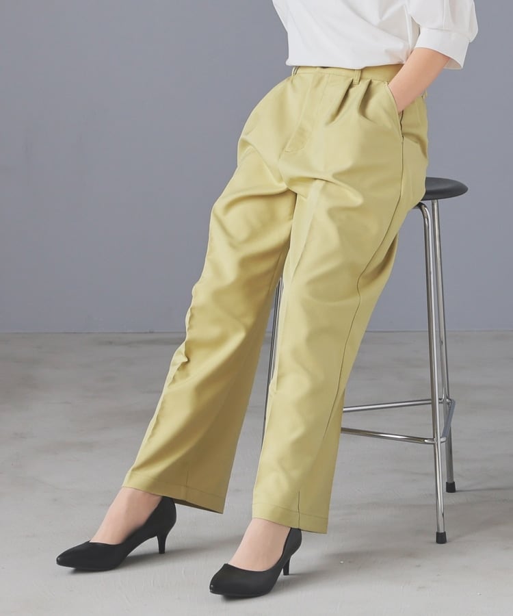 ストンと落ちる太すぎないシルエットとセンタープレスで脚をすらっと綺麗に見せる、こなれ度抜群のデザイン。