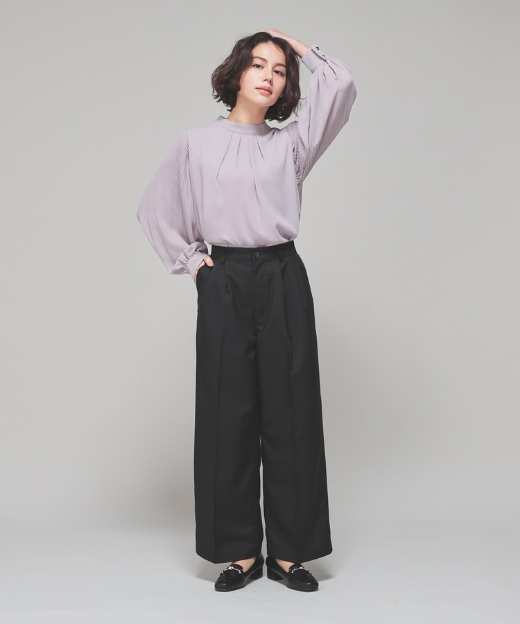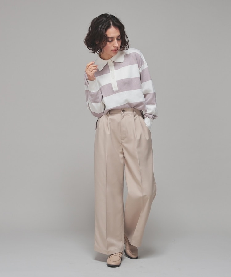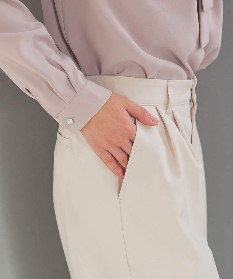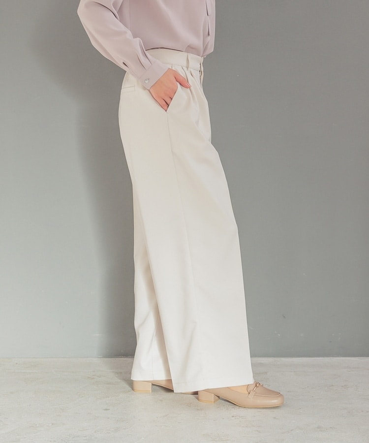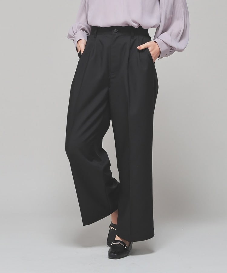 ストンと落ちる太すぎないシルエットとセンタープレスで脚をすらっと綺麗に見せる、こなれ度抜群のデザイン。