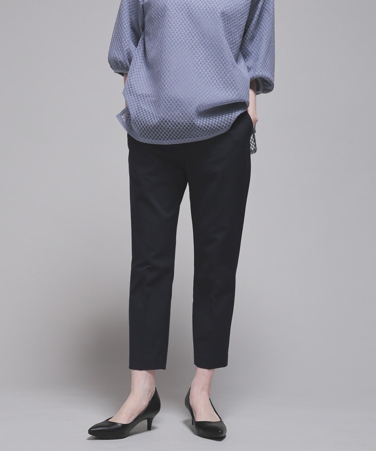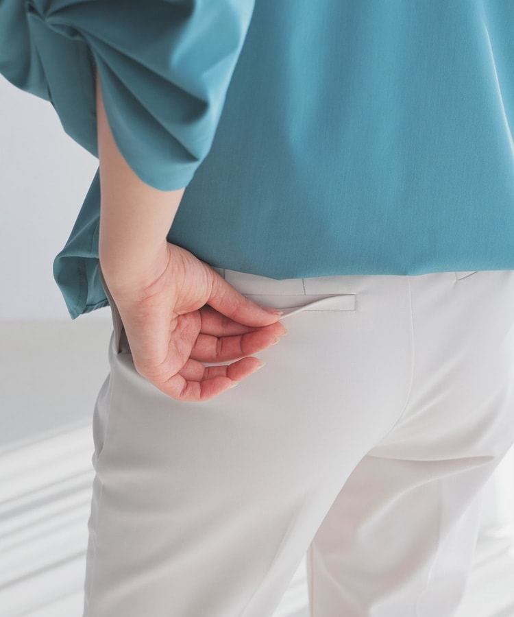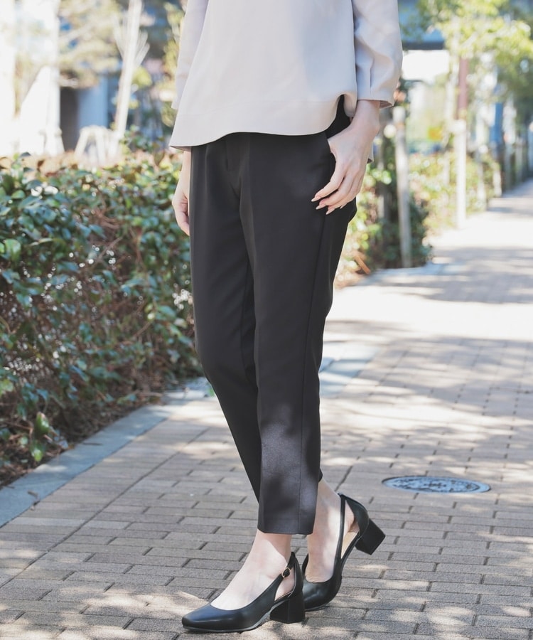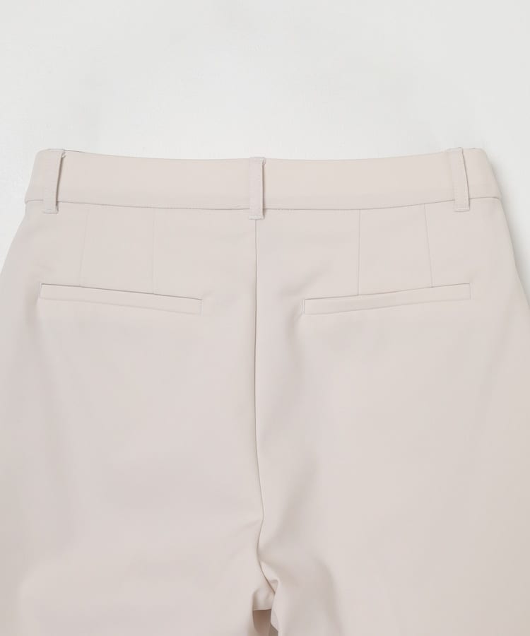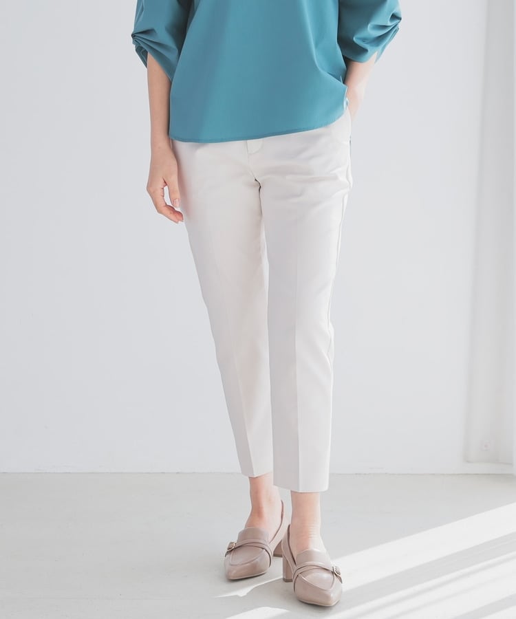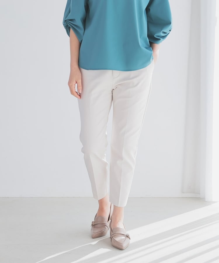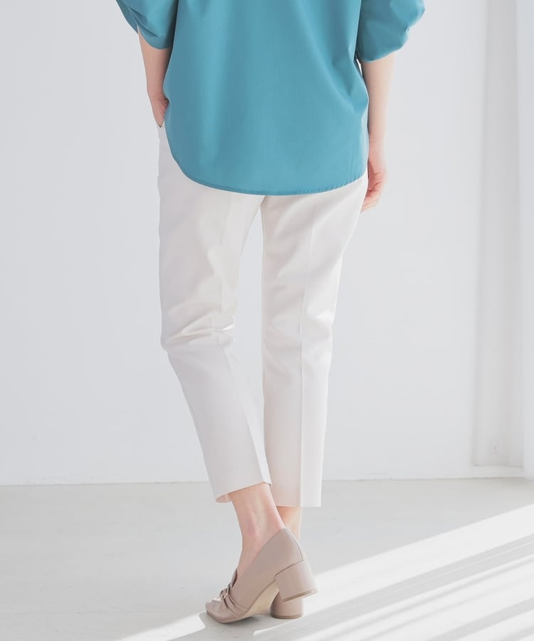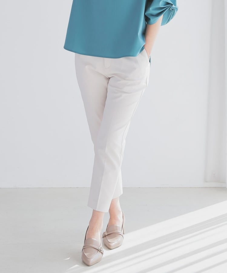 センタープレス入りのきれいなシルエットで、きちんと感もスタイルアップも叶えるデザイン。