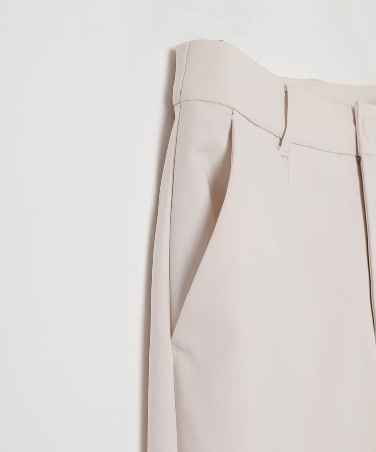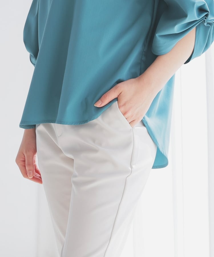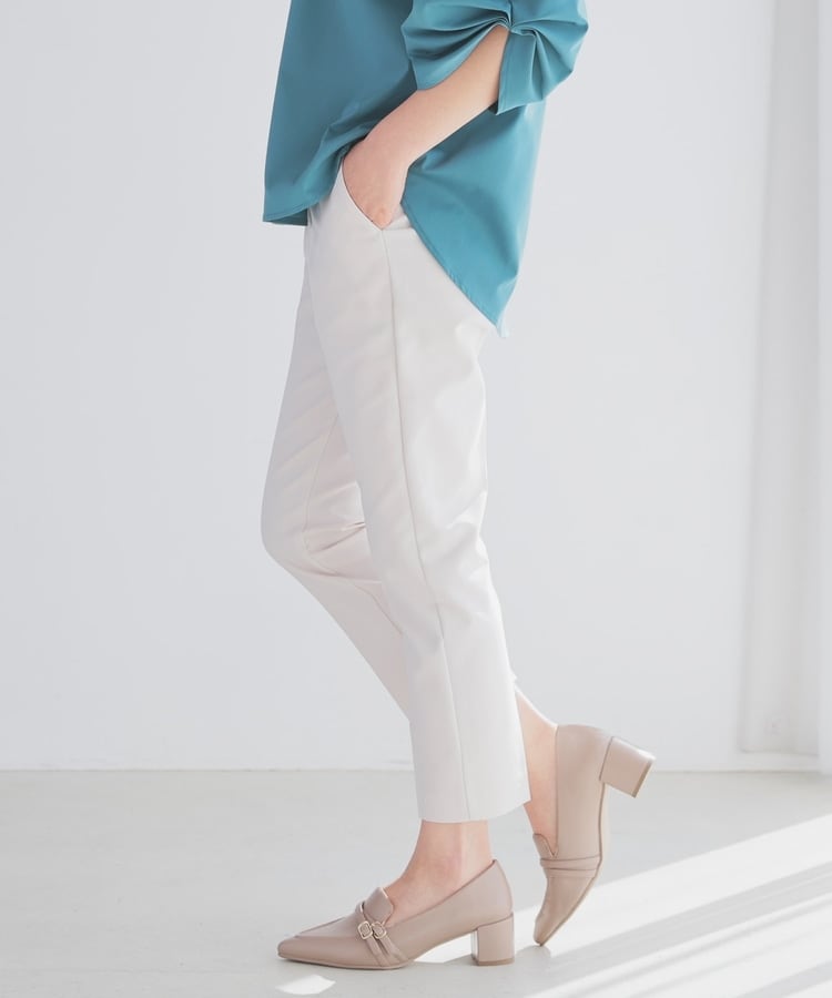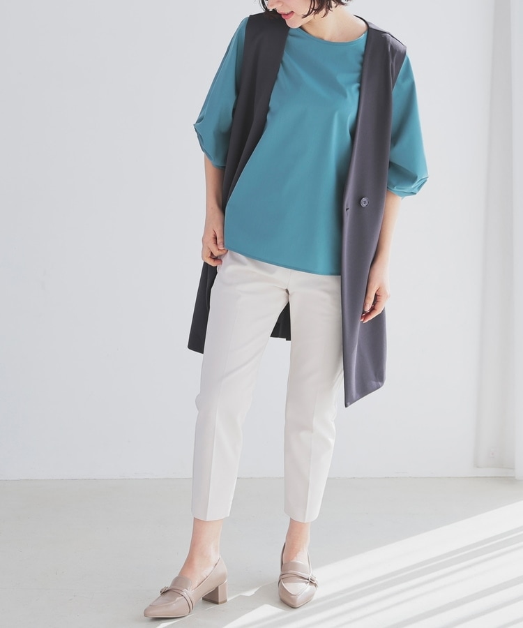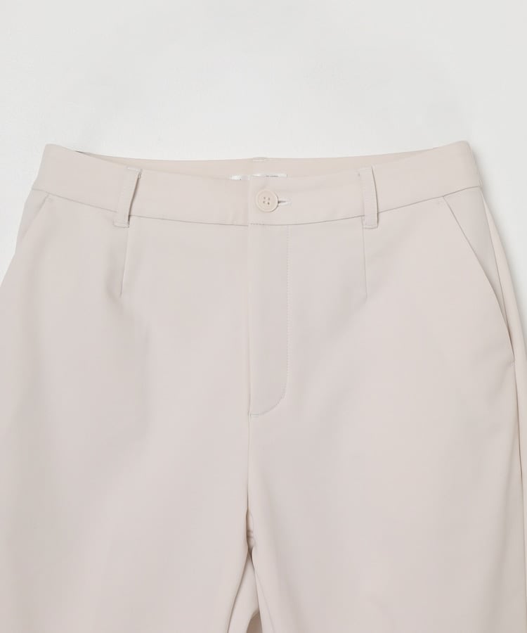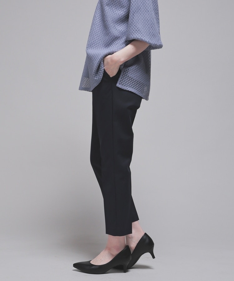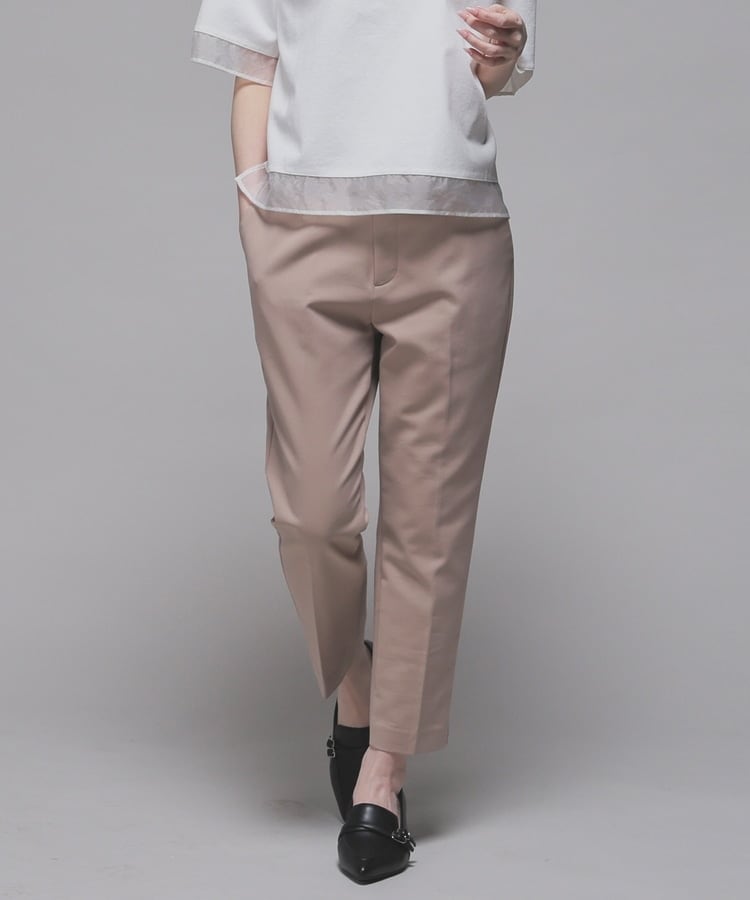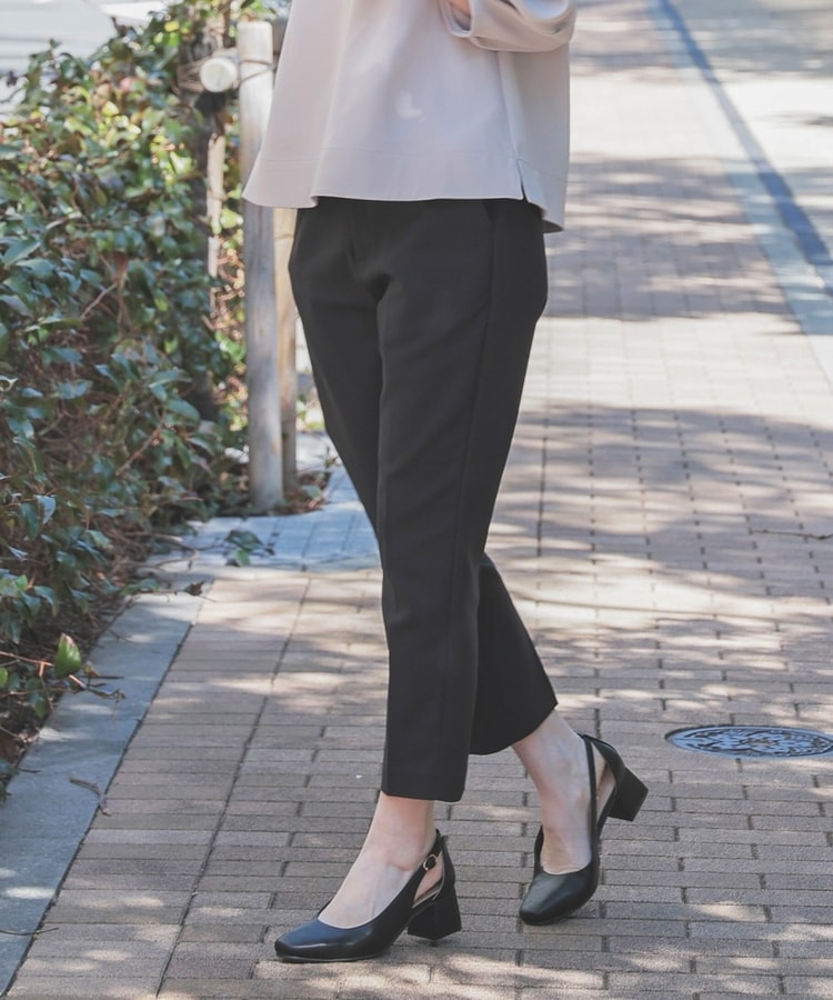 センタープレス入りのきれいなシルエットで、きちんと感もスタイルアップも叶えるデザイン。
