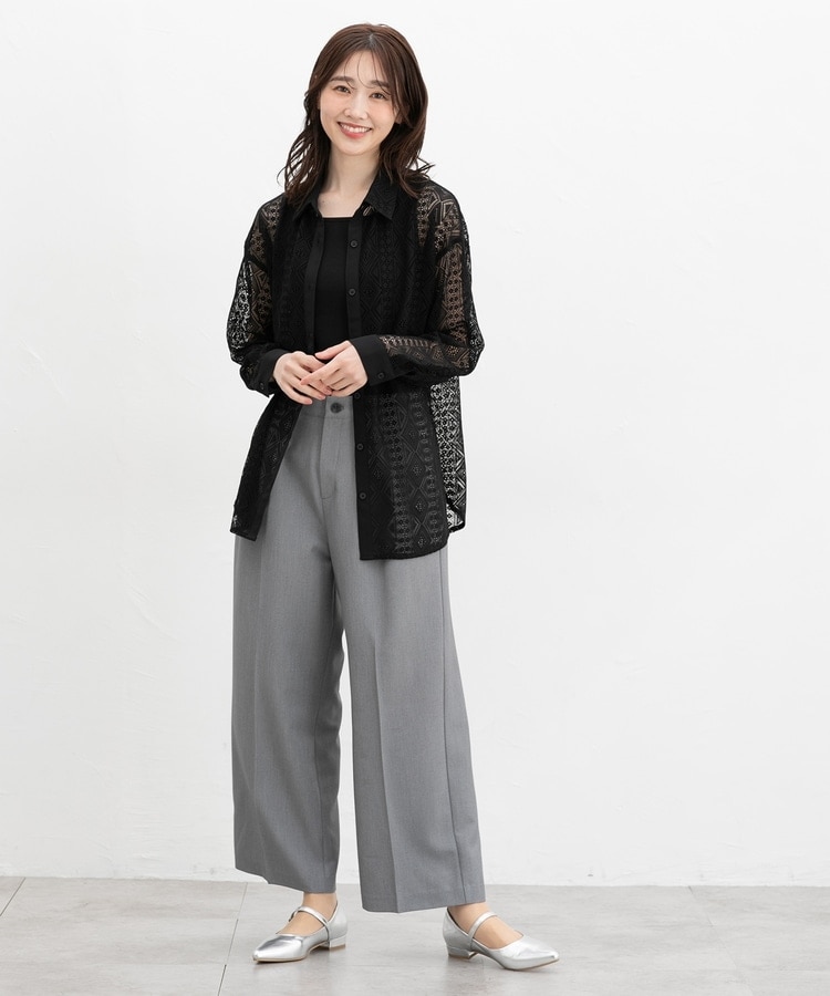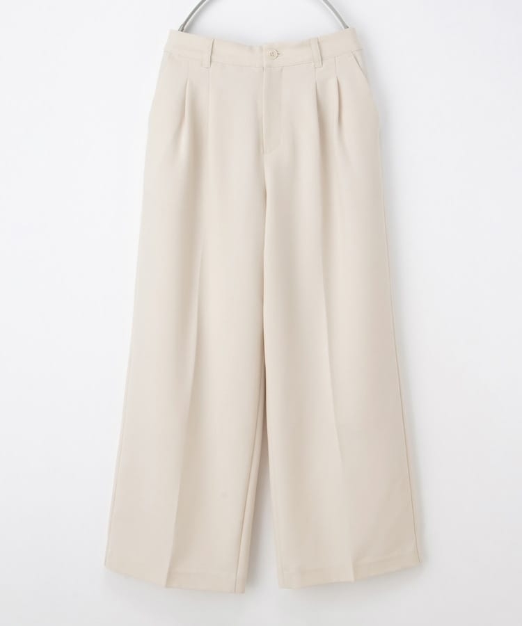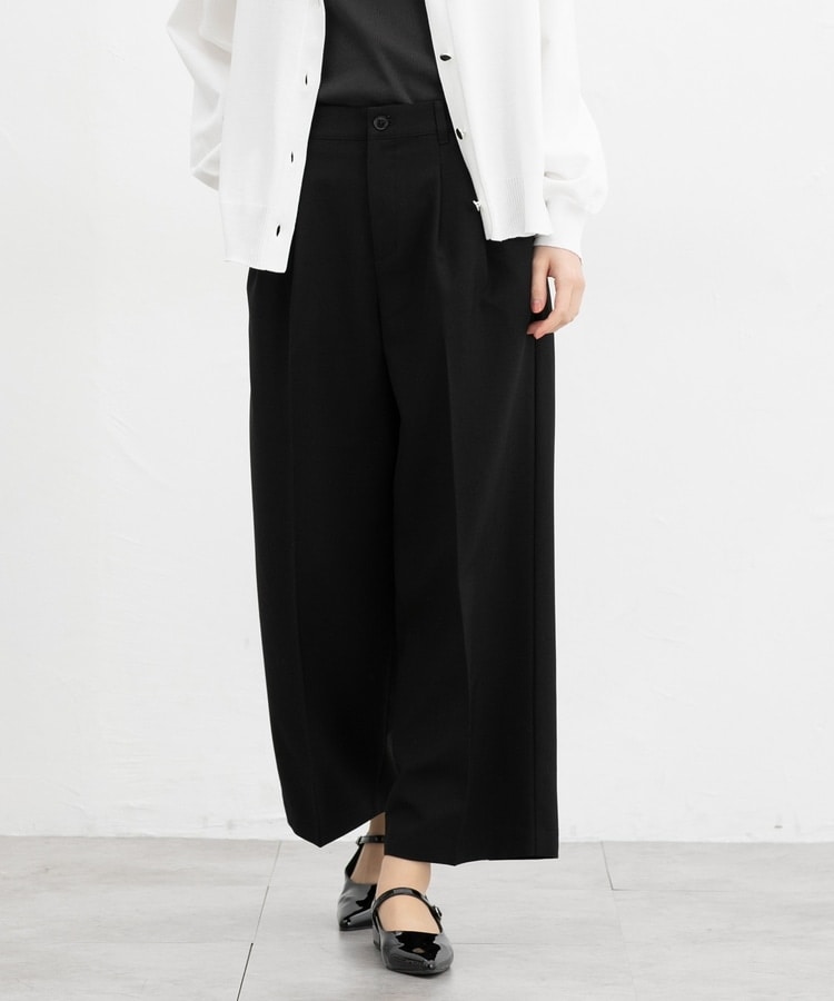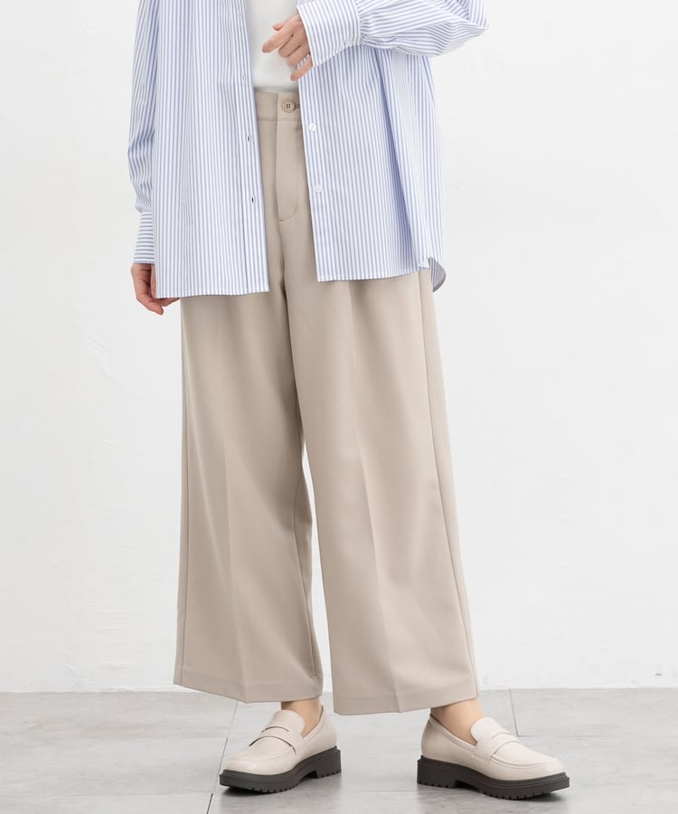 ストンと落ちる太すぎないワイドシルエットときちんと感のあるセンタープレスで、こなれた感も美脚効果も抜群のデザイン。