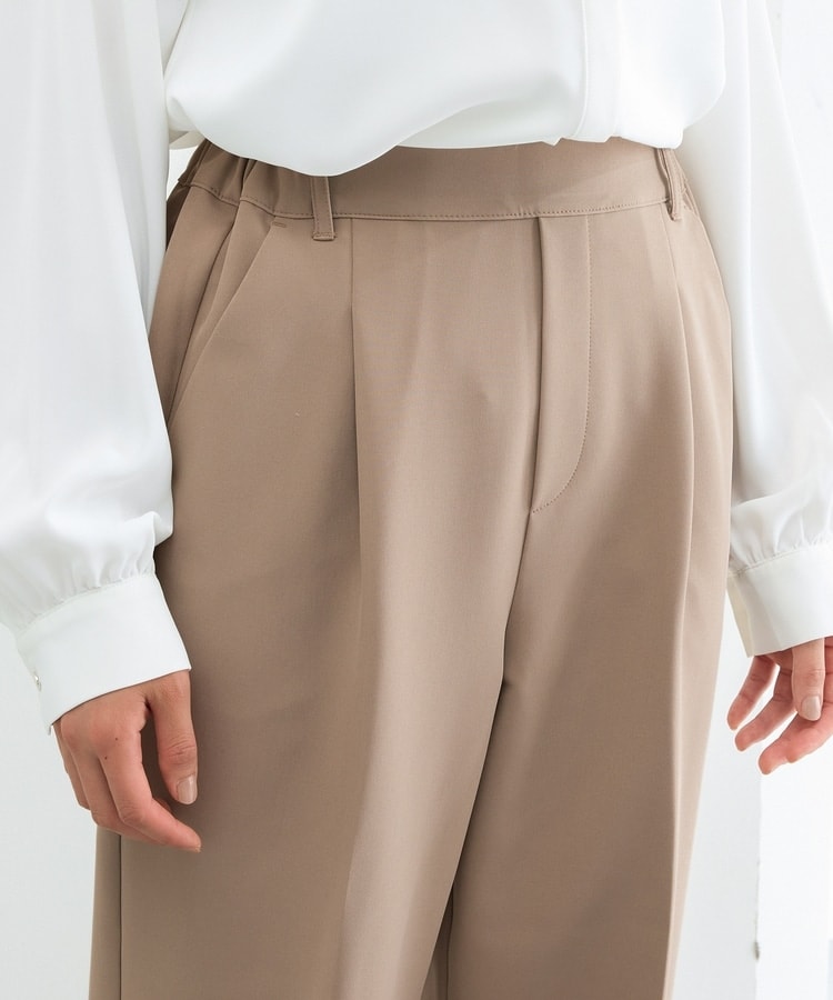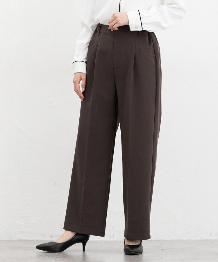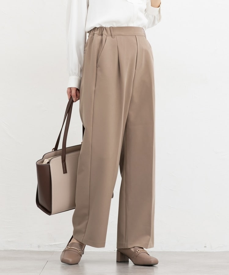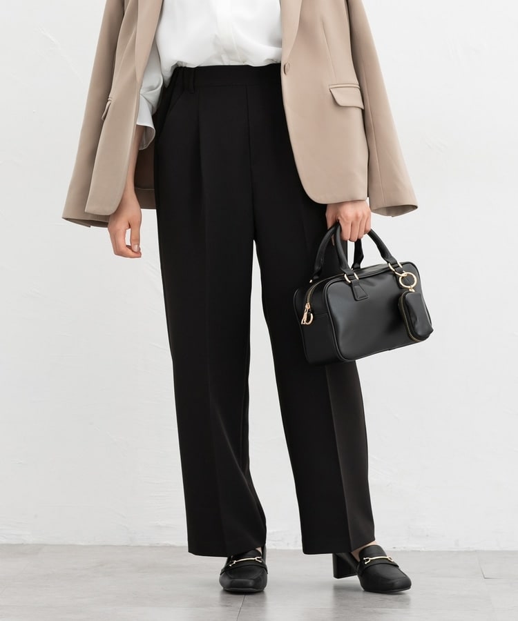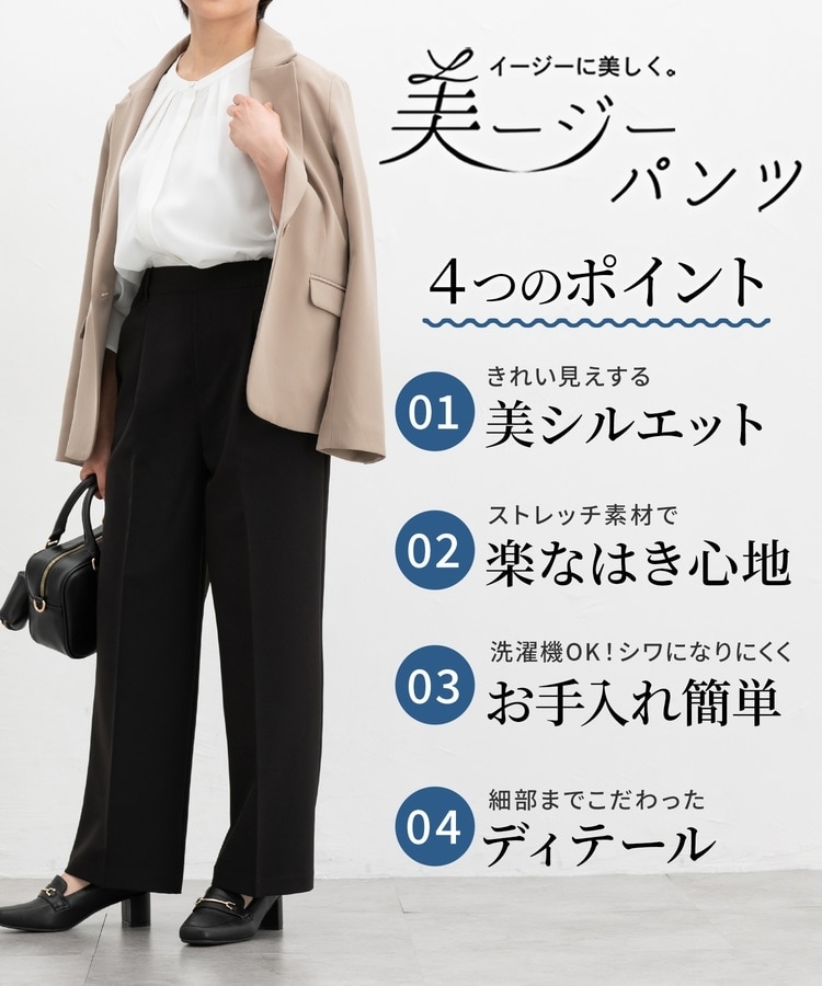 きちんと感のあるセンタープレスと腰回りのラインにこだわった美しいストレートシルエットで美脚効果も抜群。